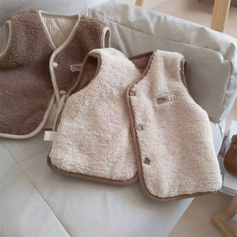 Compra Chaleco Cálido Grueso sin Mangas para Otoño e Invierno para Niños y Niñas Estilo Coreano Retro Versátil de Lana de Cordero Reversible al por mayor en Joom.pro