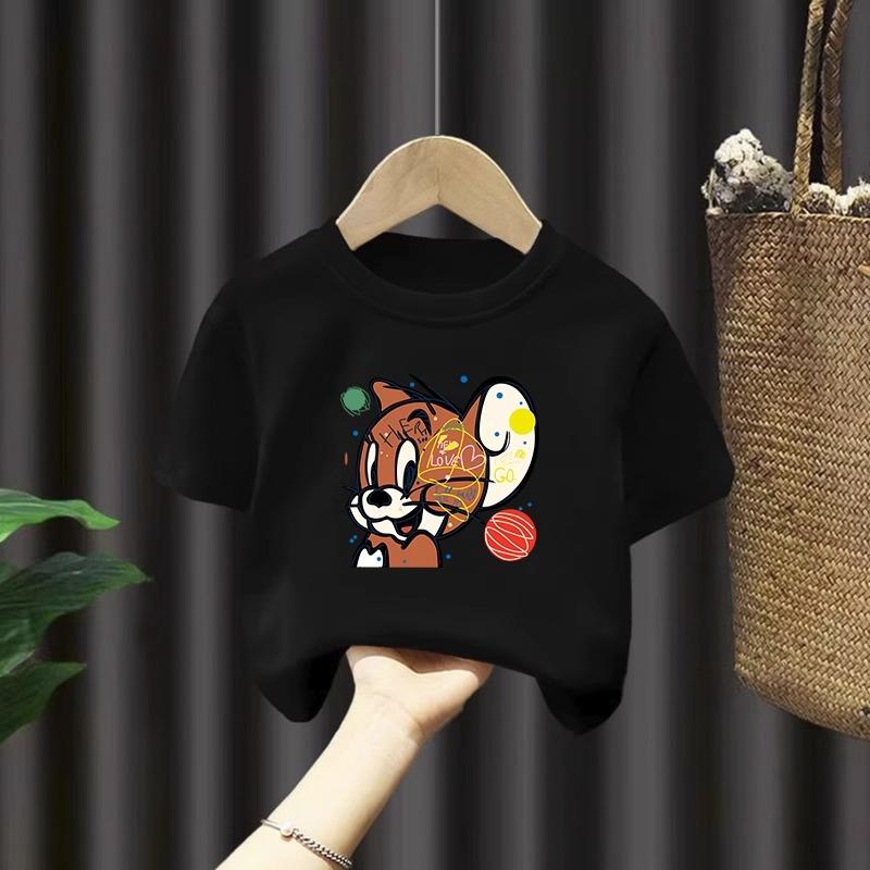 Camisetas de Verano de Algodón Puro de Manga Corta para Niños 2025 Nuevo Estilo Estilo Coreano Ropa Holgada Tops de Media Manga para Niños y Niñas