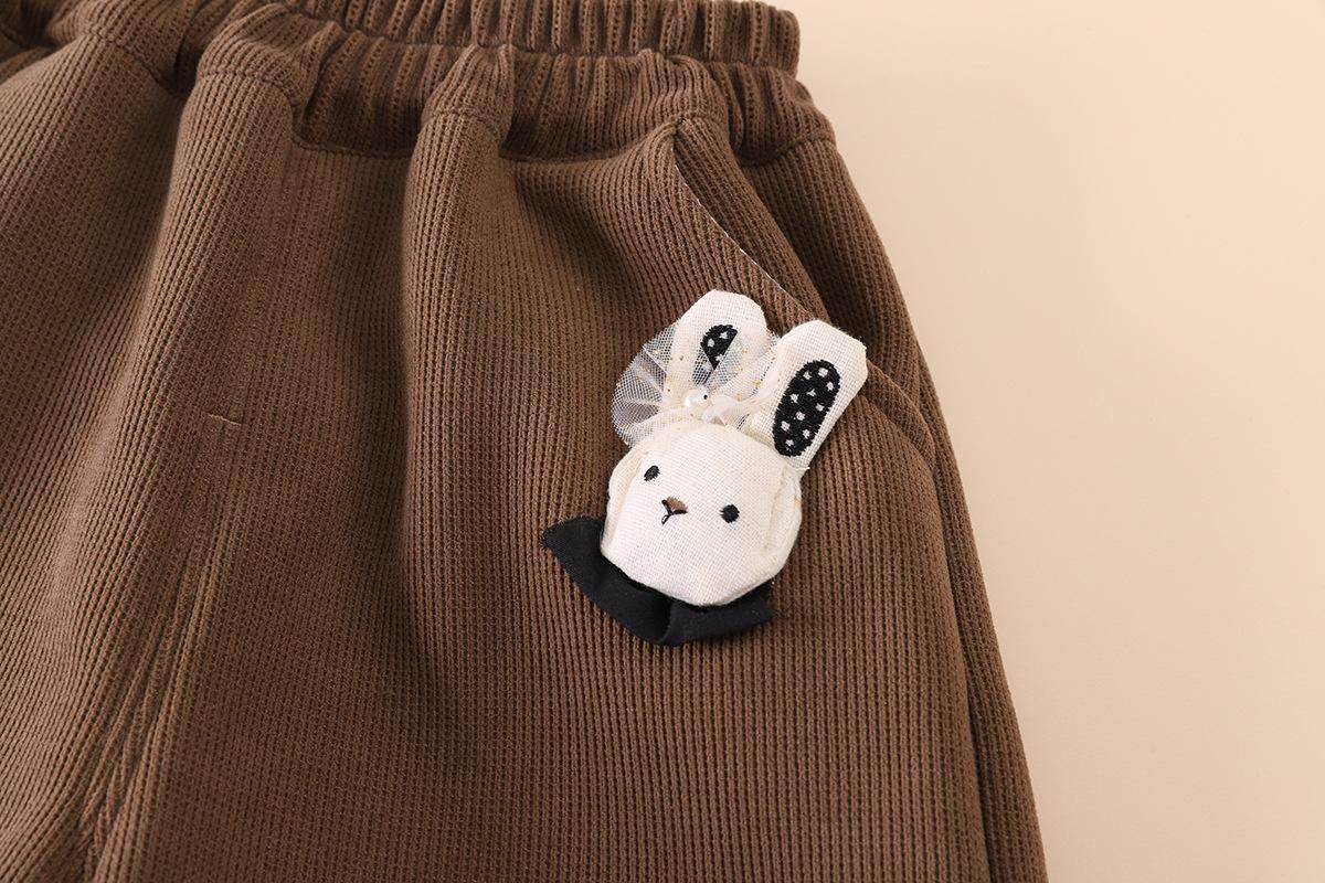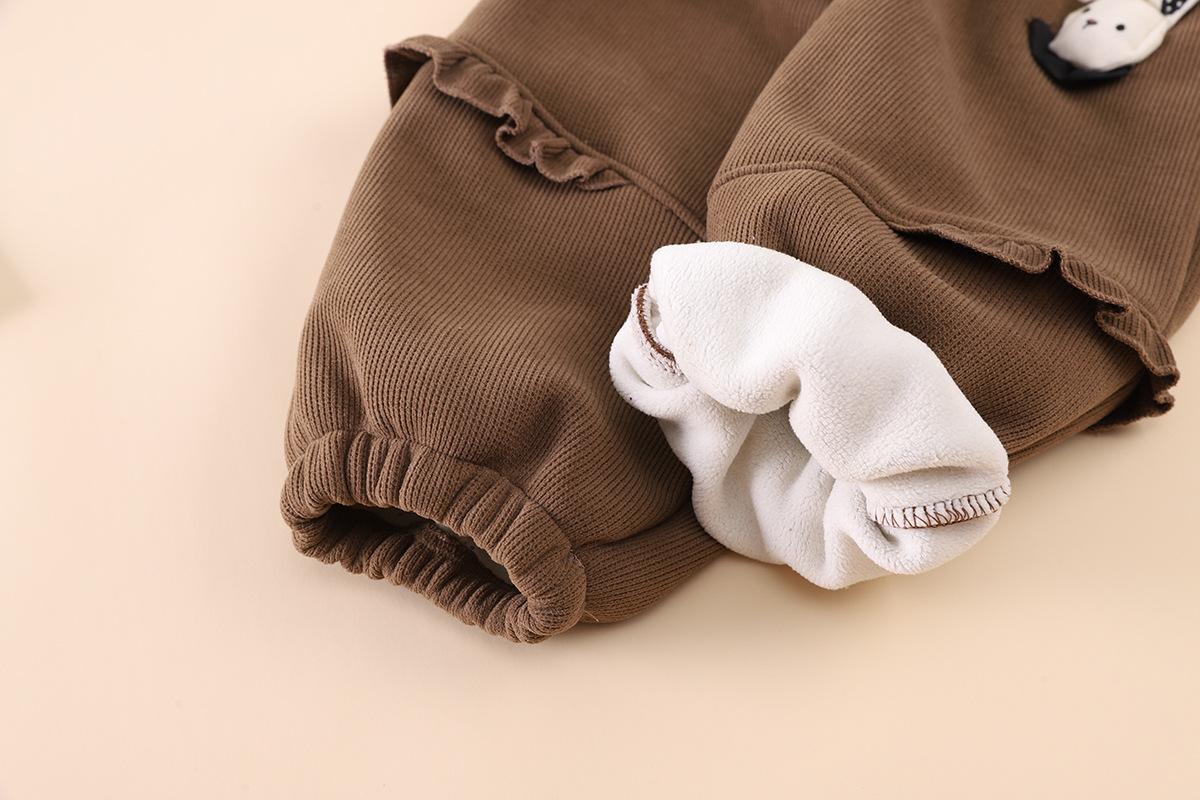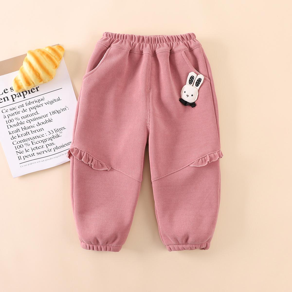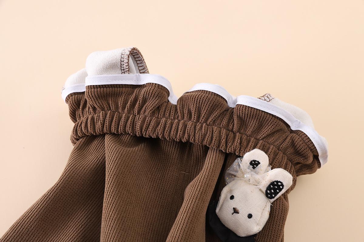 2025 otoño tardío niños pantalones largos de polar fino niñas bebé encaje colgante conejo lindo invierno compuesto de una pieza pantalones de polar palabra