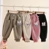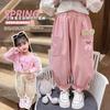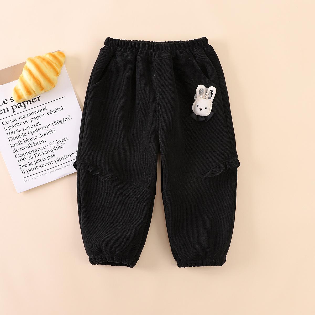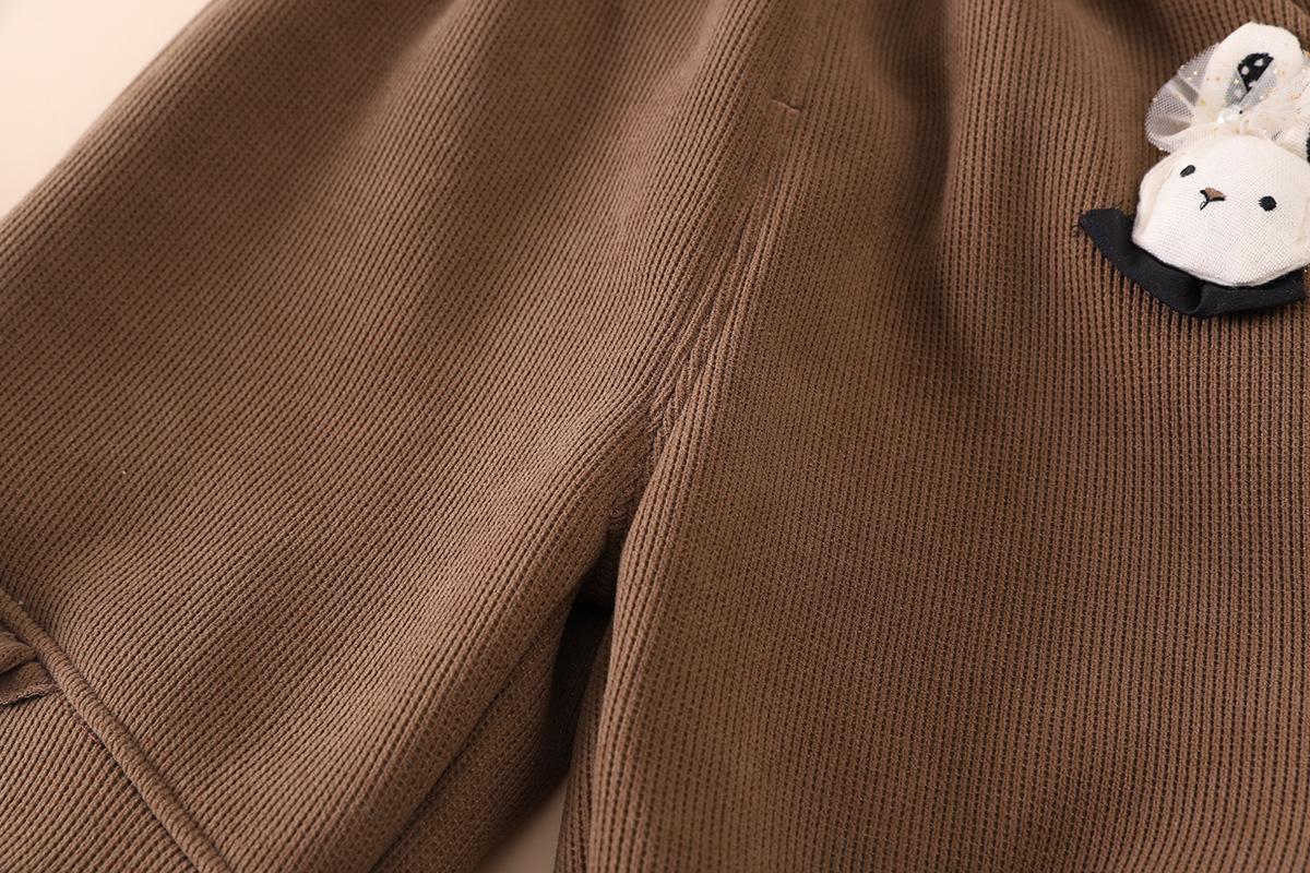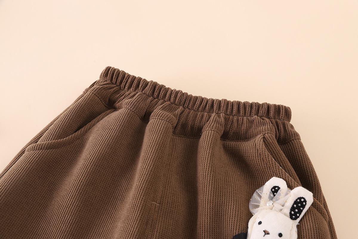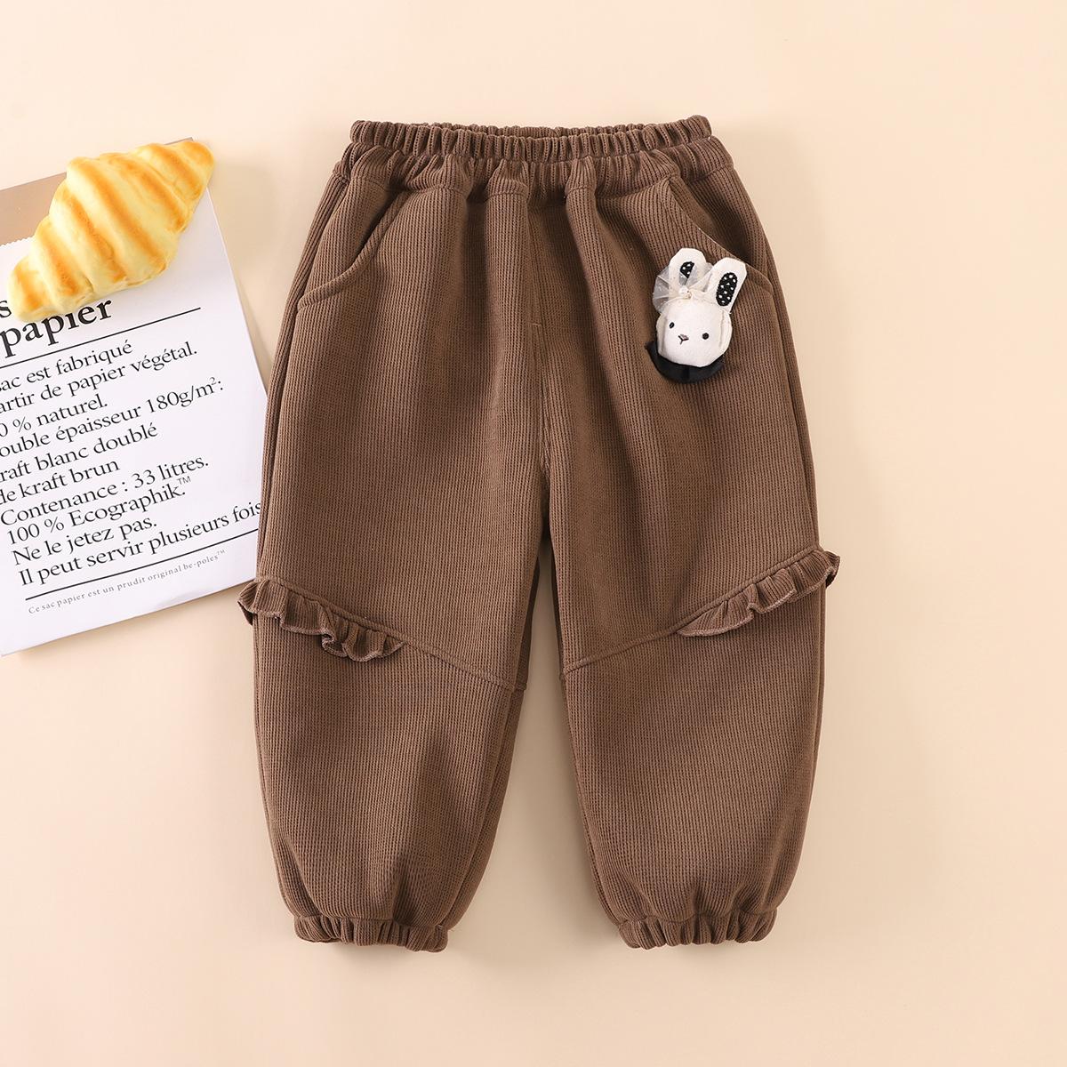 2025 otoño tardío niños pantalones largos de polar fino niñas bebé encaje colgante conejo lindo invierno compuesto de una pieza pantalones de polar palabra