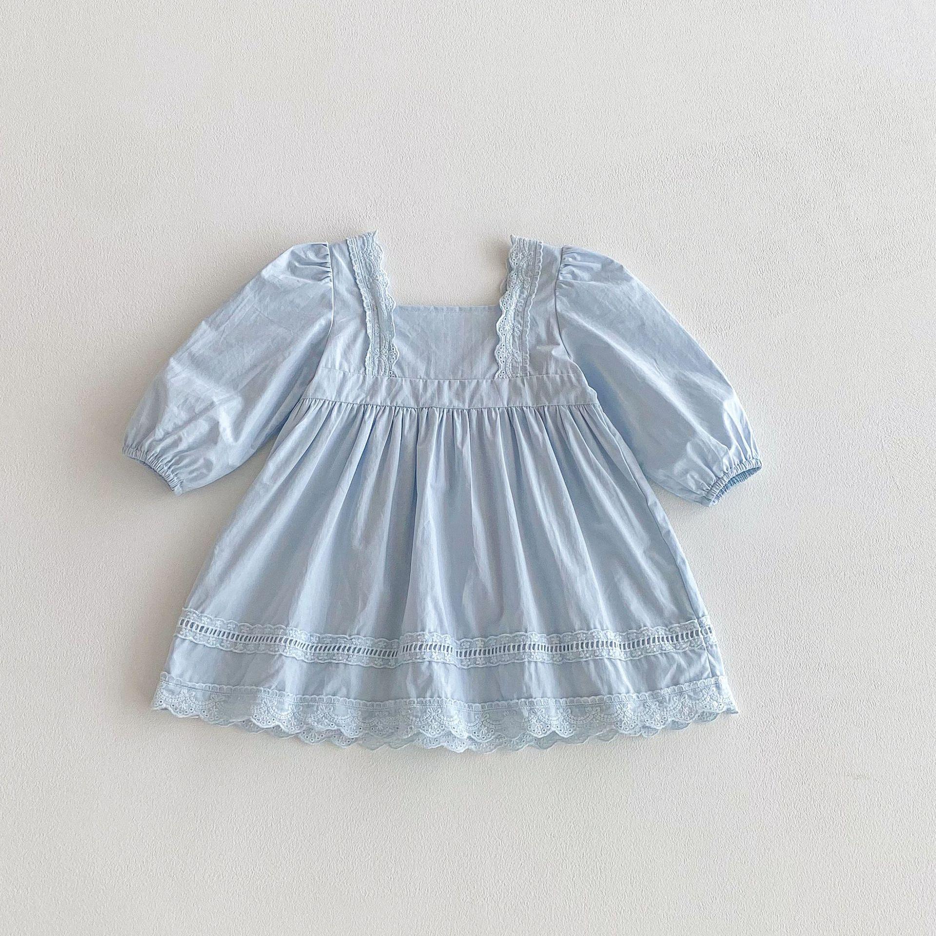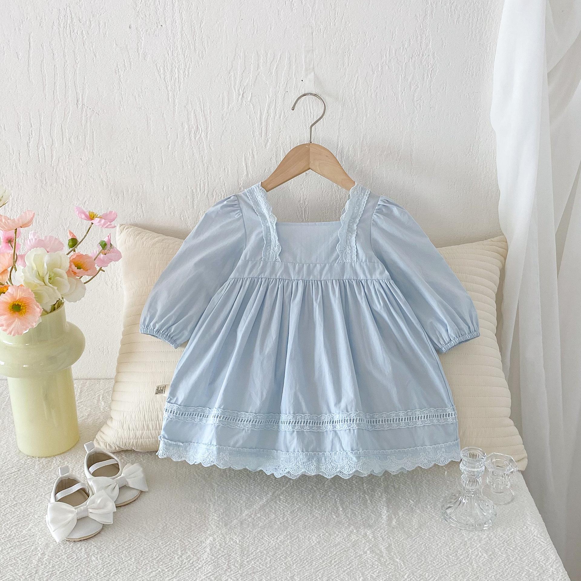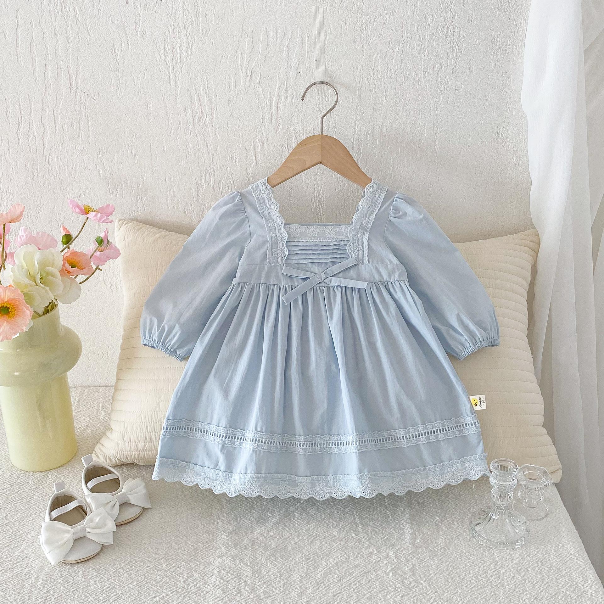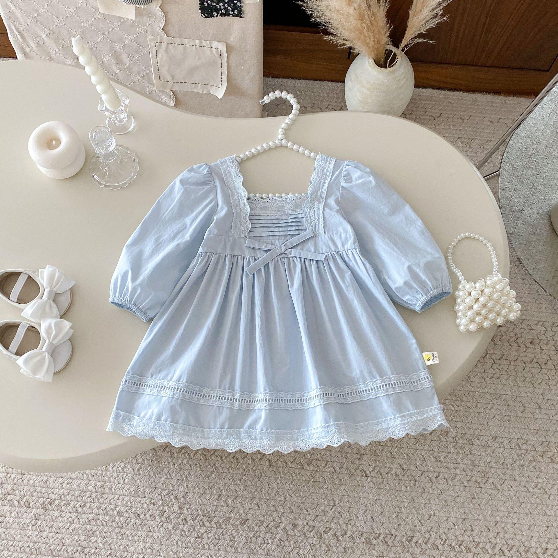 Vestido de Niña Otoño 2025 Estilo Coreano Manga Larga Encaje Vestido de Princesa Bebé Niña Moda Dulce Retro