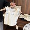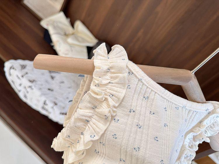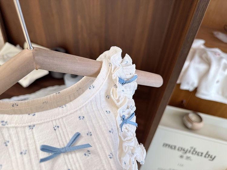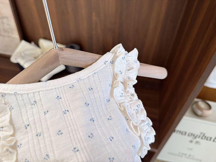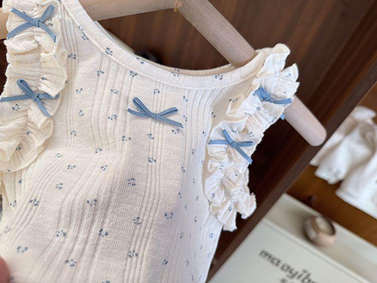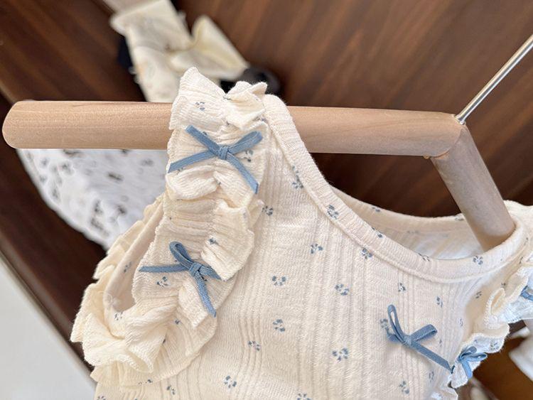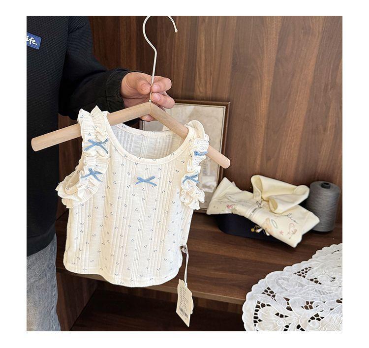 Chaleco de Verano para Niñas Moda Bebé Niños Elegante Moderno Estilo Coreano Dulce Encaje Lazo Floral Top sin Mangas