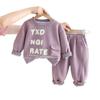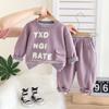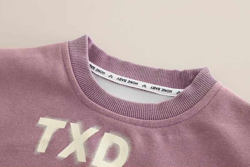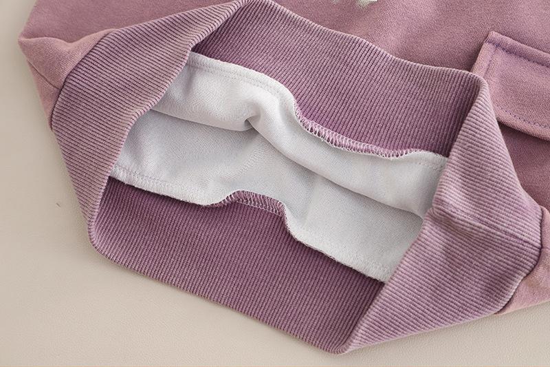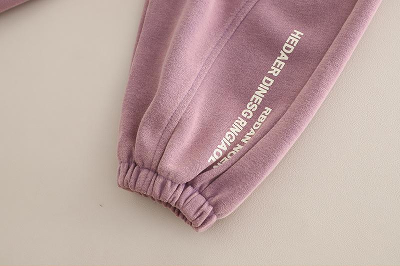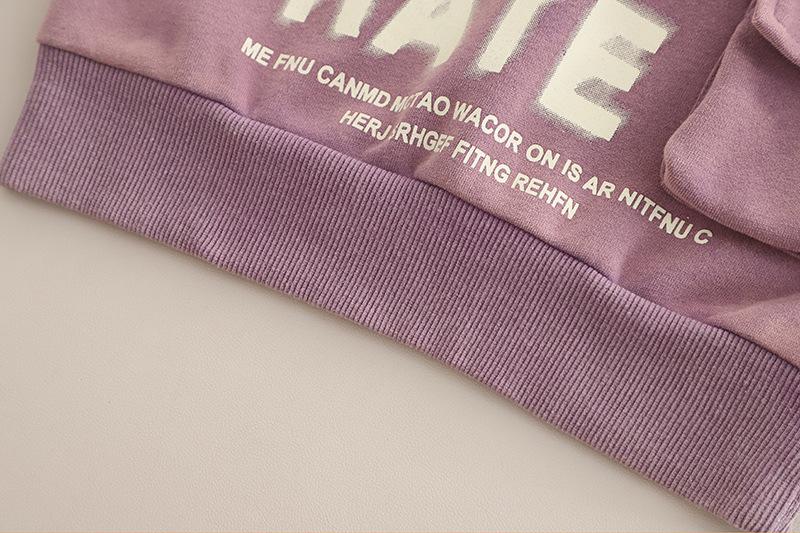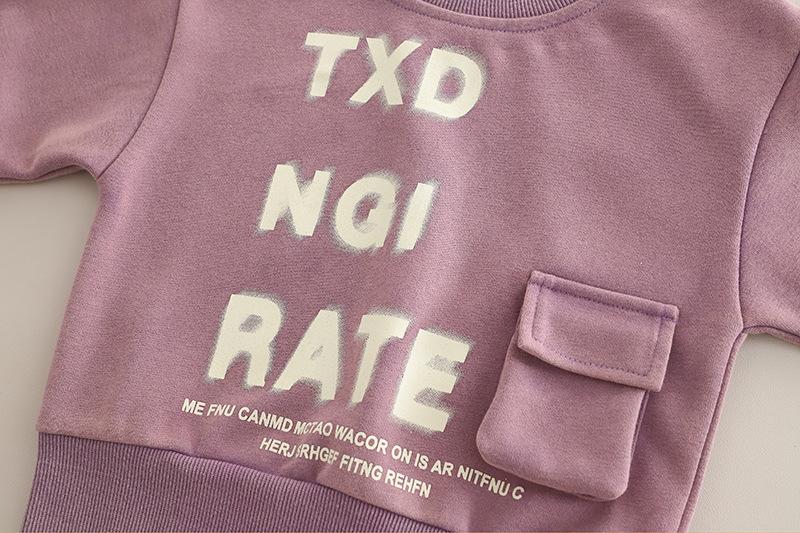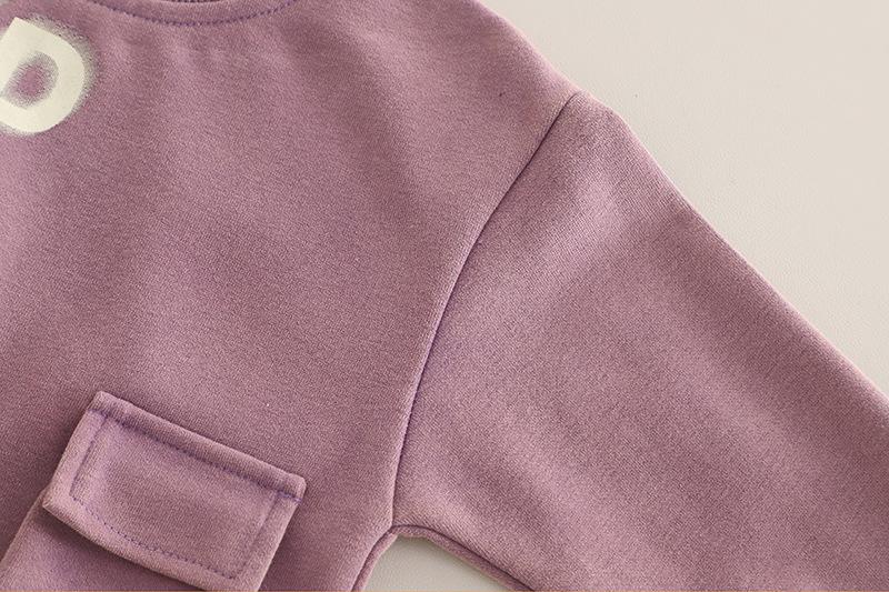 Purple 25q27-3D Pocket Letter Long Sleeve Two-Piece Set, Dark gray 25q27-3D pocket letter long-sleeved two-piece set
