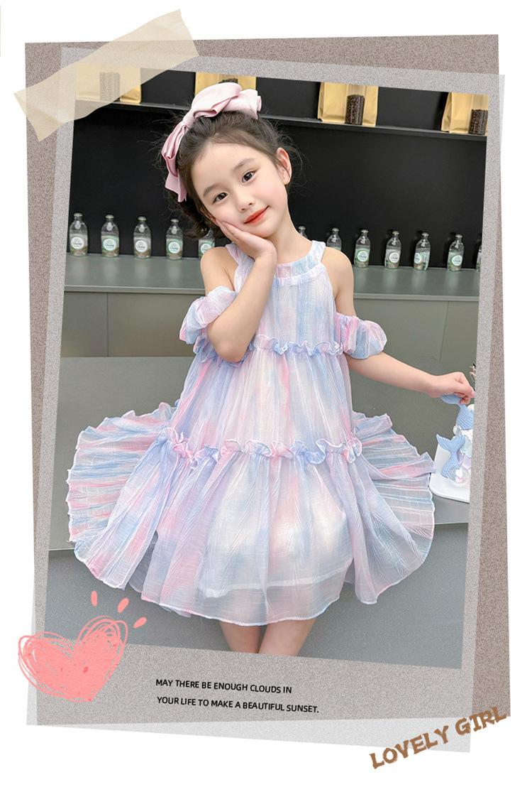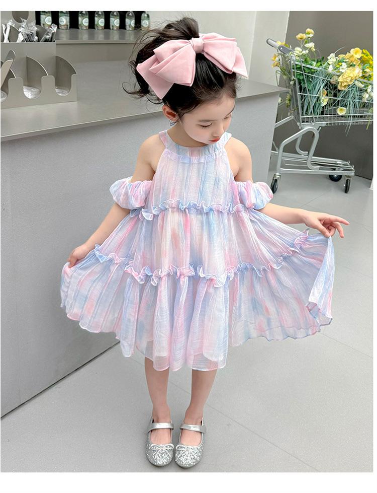 Vestido de Niña Verano 2025 Nuevo Vestido de Princesa de Verano a la Moda para Bebé Niña Vestido de Tirantes de Gasa a la Moda para Niñas