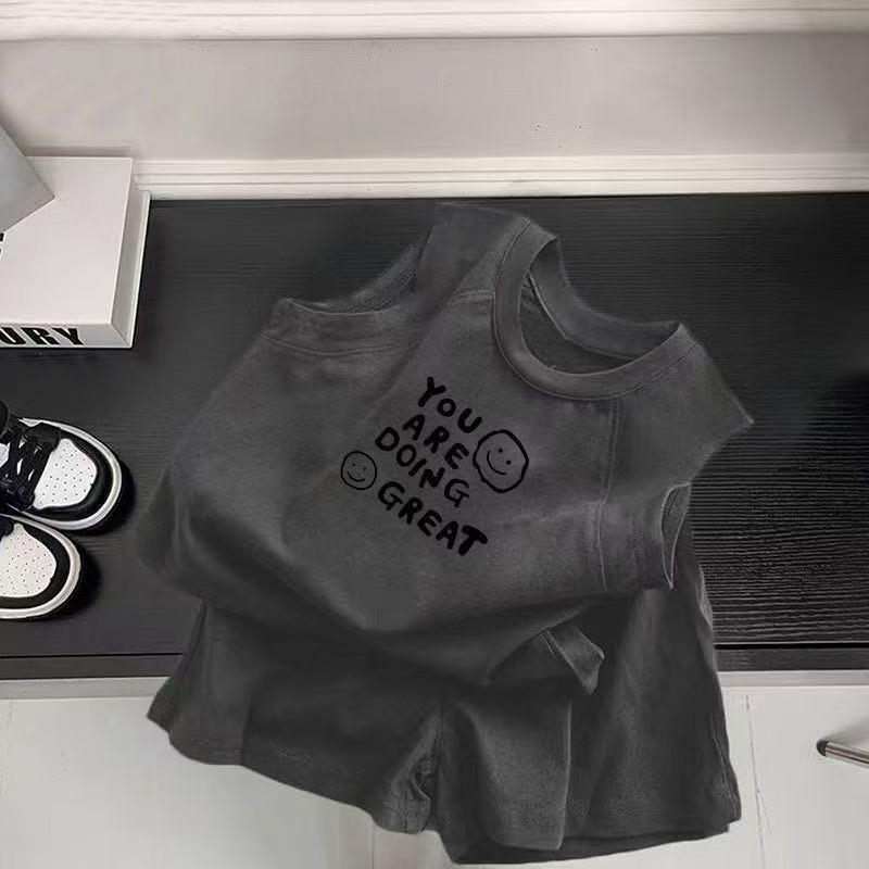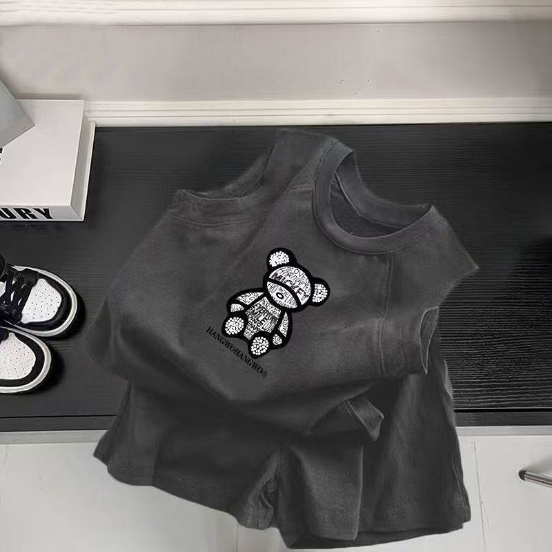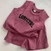 2025 Nuevo Traje de Chaleco de Algodón para Niños Verano Moda Bebé Guapo Top sin Mangas Shorts Dos Piezas Trendy