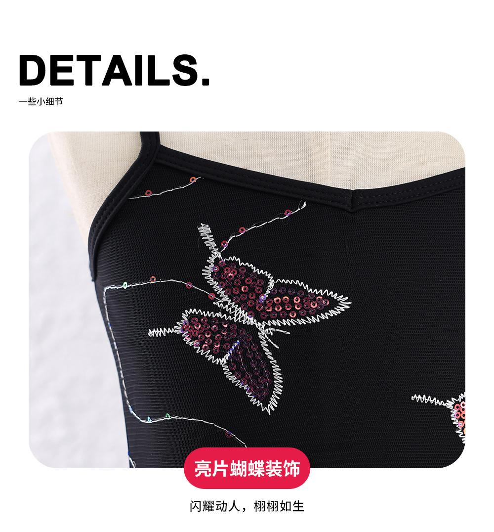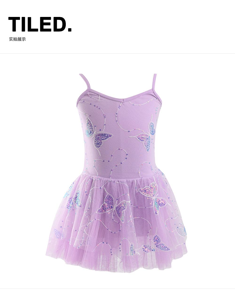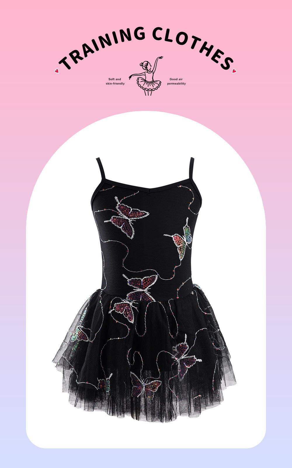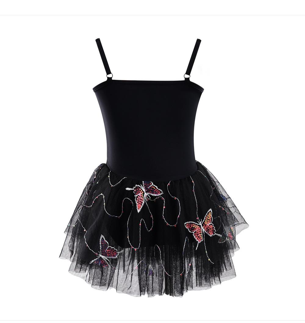 Disfraz de baile infantil transfronterizo lentejuelas tirantes espagueti malla bordado mariposa lentejuelas bordado vestido infantil disfraz de actuación para niña