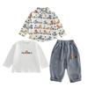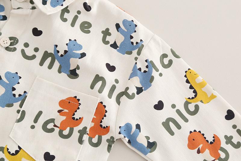 Conjunto de Otoño para Niño 2025 Nuevo Moderno Infantil y Niño Pequeño Otoño Guapo Camisa de Dinosaurio Conjunto de Tres Piezas Ropa de Moda para Bebé