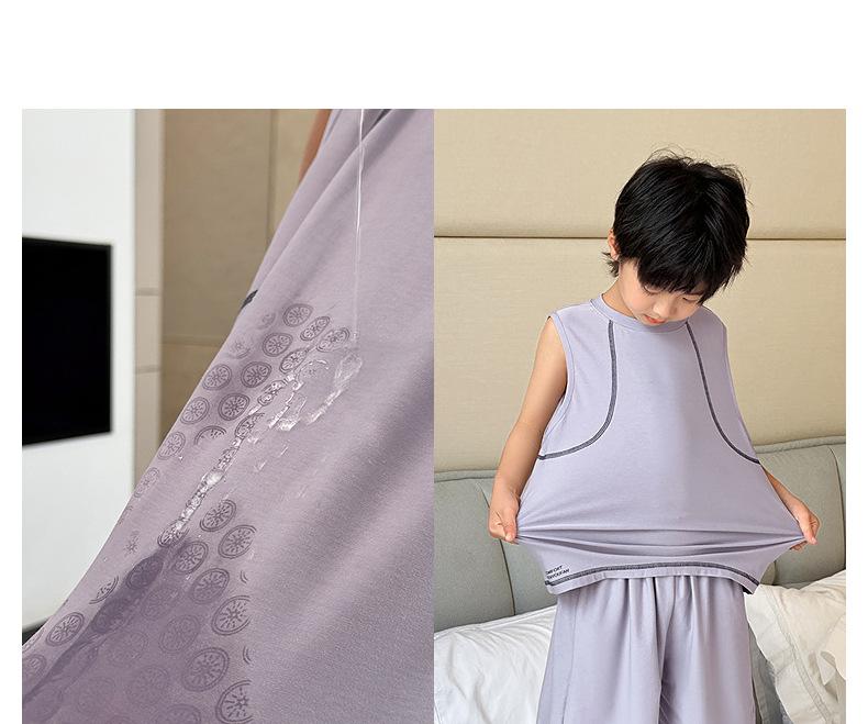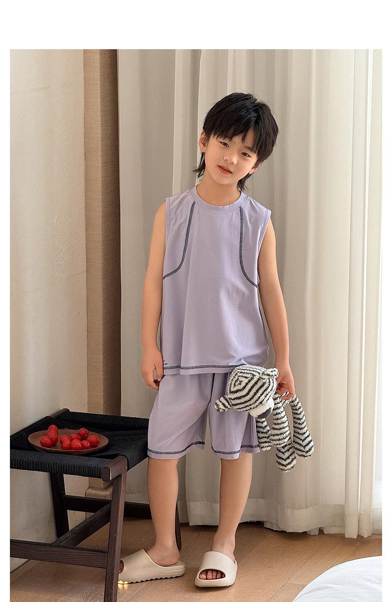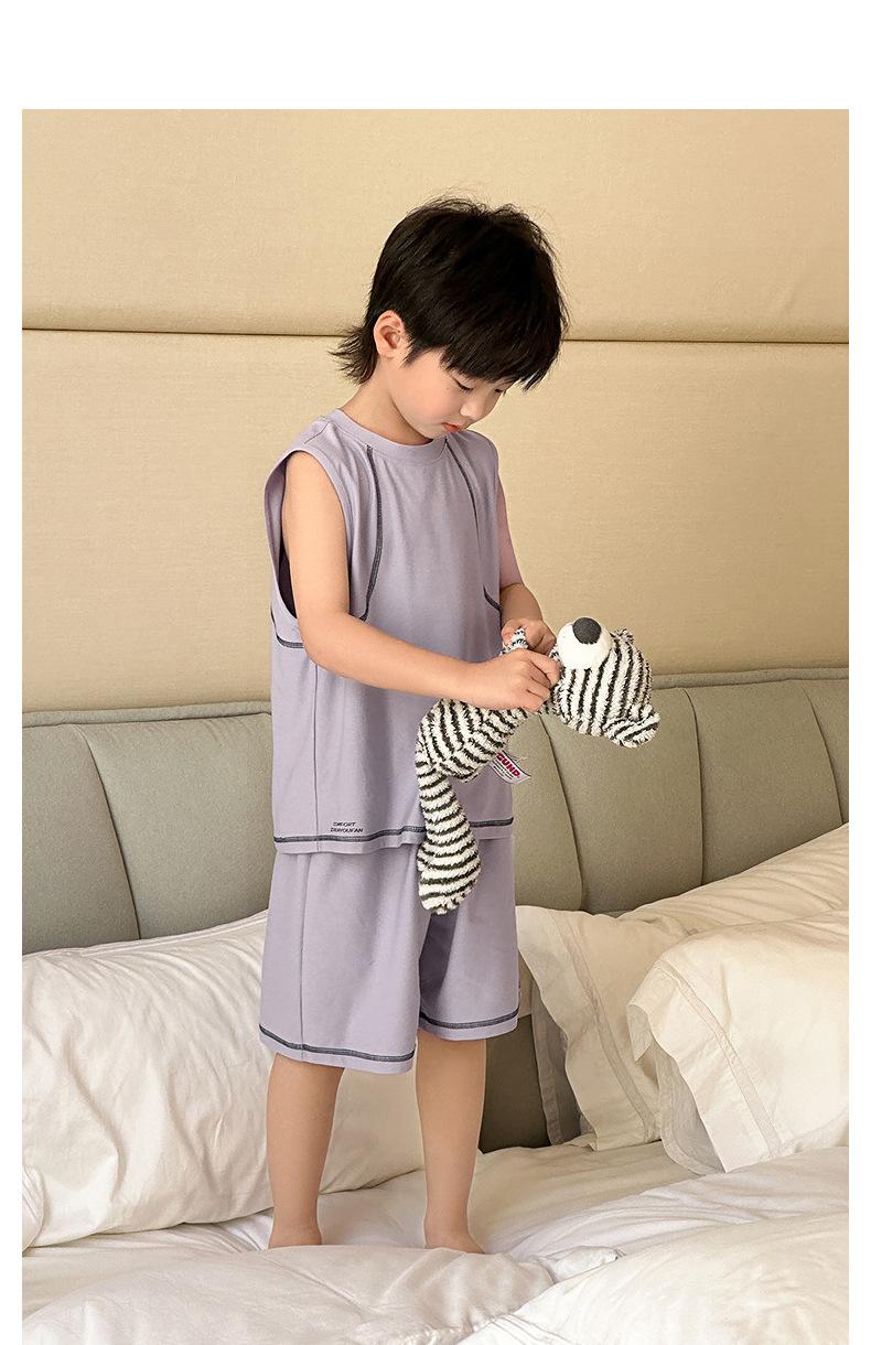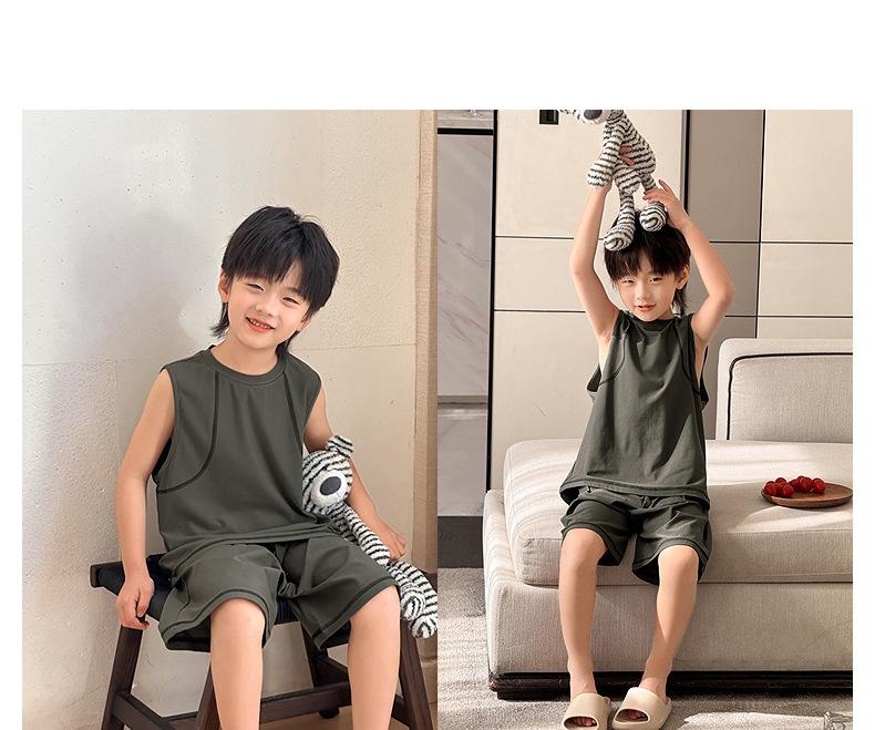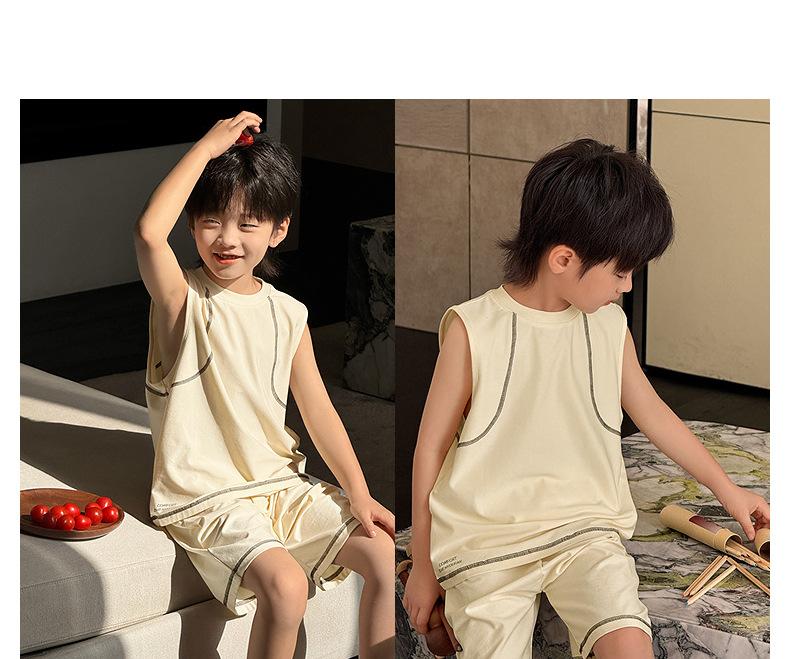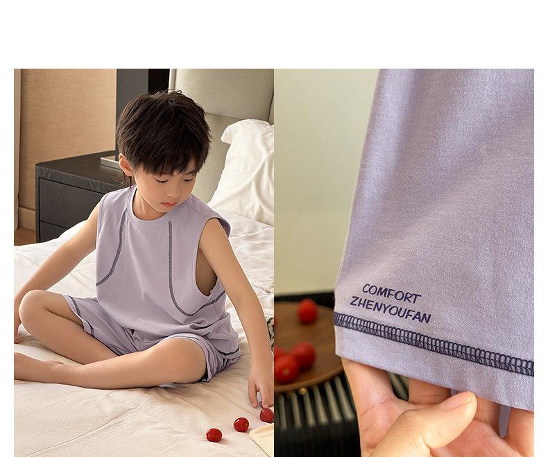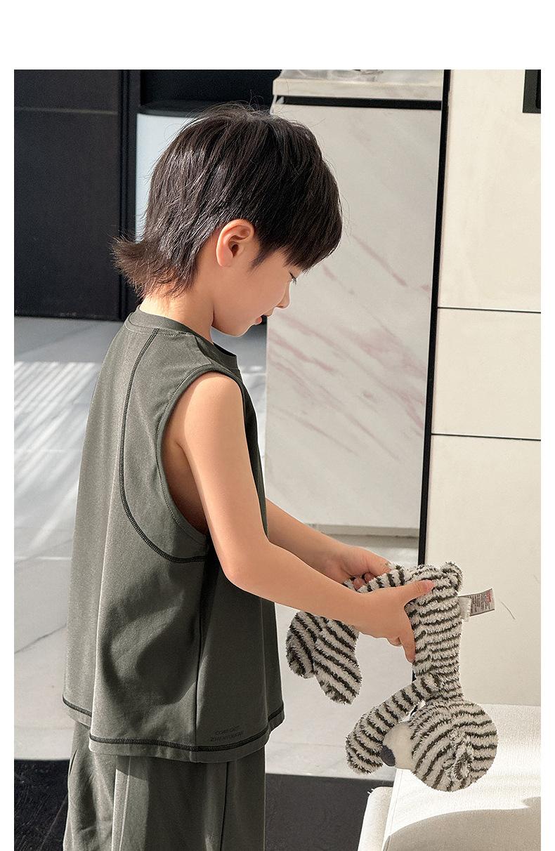 Ropa para Niños Zhenpinxuan Pijamas de Verano Delgados 2025 Nuevos Modales para Niños Traje de Ropa de Casa sin Mangas para Niños Moderno