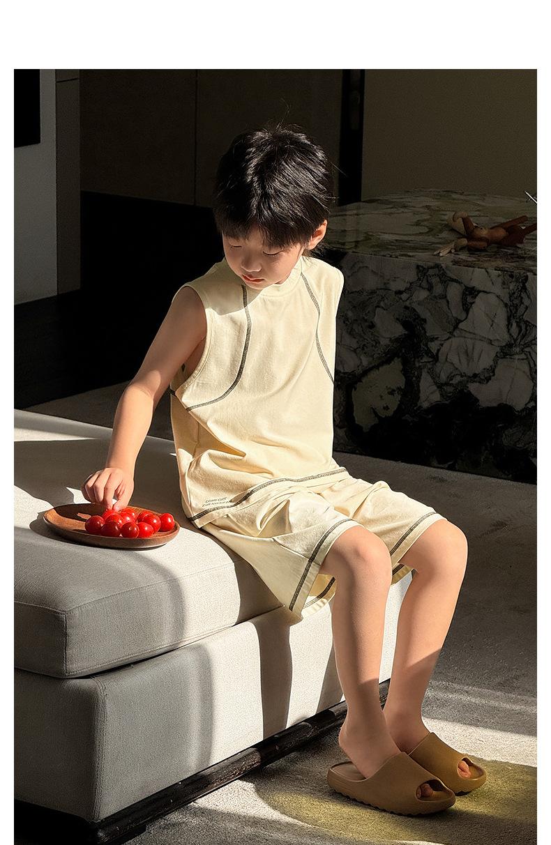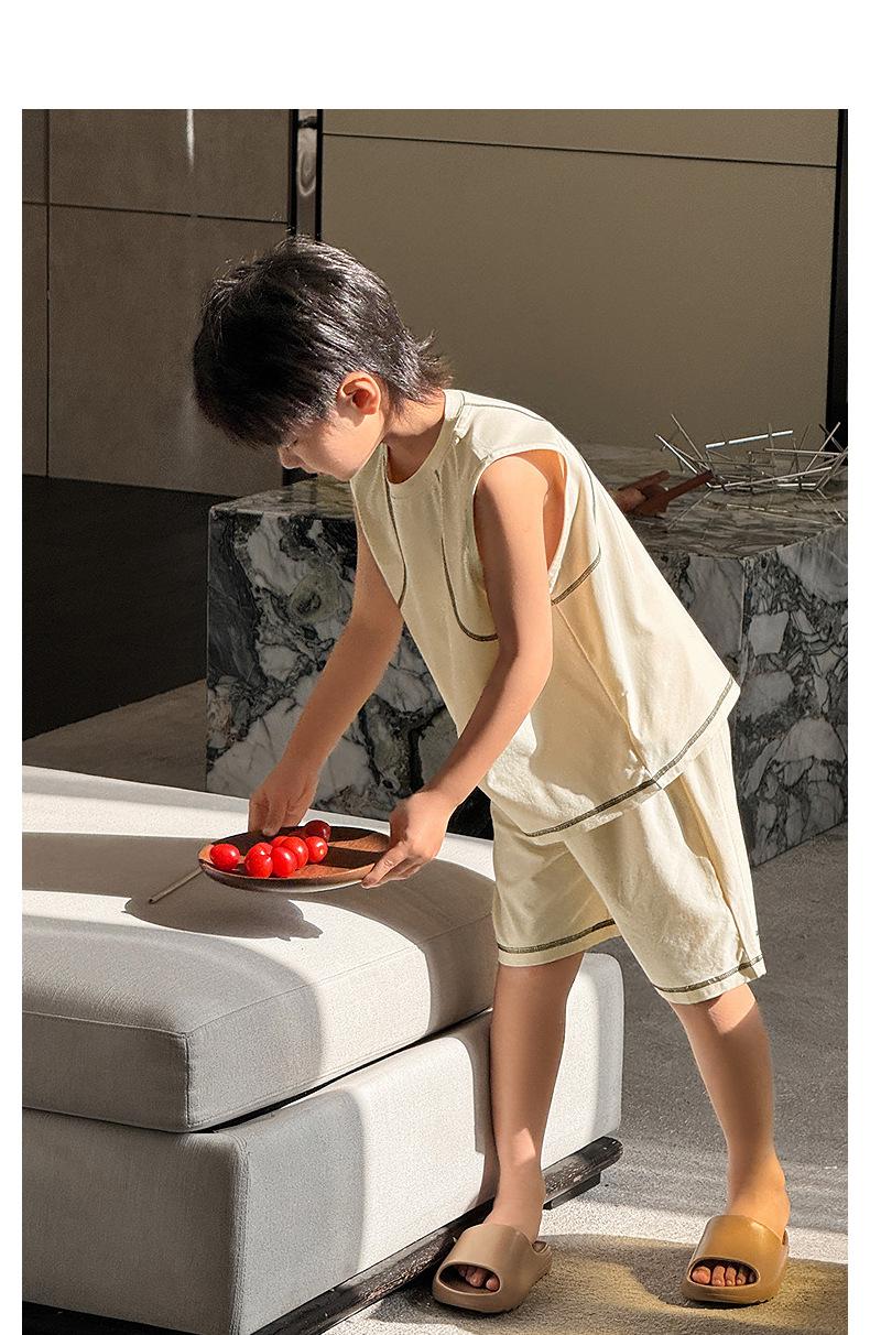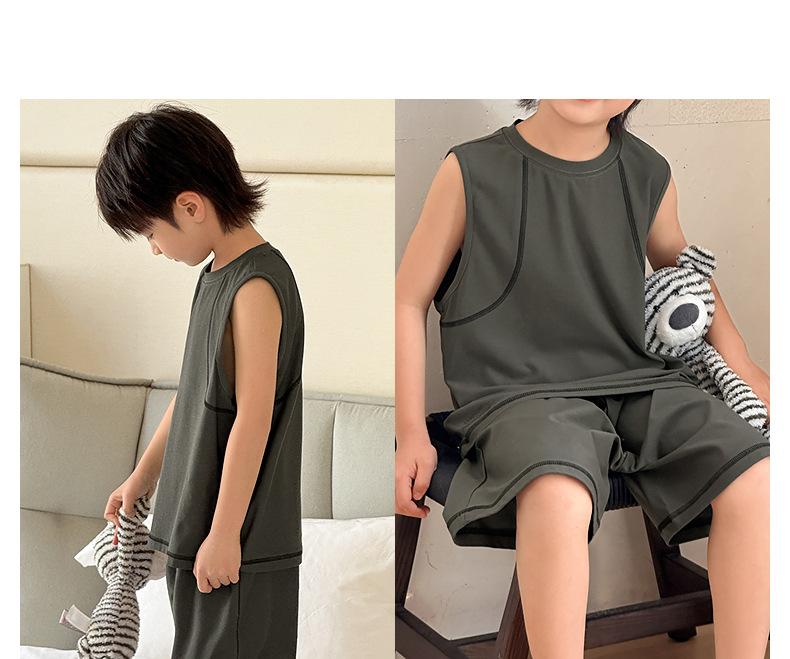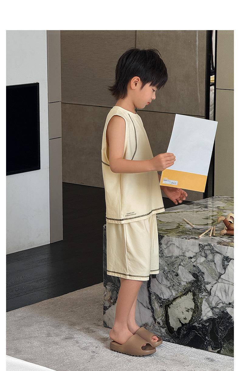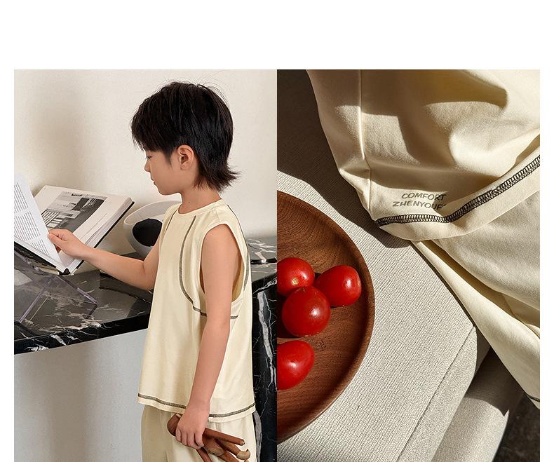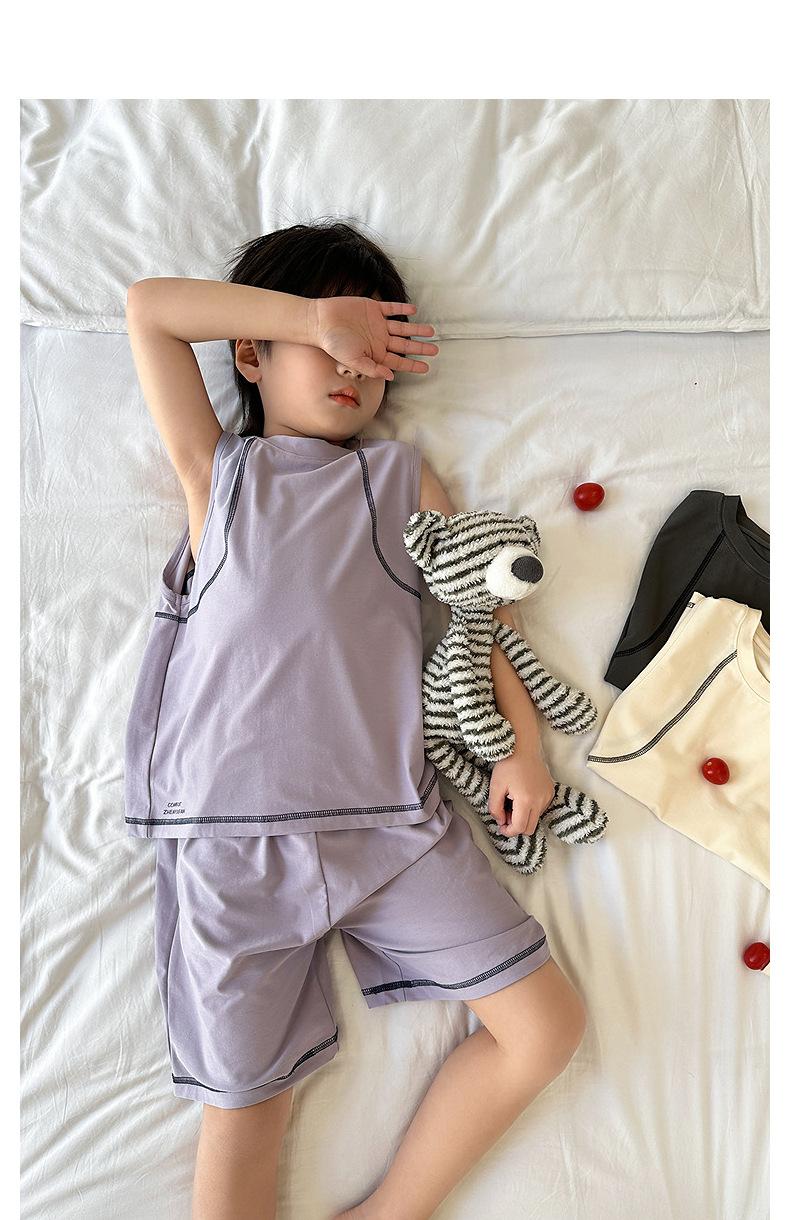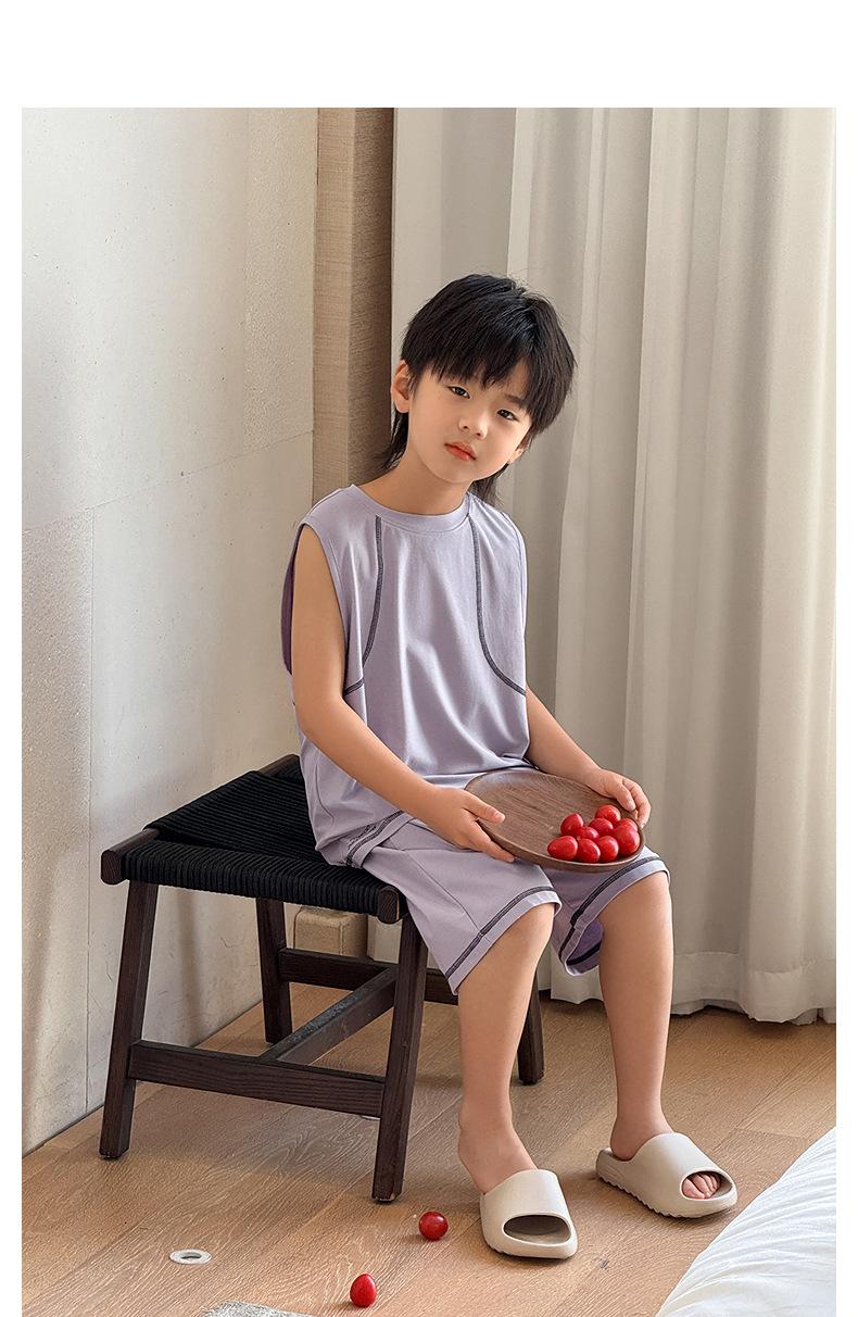 Ropa para Niños Zhenpinxuan Pijamas de Verano Delgados 2025 Nuevos Modales para Niños Traje de Ropa de Casa sin Mangas para Niños Moderno
