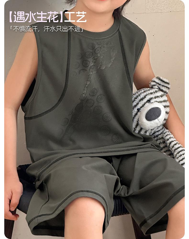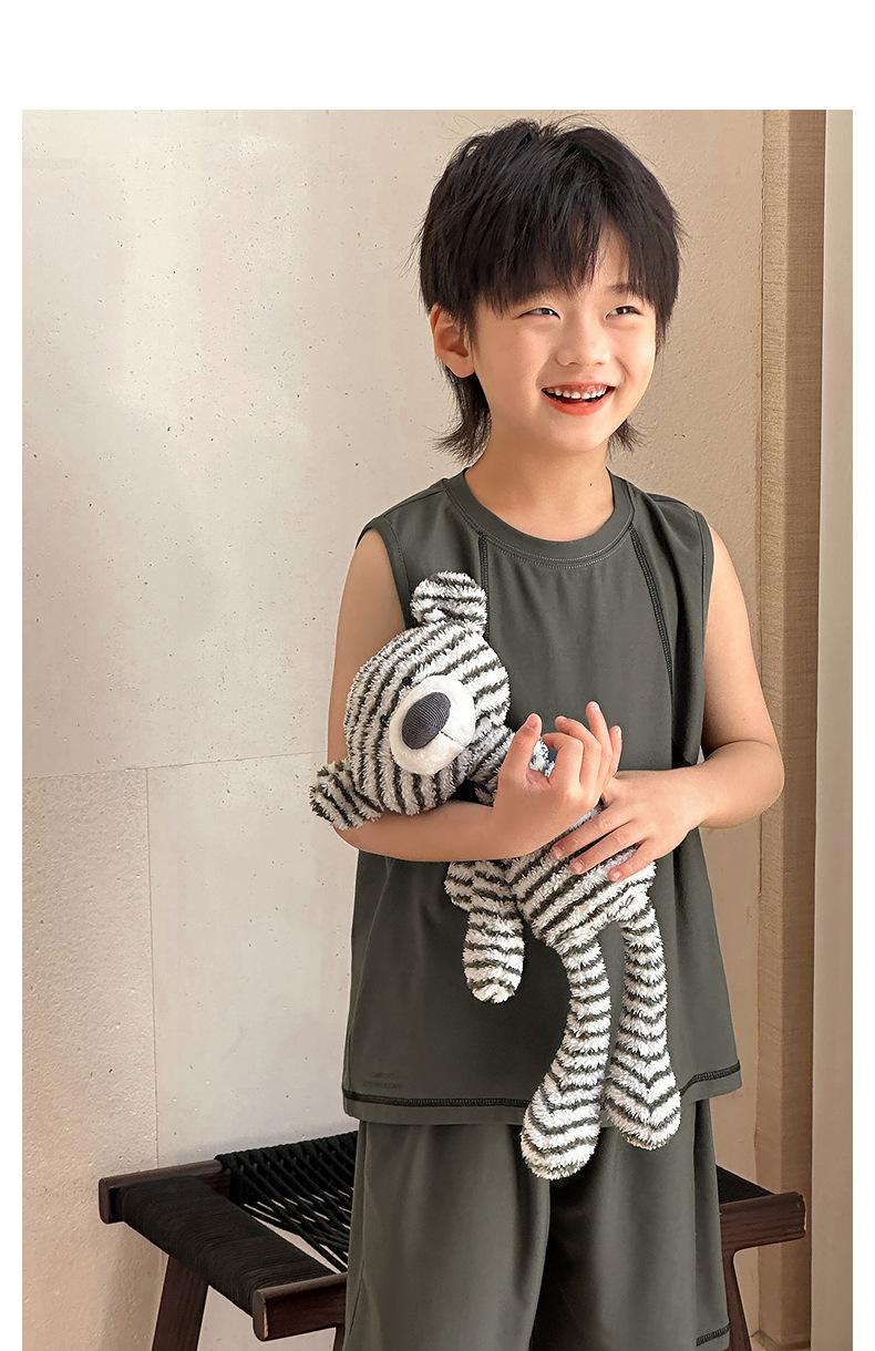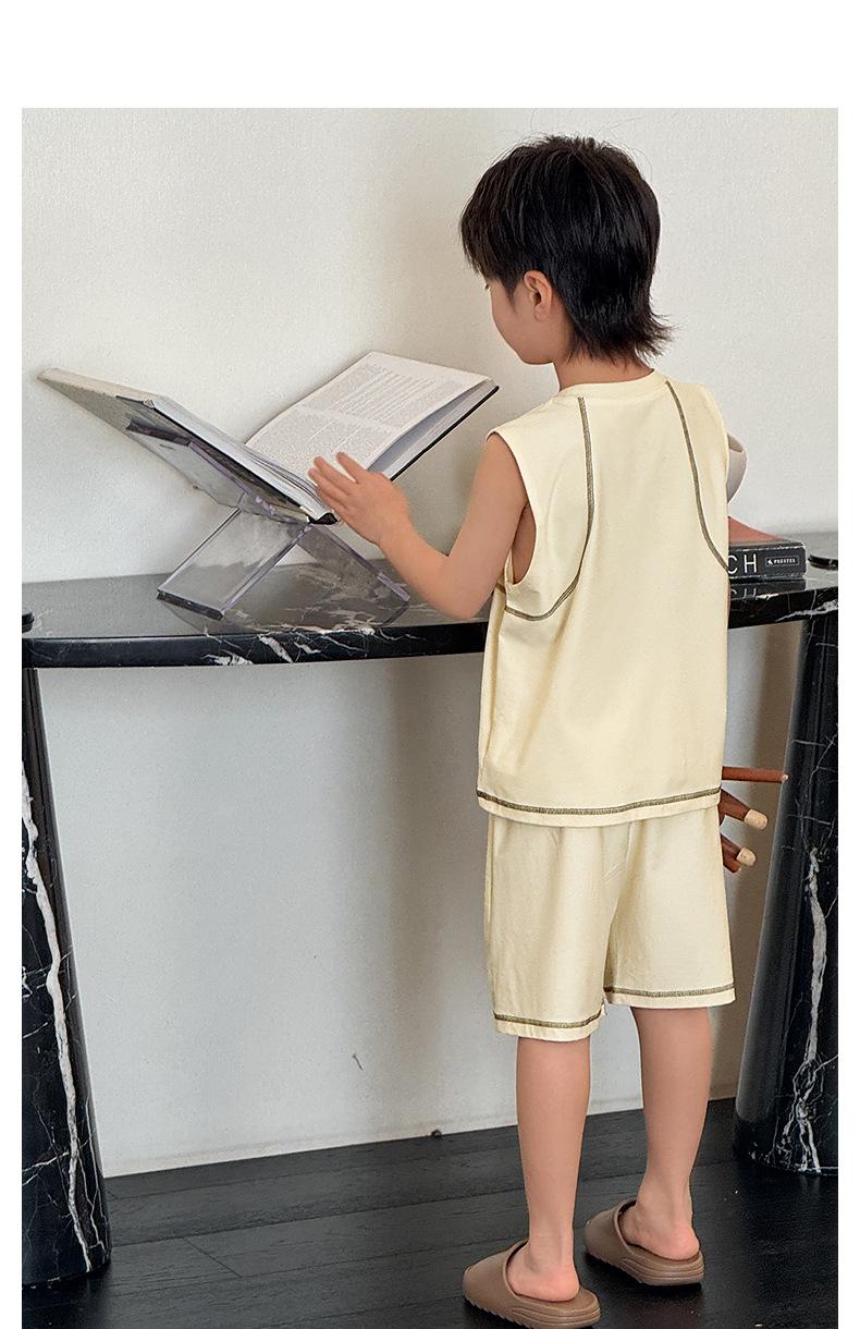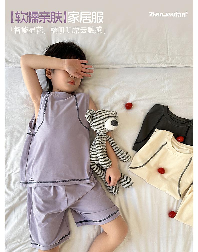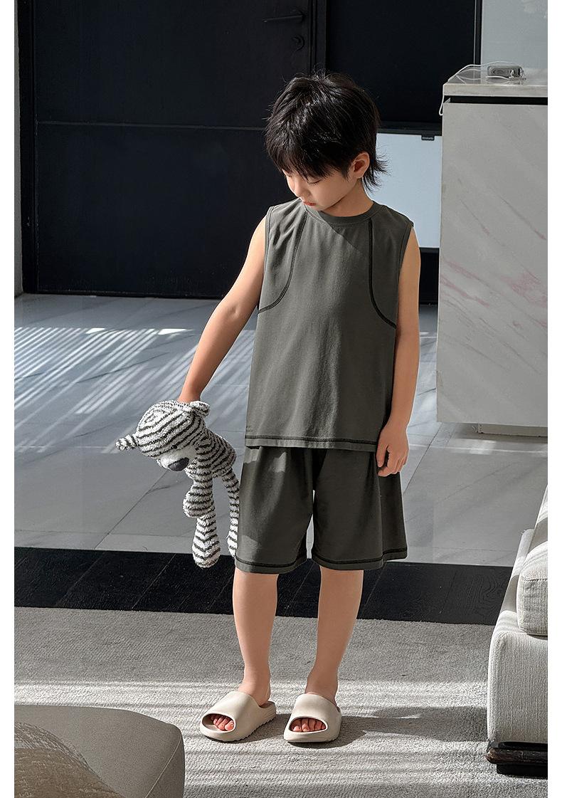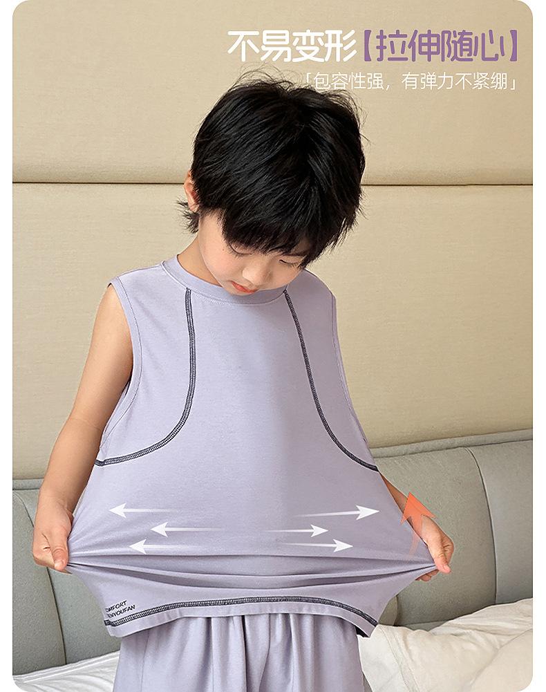 Ropa para Niños Zhenpinxuan Pijamas de Verano Delgados 2025 Nuevos Modales para Niños Traje de Ropa de Casa sin Mangas para Niños Moderno