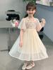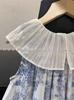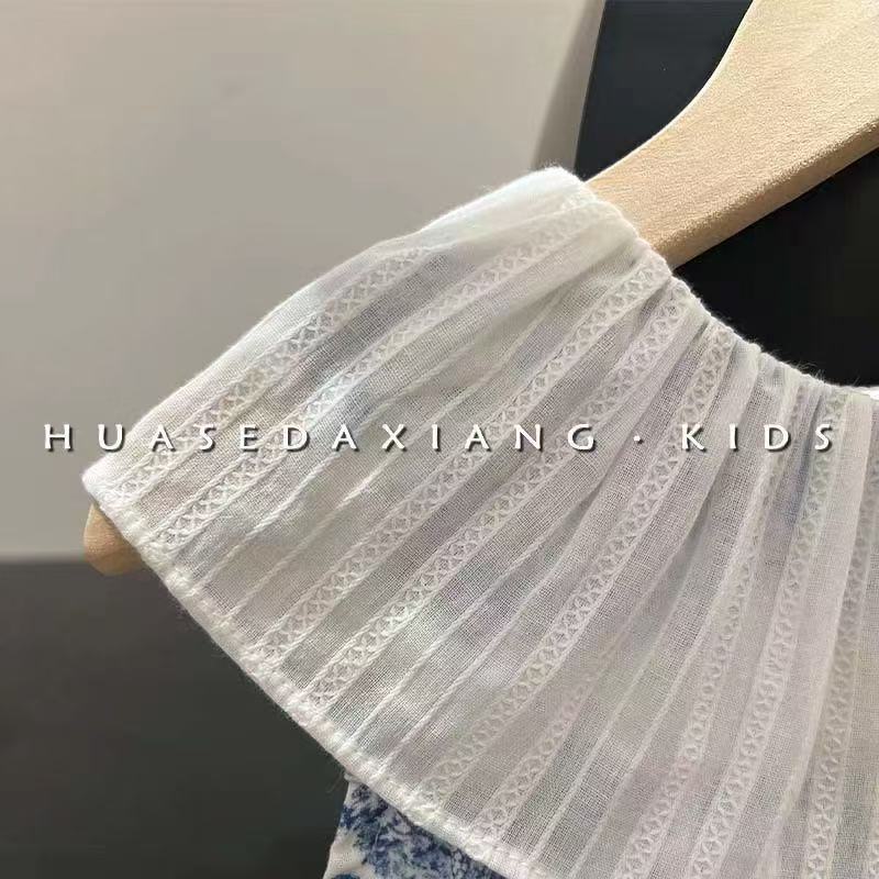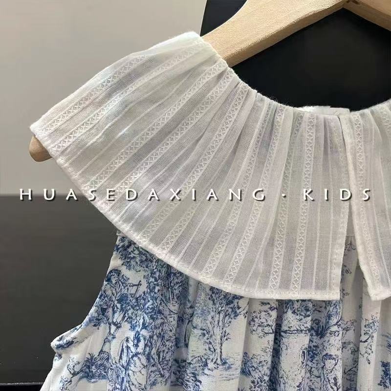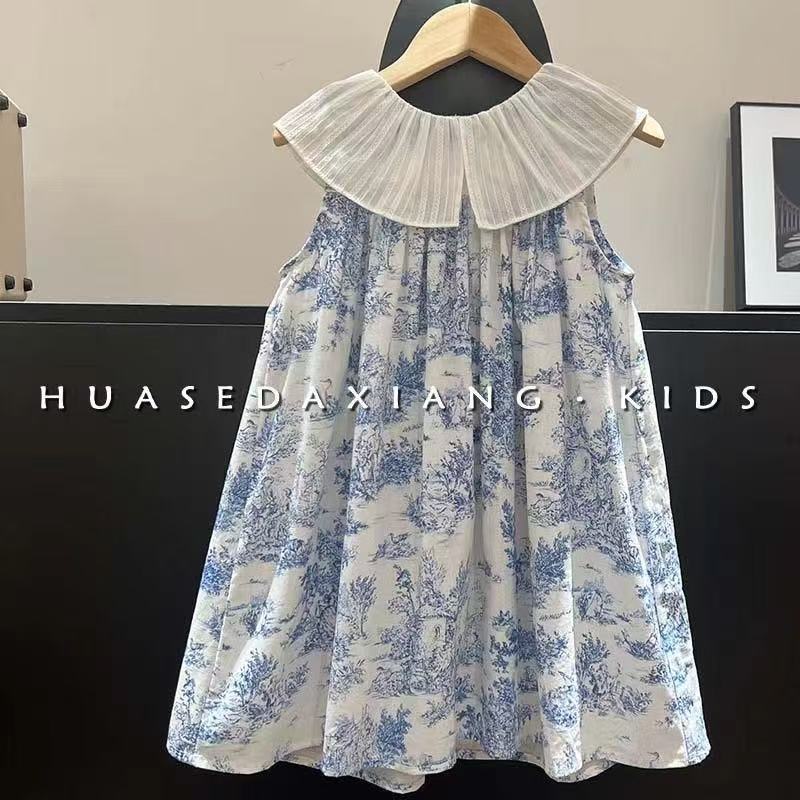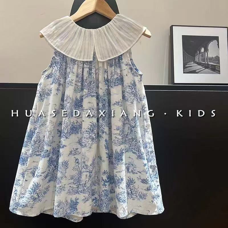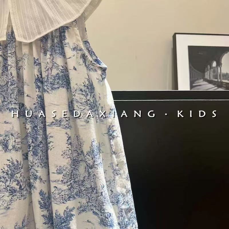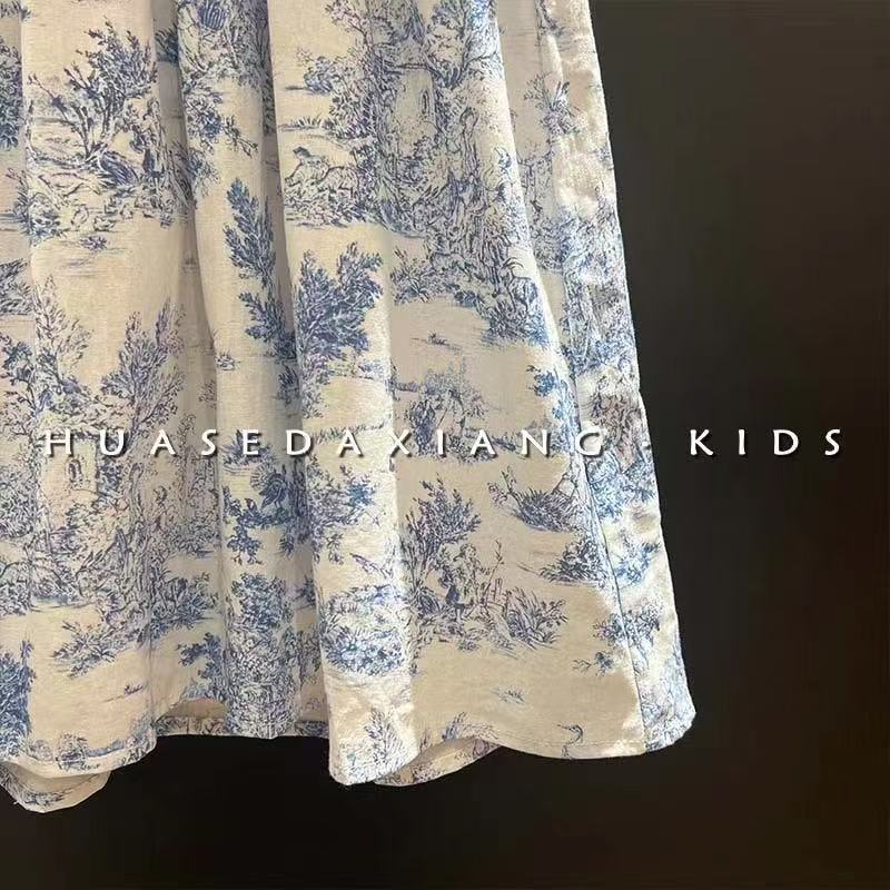 Vestido Chaleco Estampado Estilo Chino para Niñas 2024 Verano Nuevo Estilo Vestido con Solapa Vestido Infantil Estilo Pastoral para Niñas