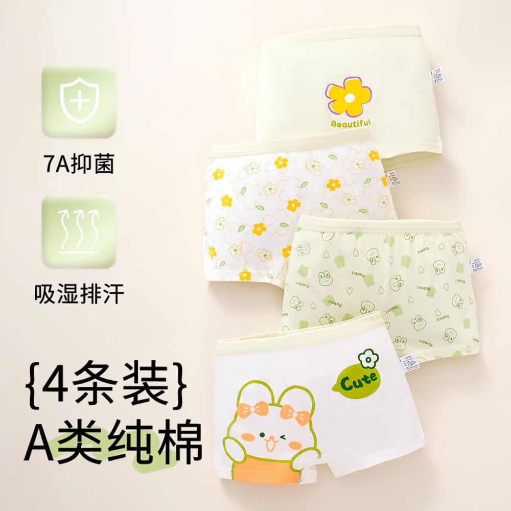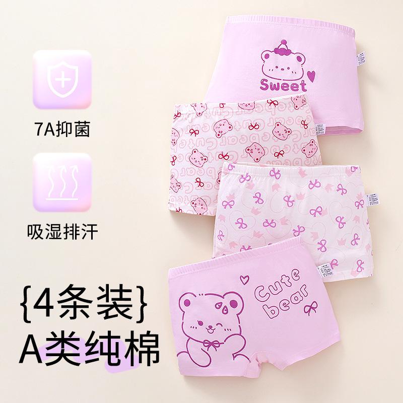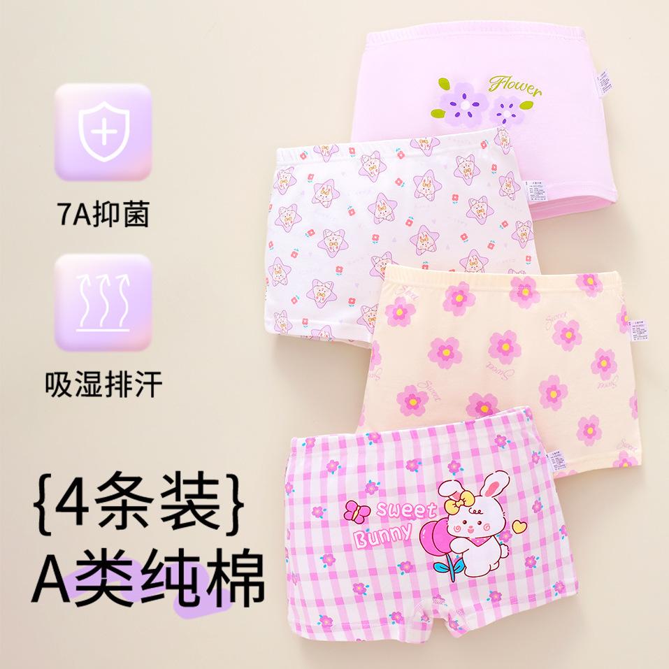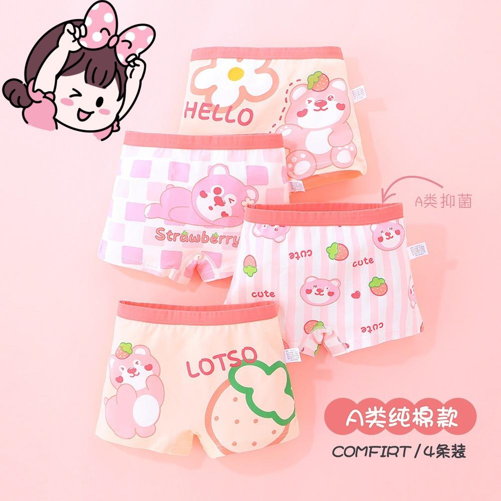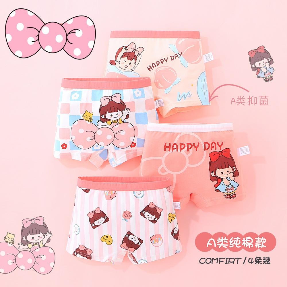 [Paquete de 4] Ropa interior Antibacterial Clase a de Algodón Puro, Ropa interior de Cuatro Esquinas con Dibujos Animados, Bóxers para Niñas, Ropa interior para Niños
