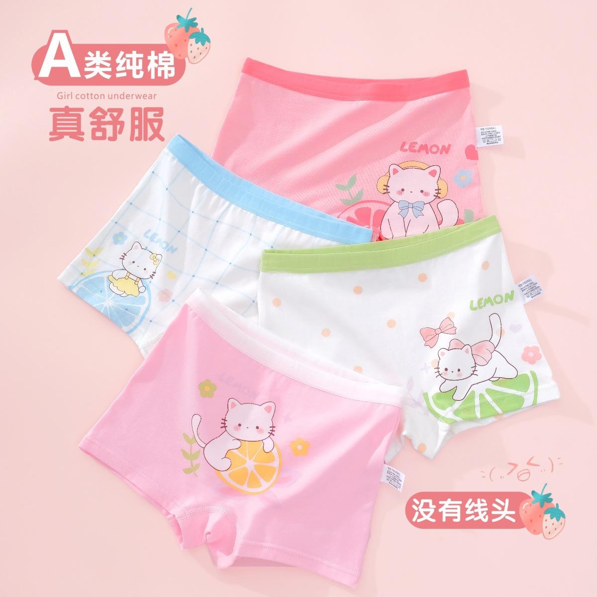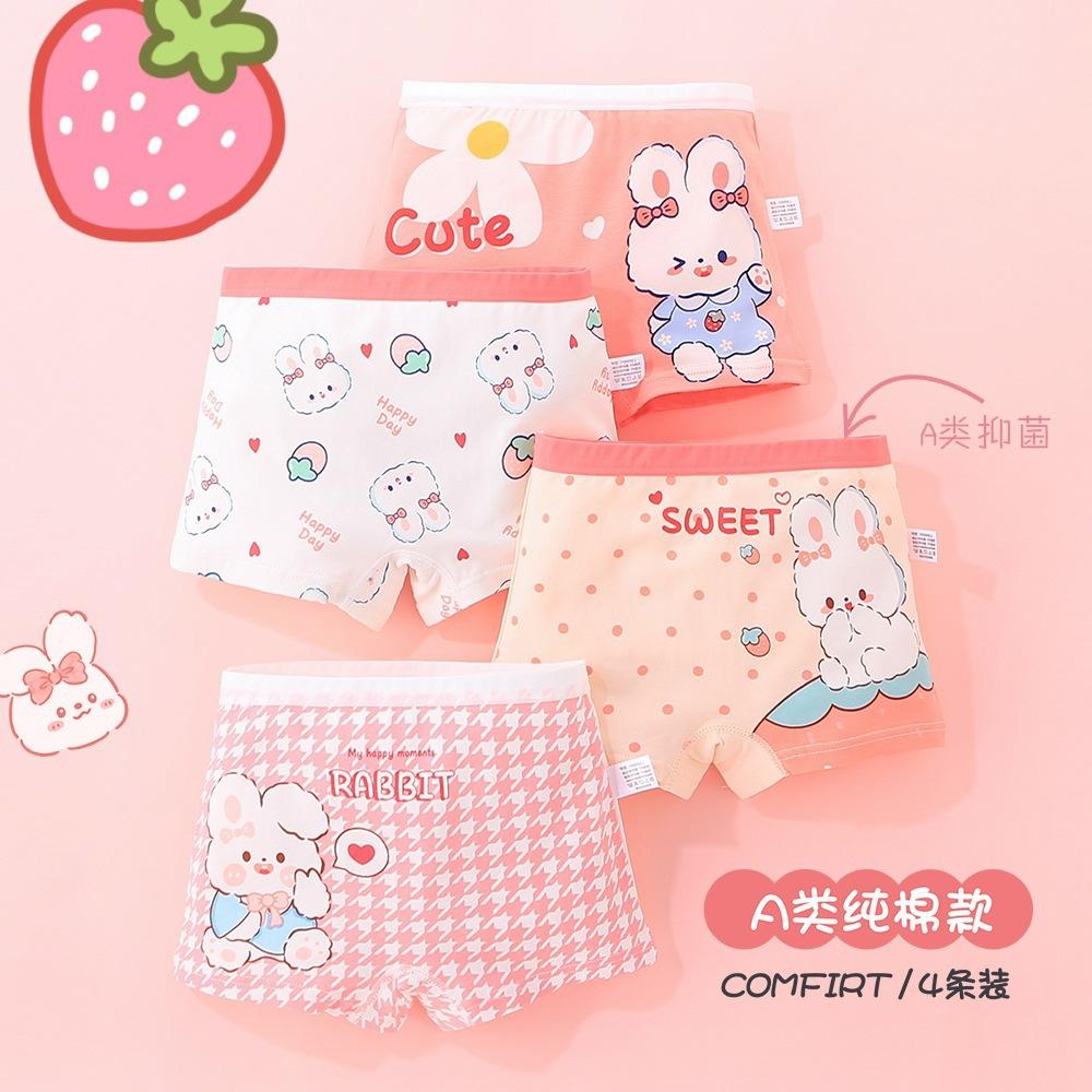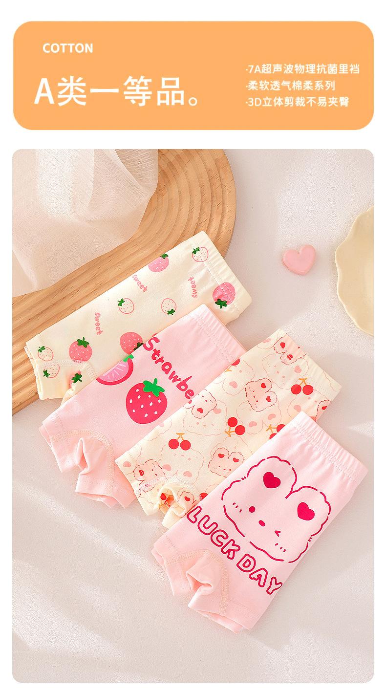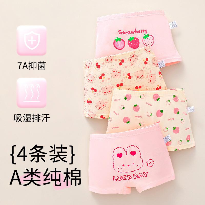 [Paquete de 4] Ropa interior Antibacterial Clase a de Algodón Puro, Ropa interior de Cuatro Esquinas con Dibujos Animados, Bóxers para Niñas, Ropa interior para Niños