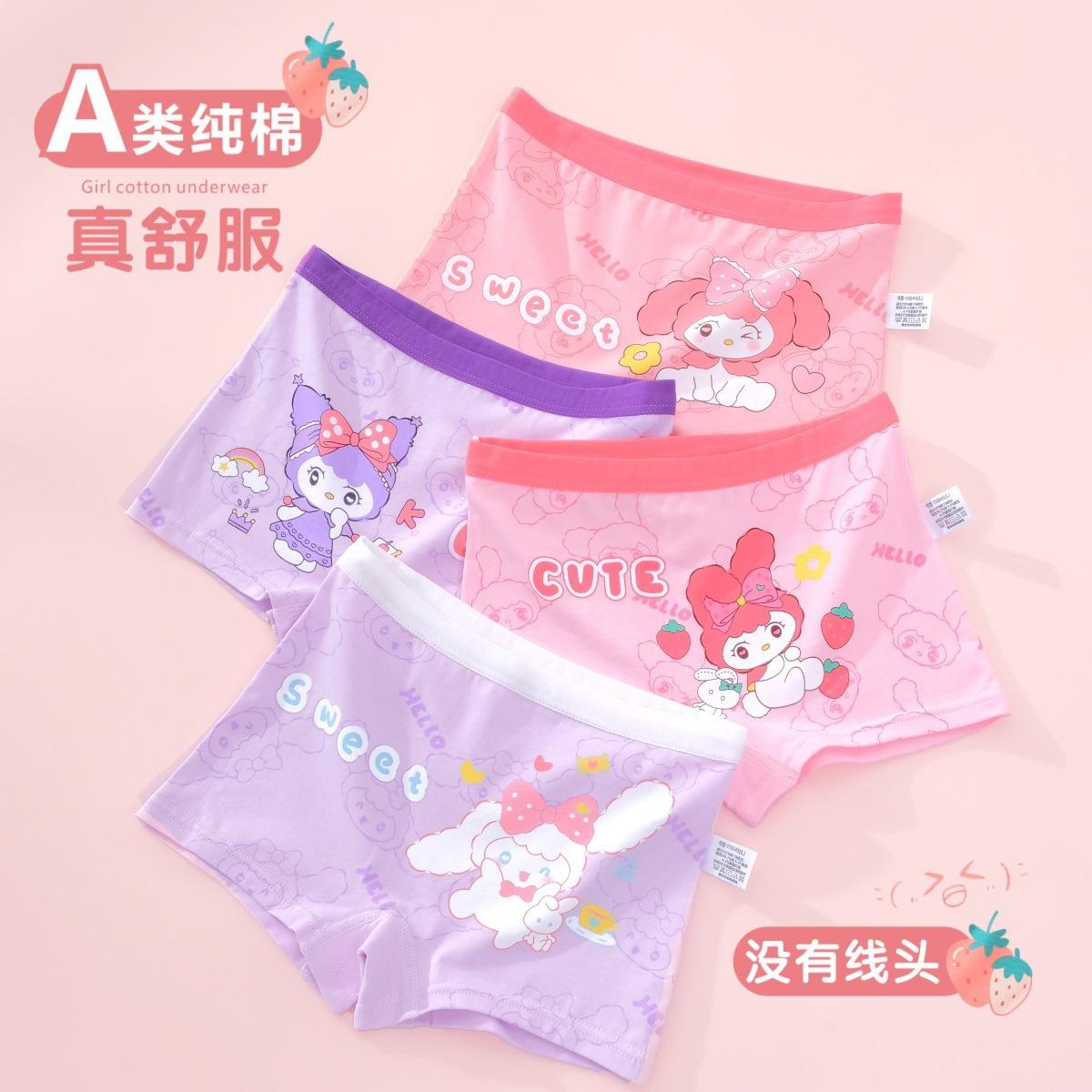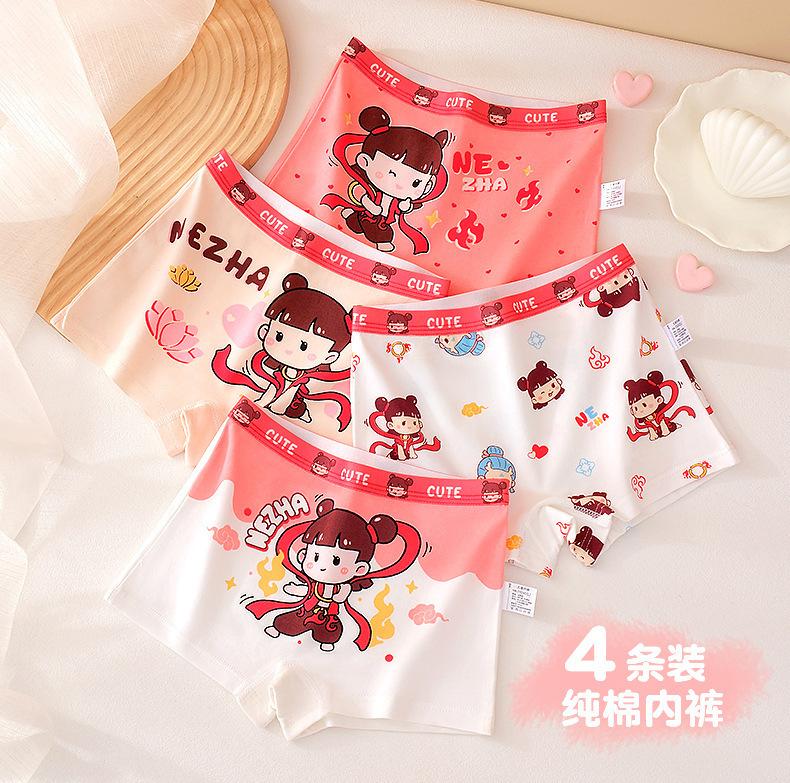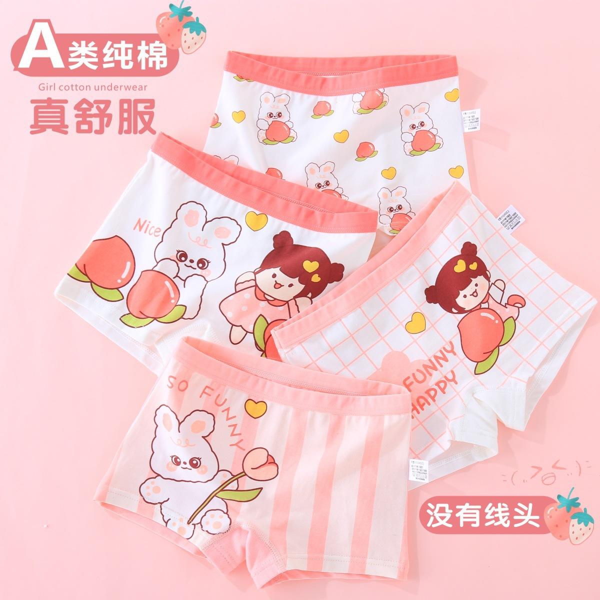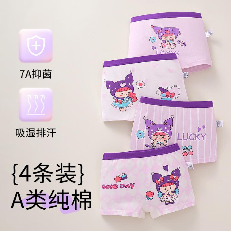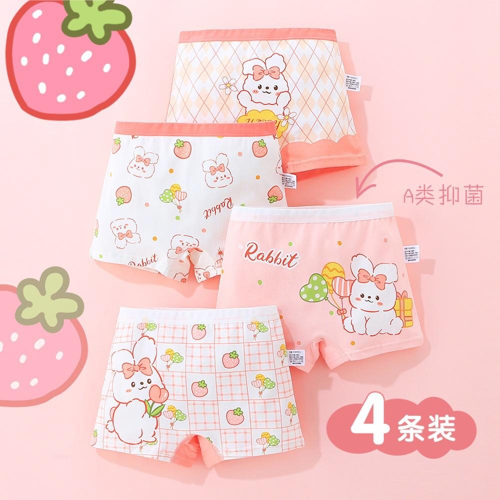[Paquete de 4] Ropa interior Antibacterial Clase a de Algodón Puro, Ropa interior de Cuatro Esquinas con Dibujos Animados, Bóxers para Niñas, Ropa interior para Niños