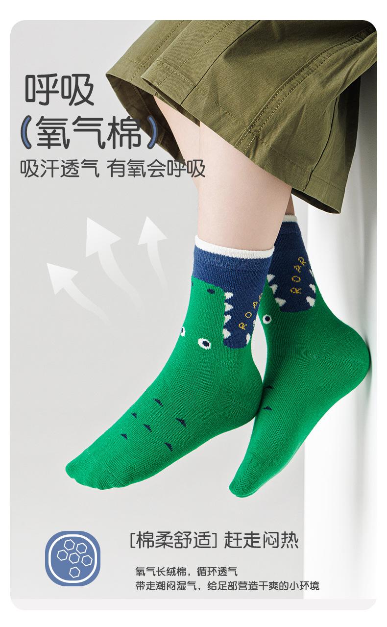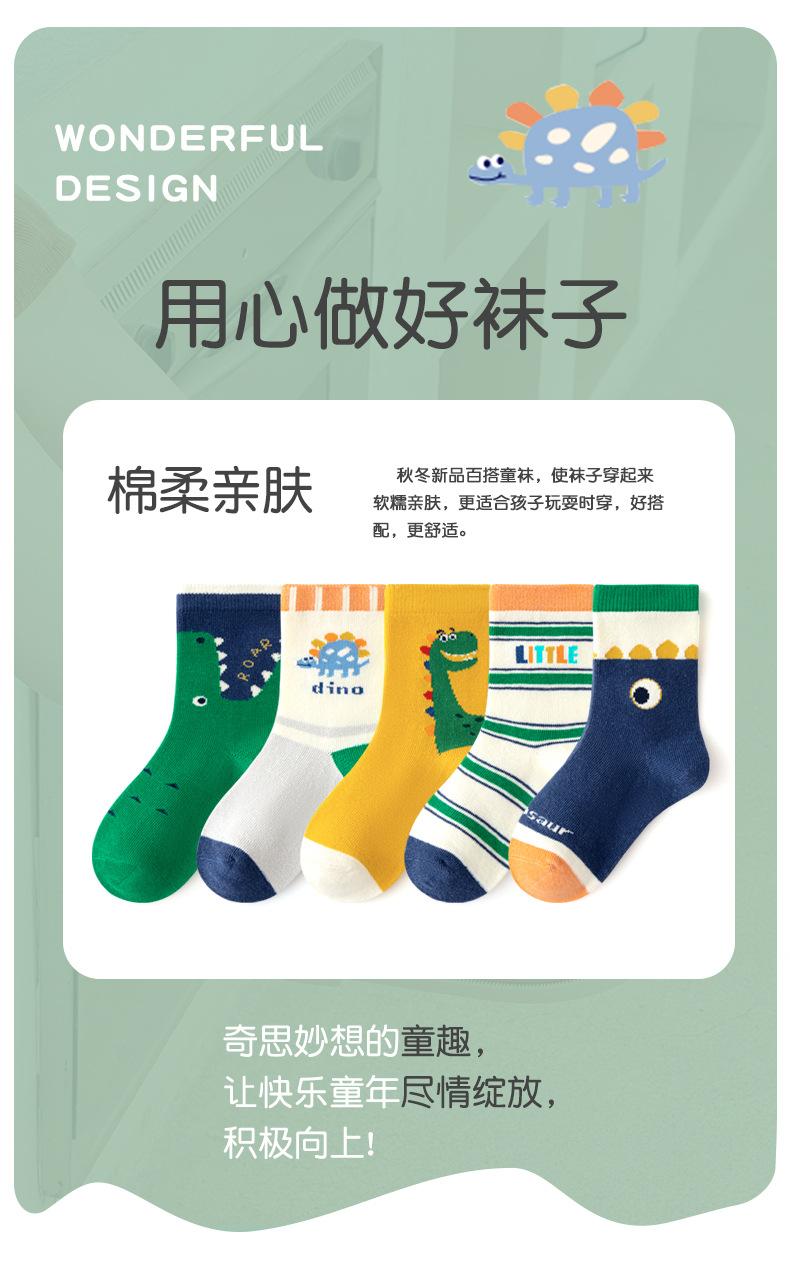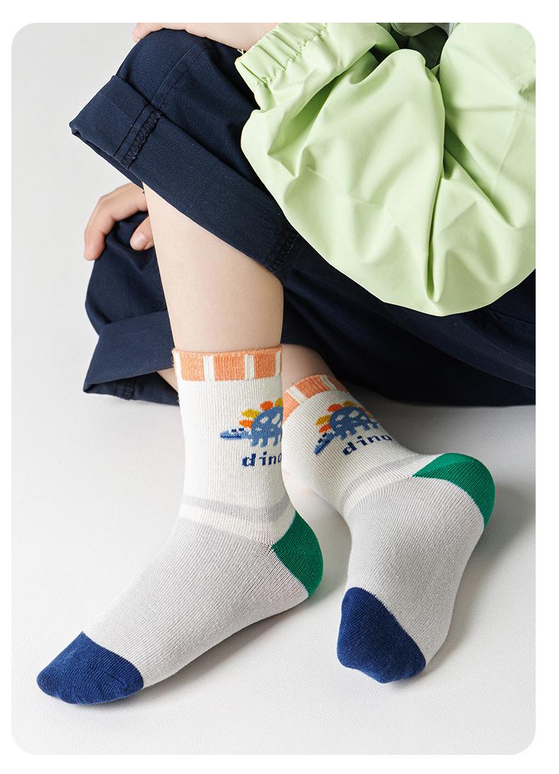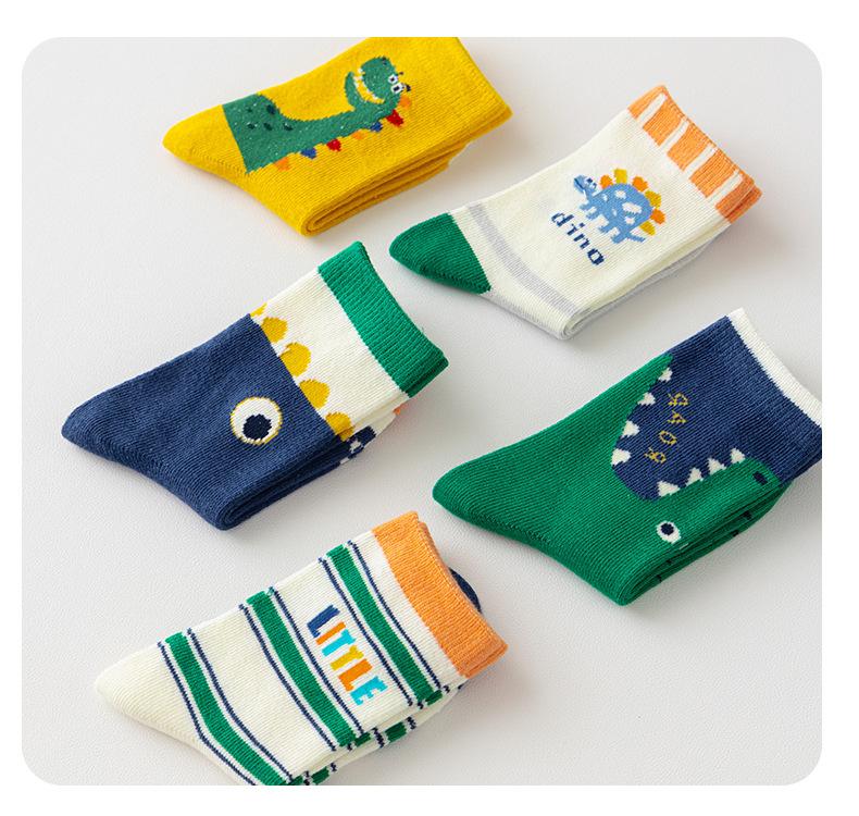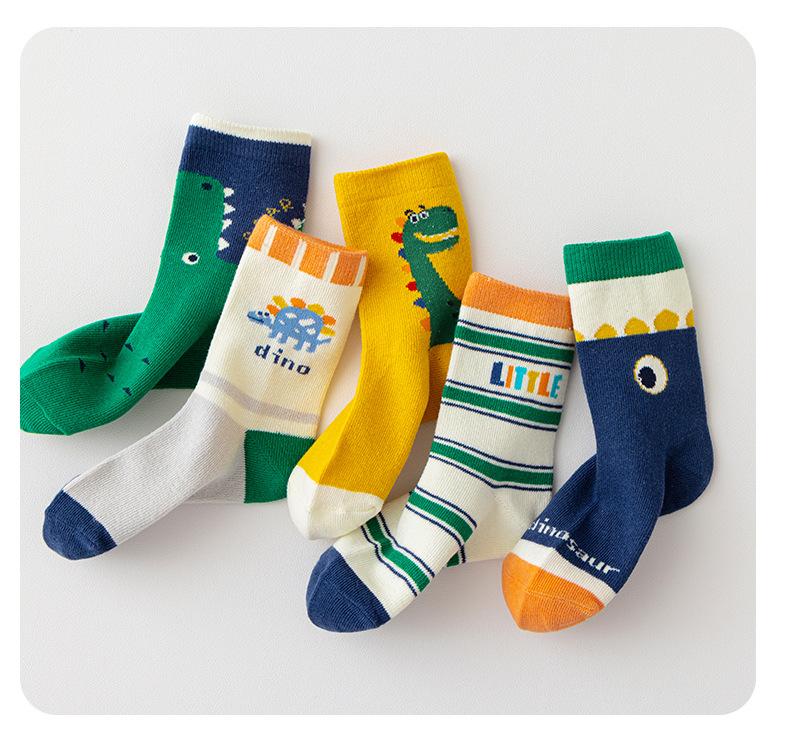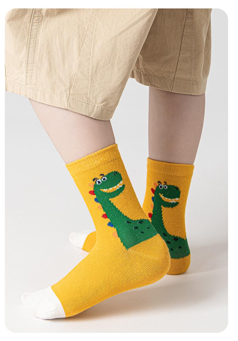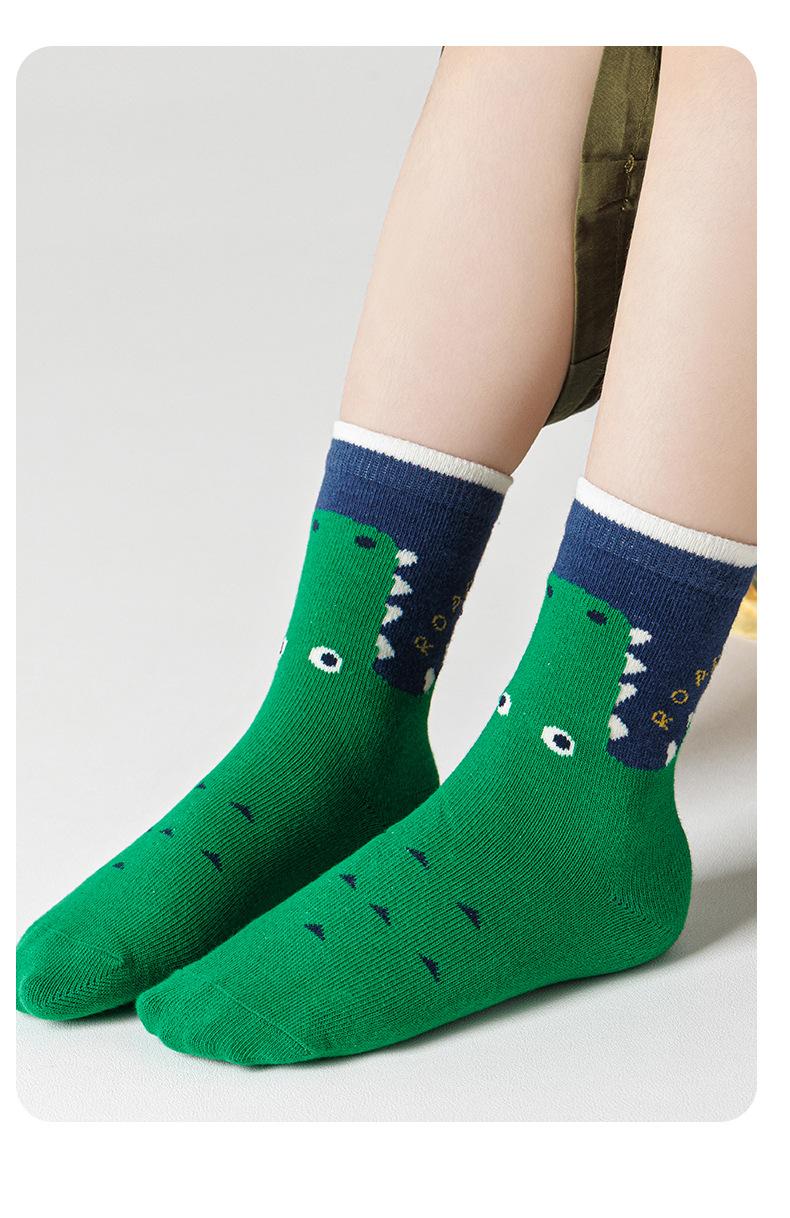 Calcetines de otoño e invierno para niños Calcetines lindos de dinosaurio Clase A para niños calcetines de dibujos animados hasta la mitad de la pantorrilla calcetines de algodón transpirables para bebés de primavera y otoño