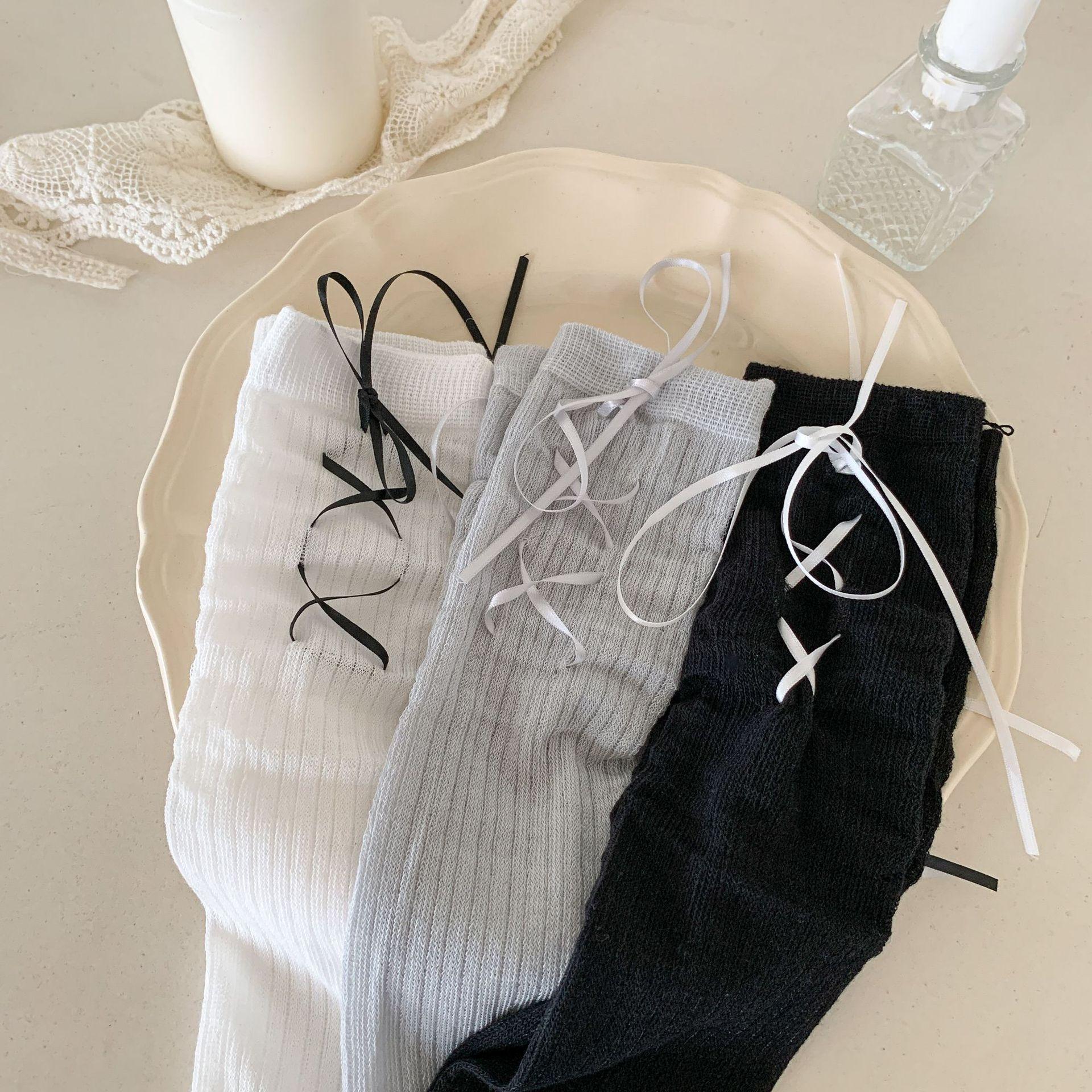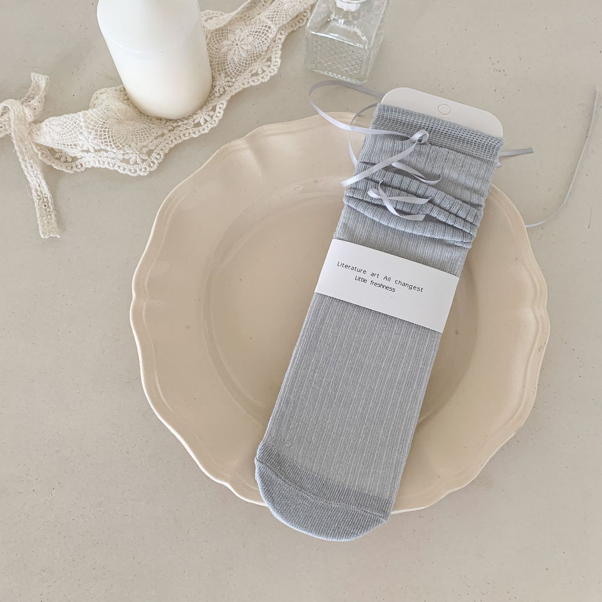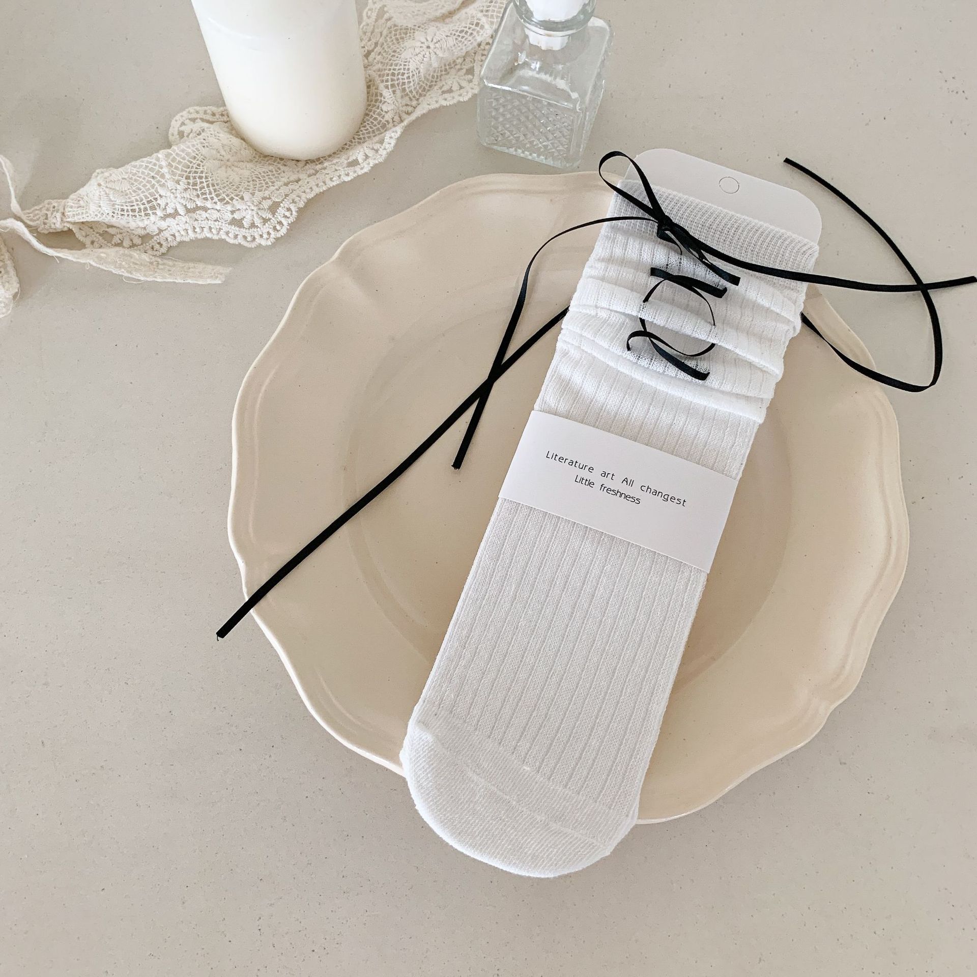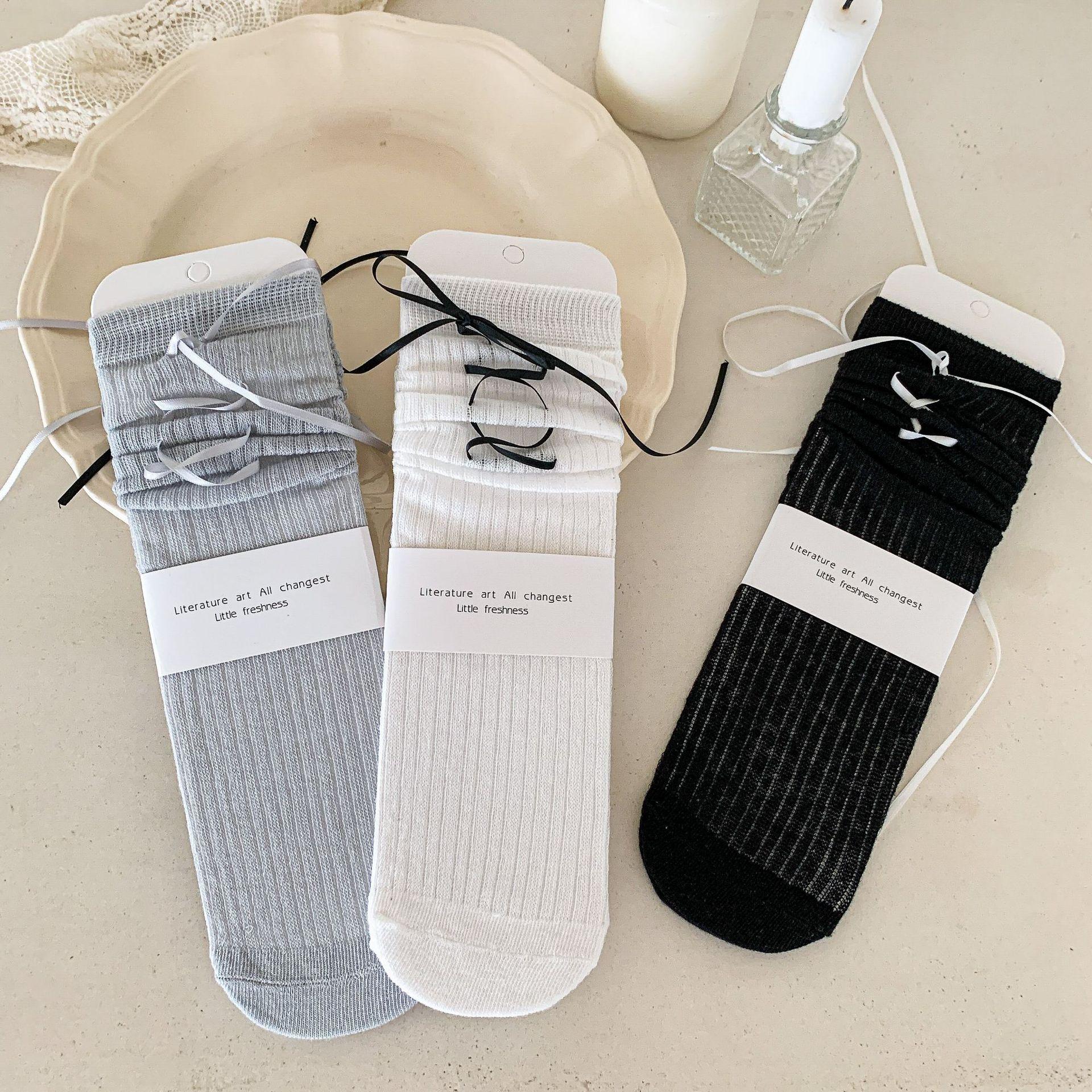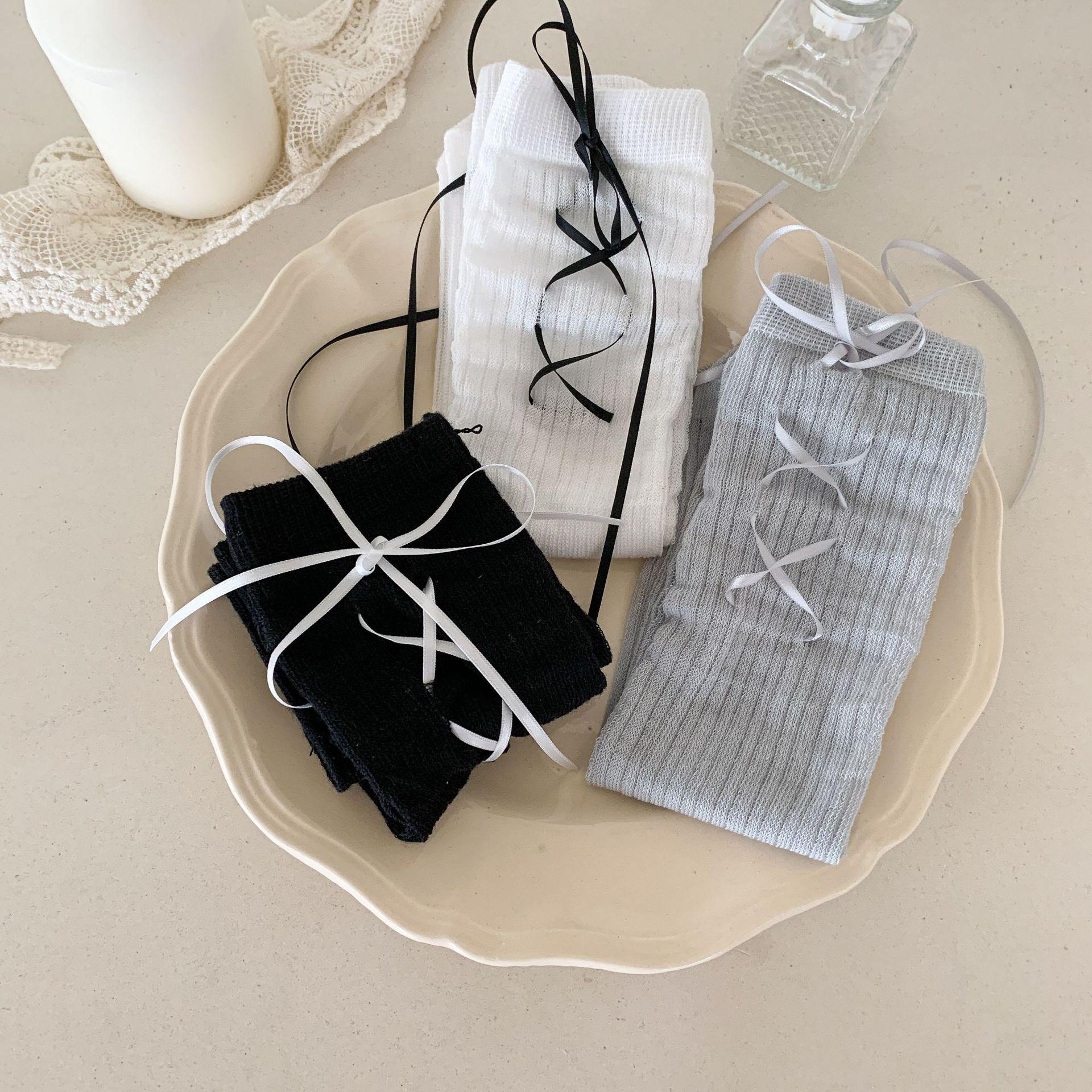 Black bow heelless socks, White bow heelless socks, Gray bow heelless socks