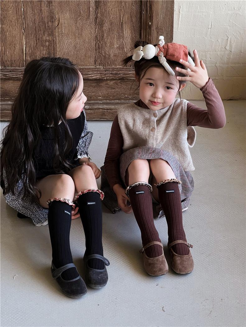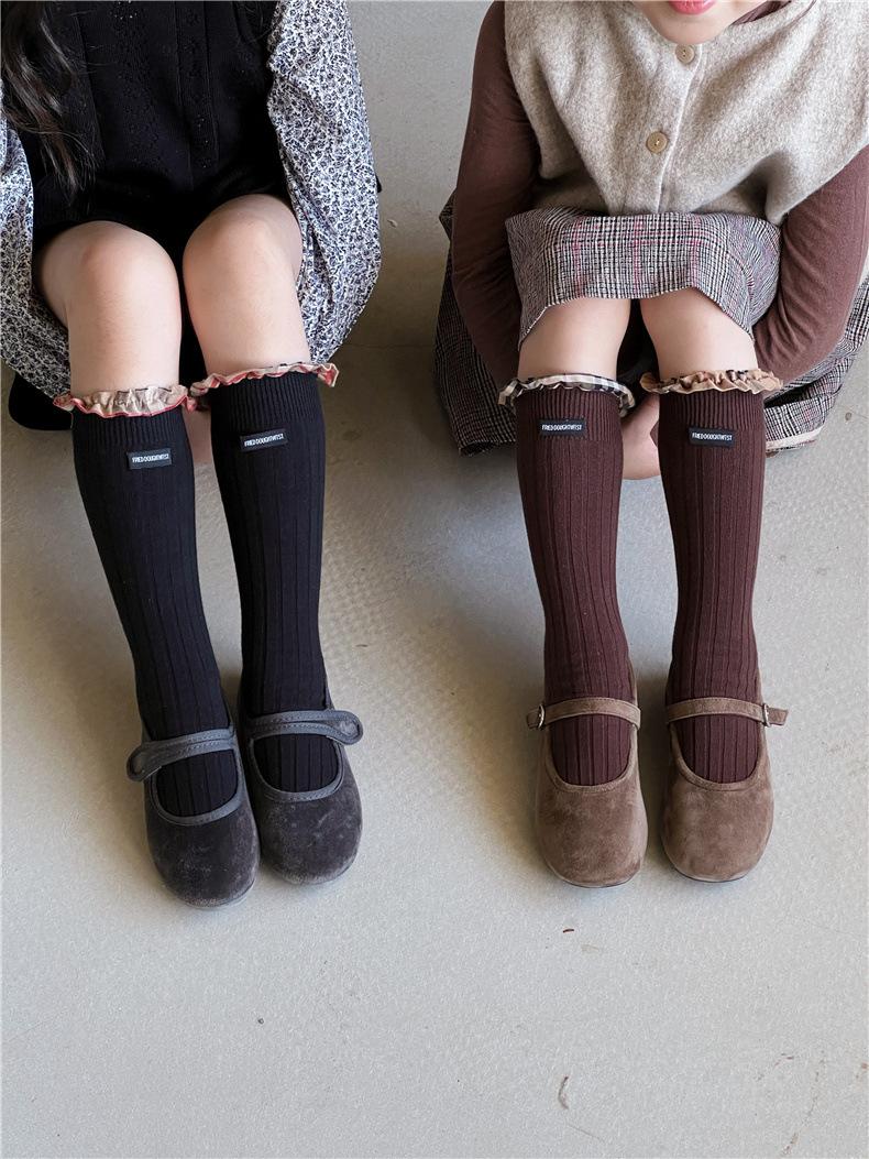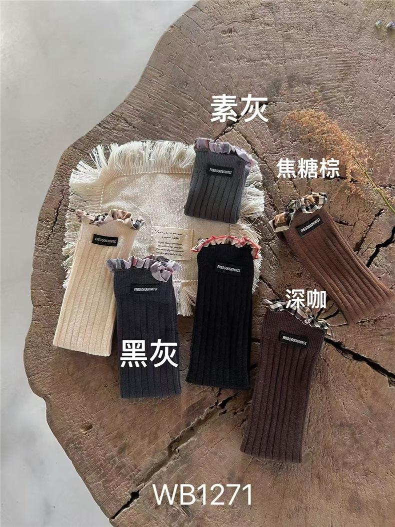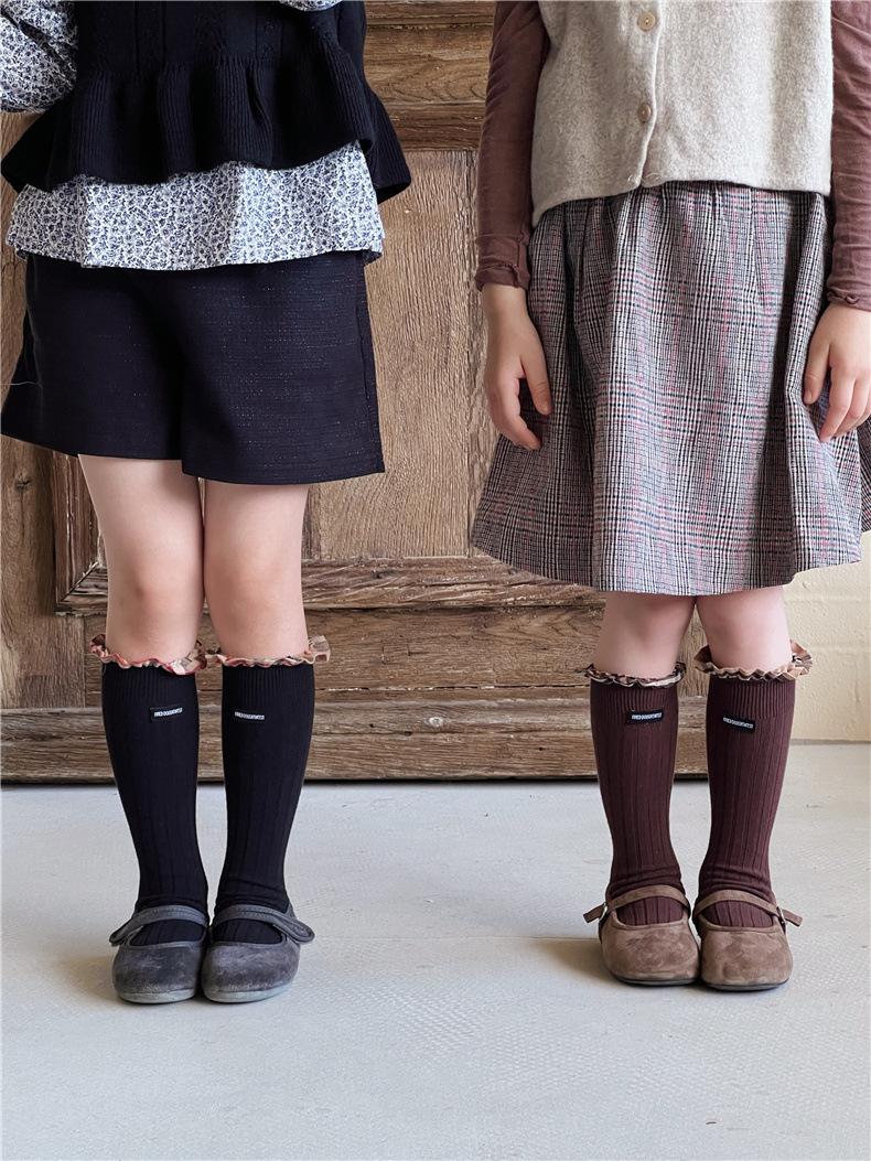 WB1271 Otoño Nuevos Calcetines para Niños Venta al por Mayor Calcetines de Media Caña con Encaje de Color Sólido para Bebé Calcetines Acanalados de Encaje