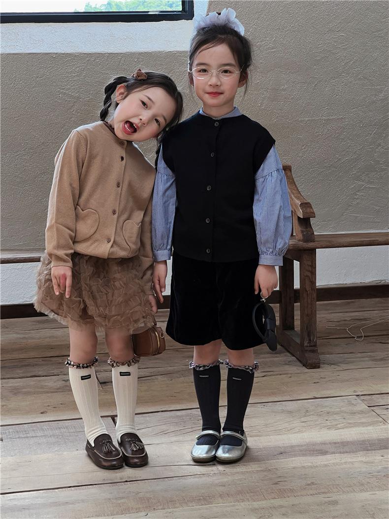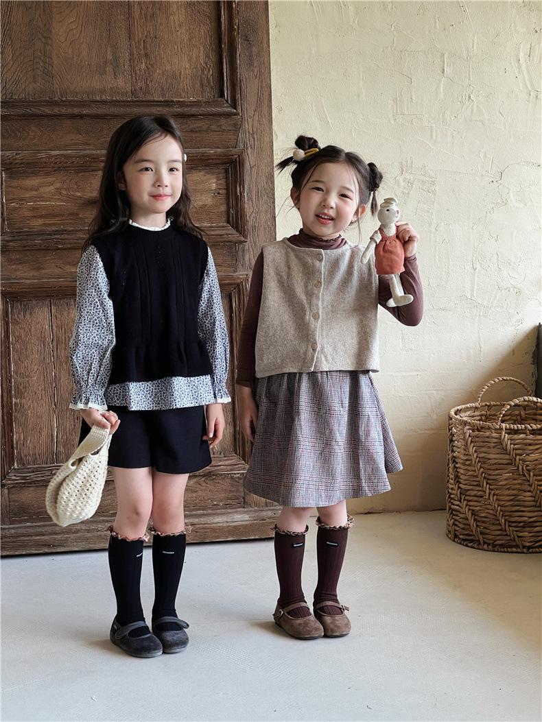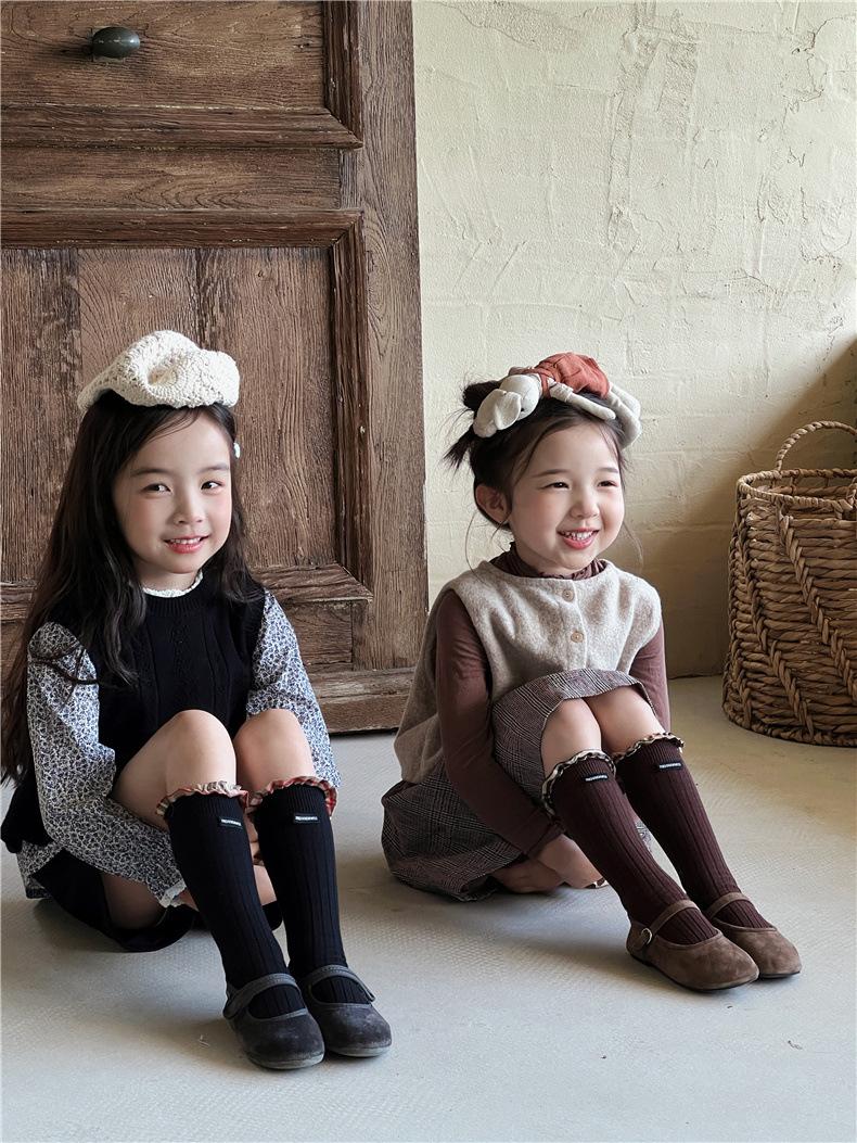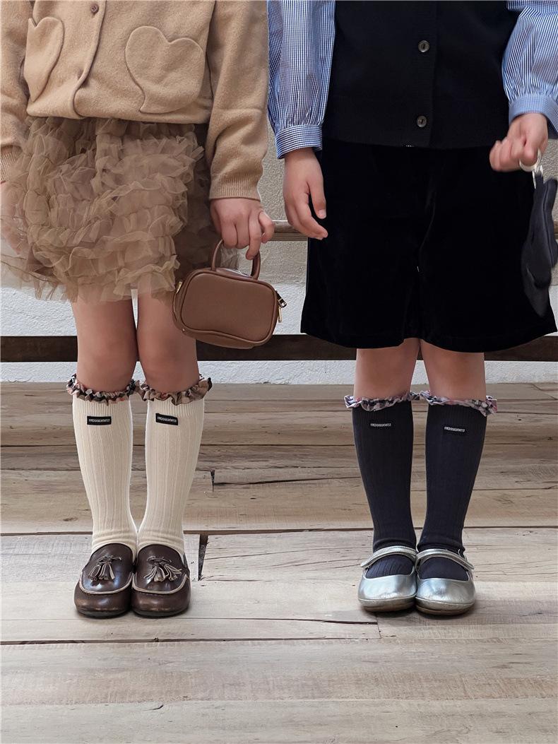 WB1271 Otoño Nuevos Calcetines para Niños Venta al por Mayor Calcetines de Media Caña con Encaje de Color Sólido para Bebé Calcetines Acanalados de Encaje