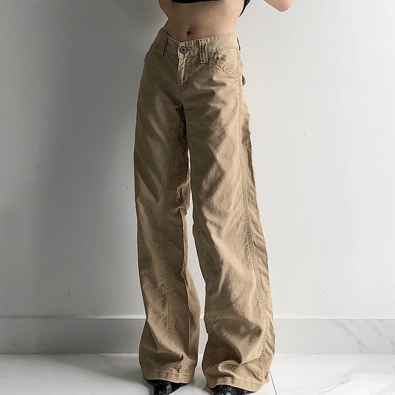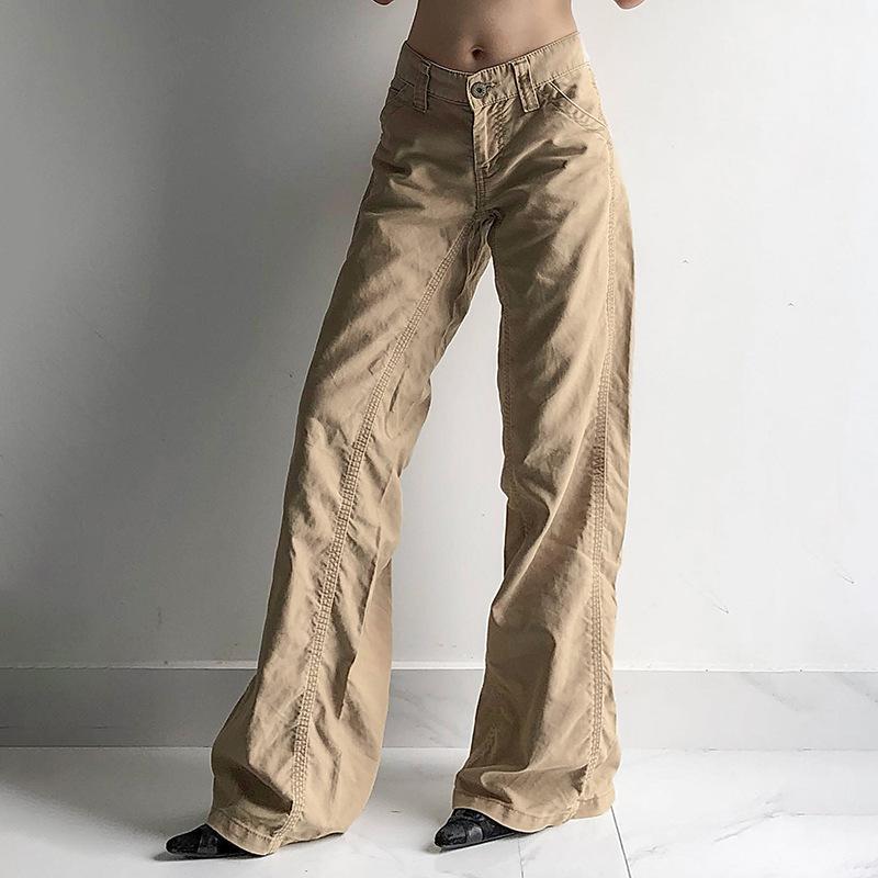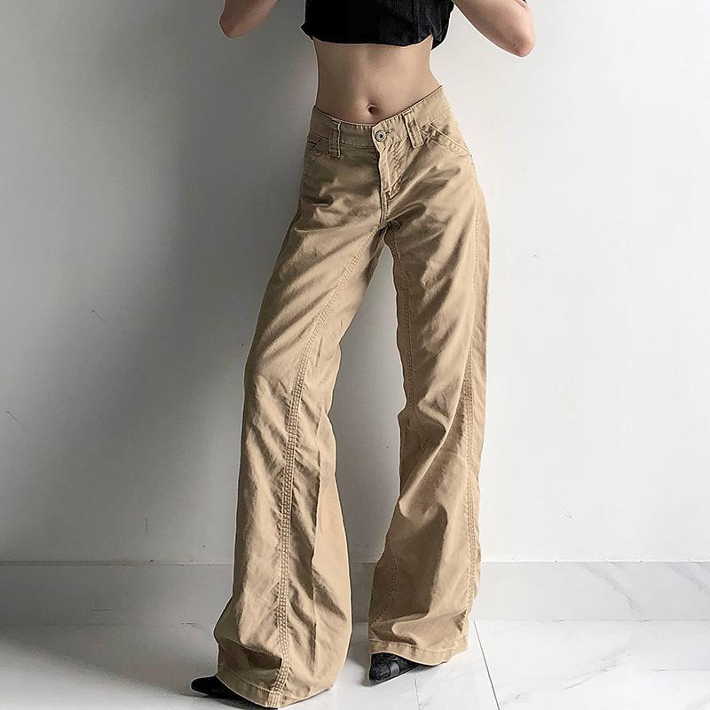 Pantalones Casuales Tejidos Plisados Retro Estilo Americano Moda Chica Hot Cintura Baja Pierna Recta Verano 2024 Pantalones Nuevos Estilo Antiguo
