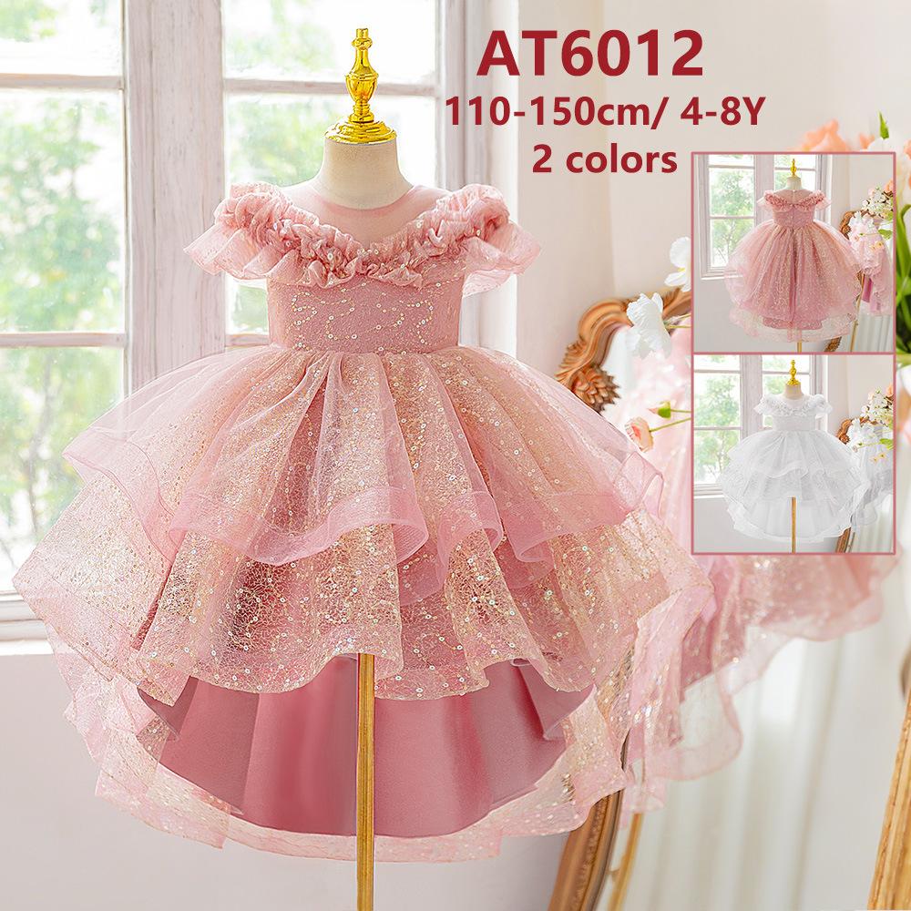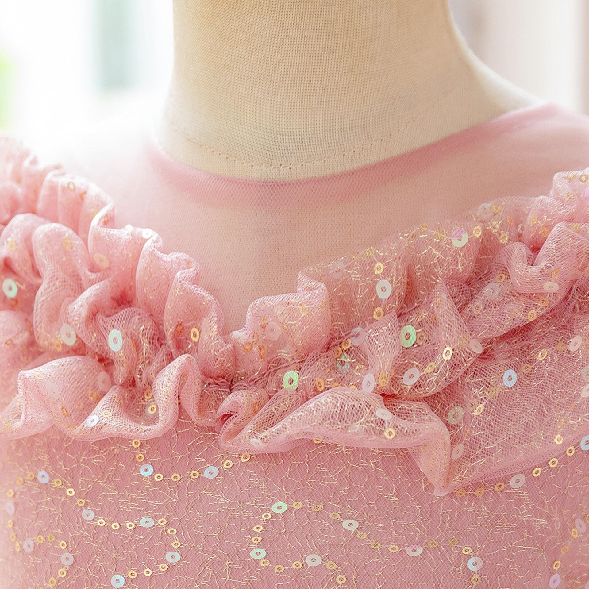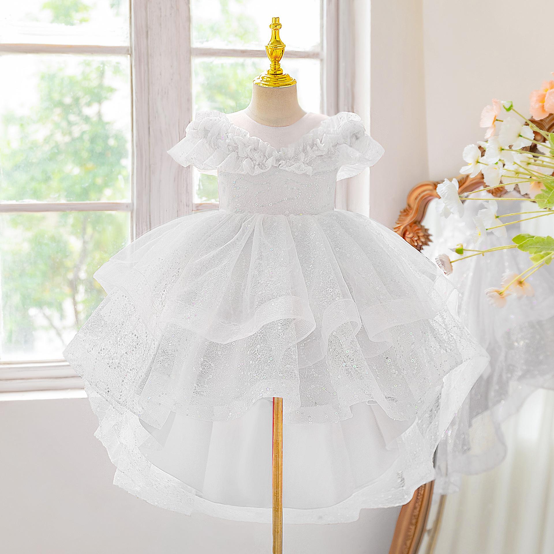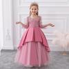 Vestido de noche nuevo para niños al por mayor transfronterizo, vestido de princesa con cola a la moda, falda abullonada de malla, vestido de noche para niños para piano, niña de las flores
