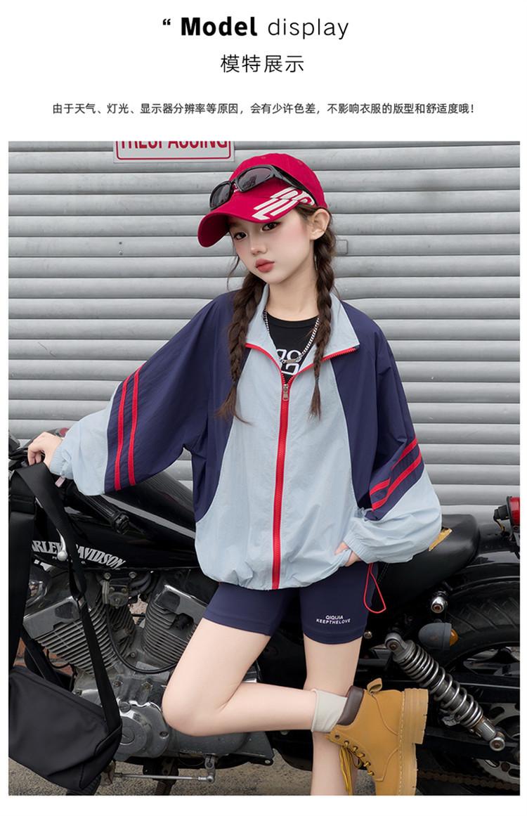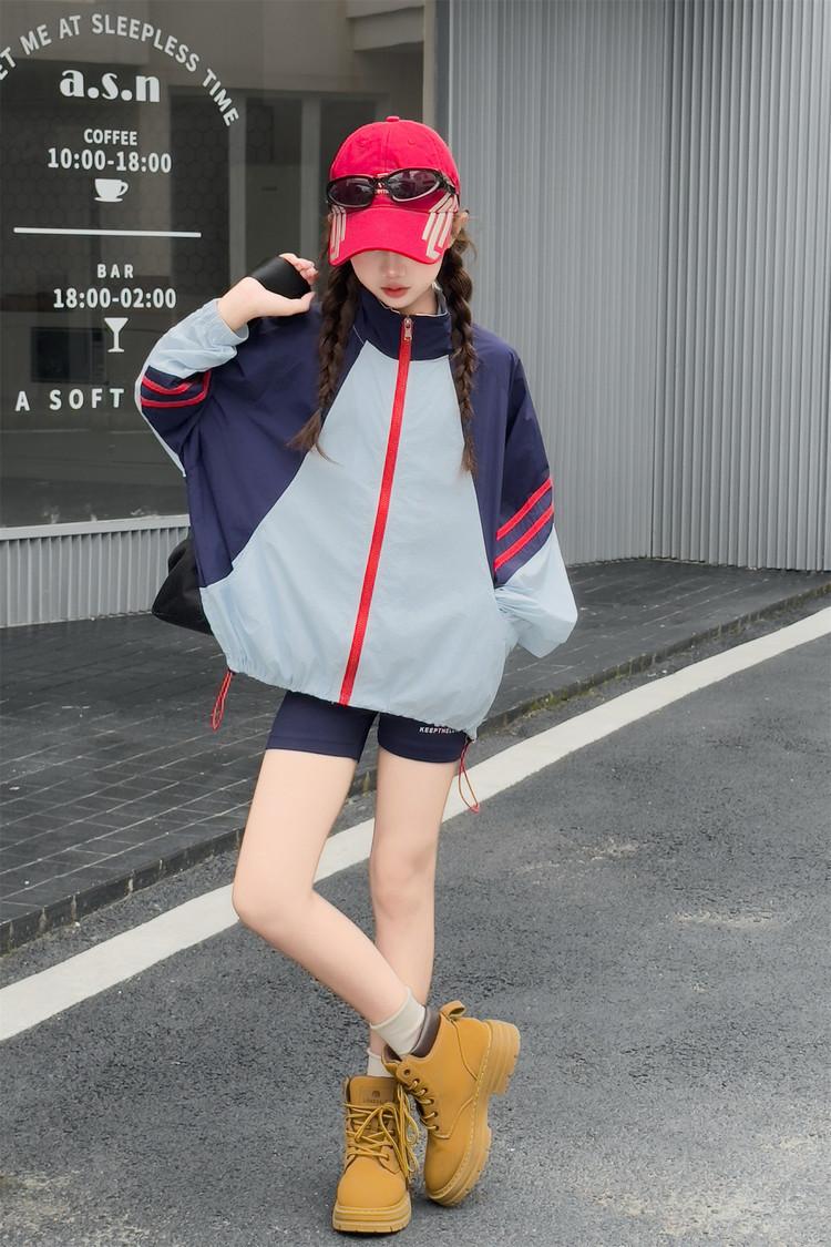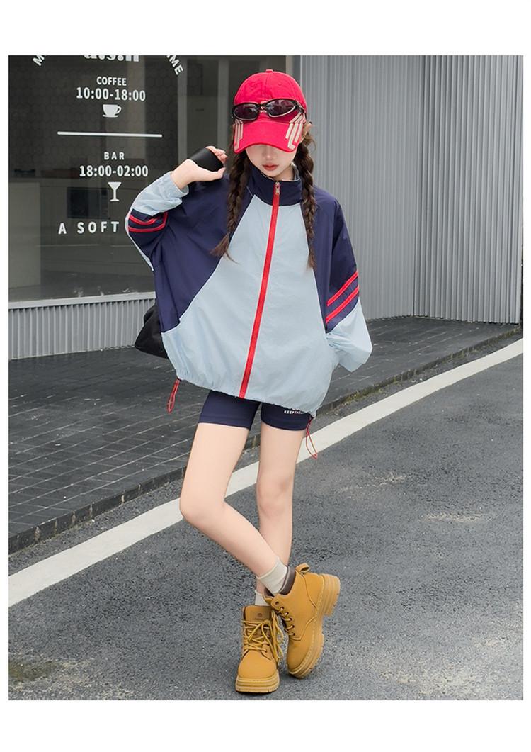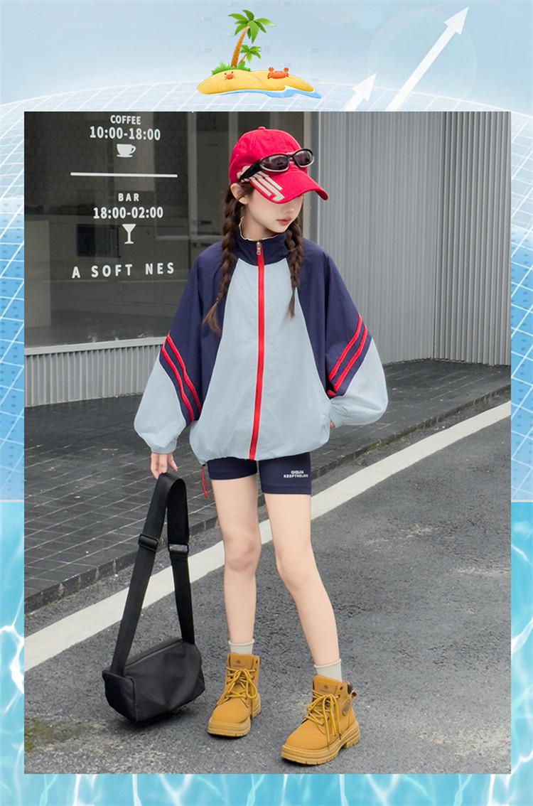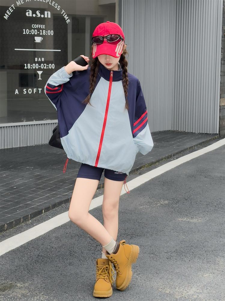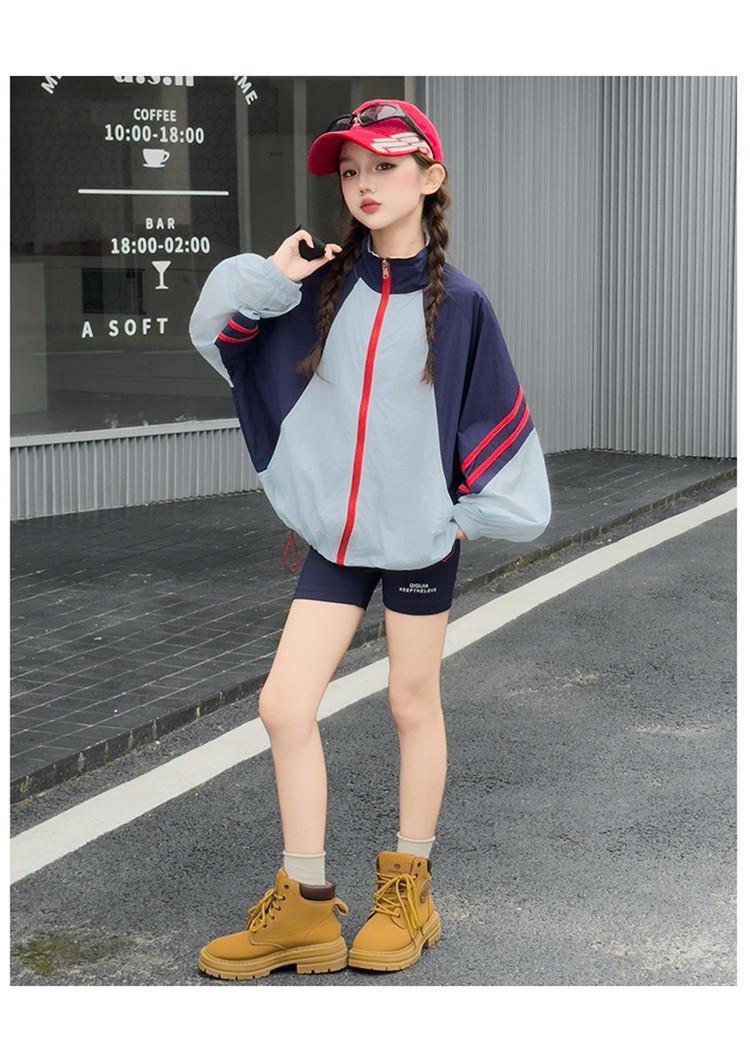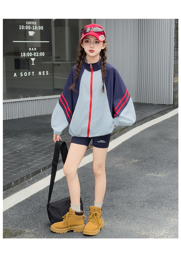 Chaqueta Fina de Verano a la Moda para Niñas, Talla Mediana y Grande para Niñas, Ropa con Protección Solar de Cuello Alto con Bloques de Color