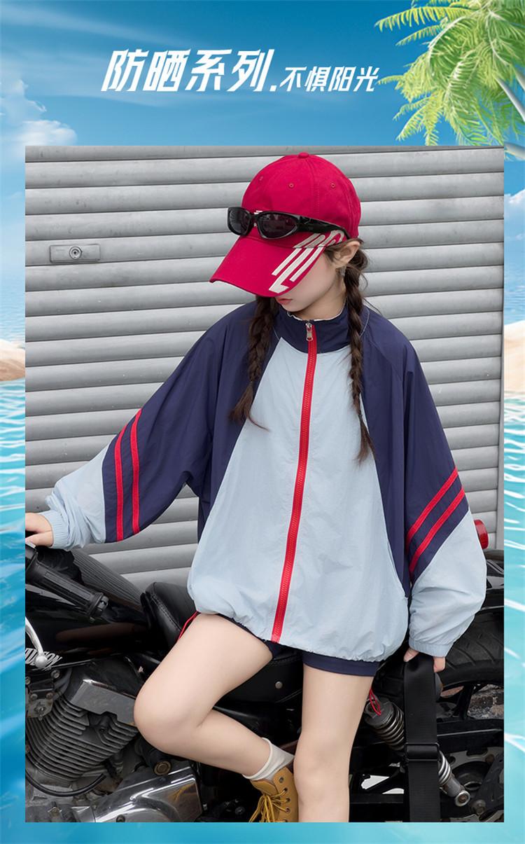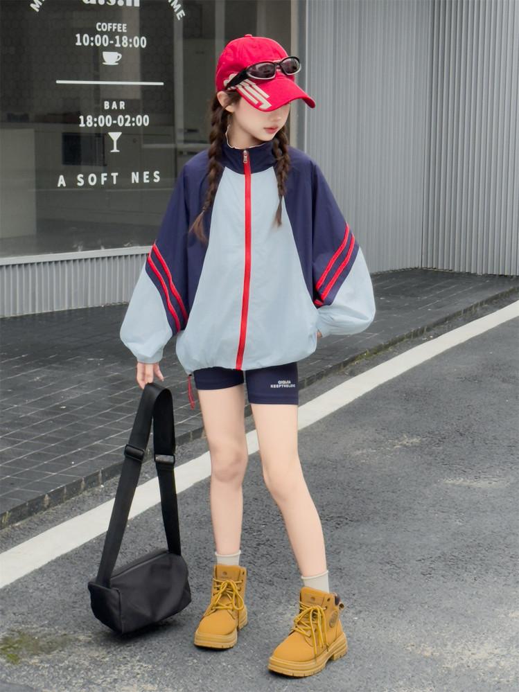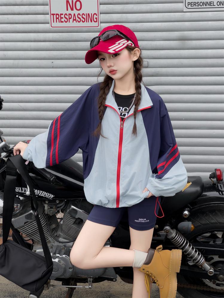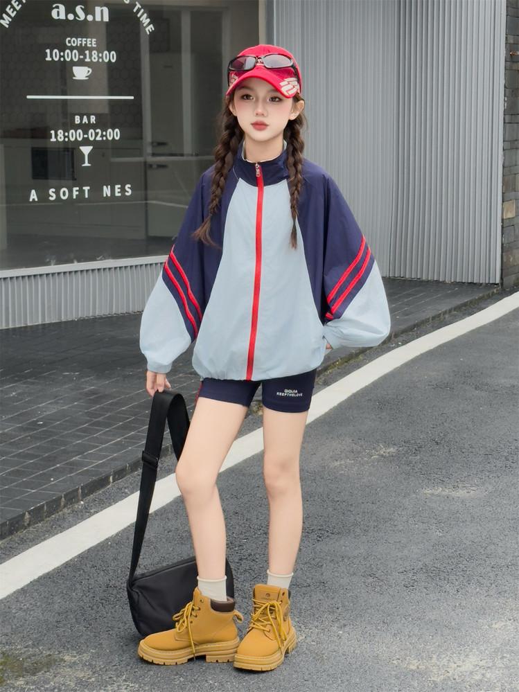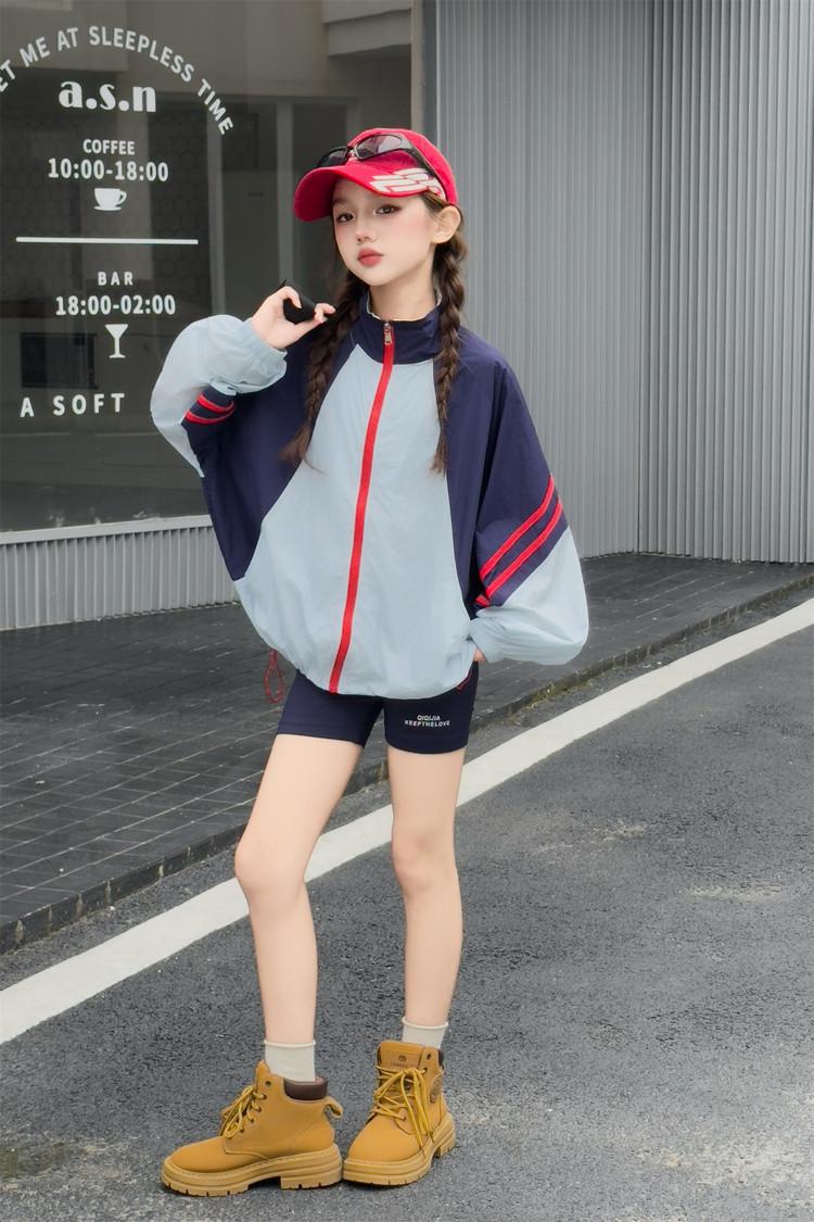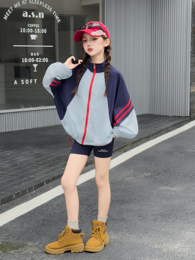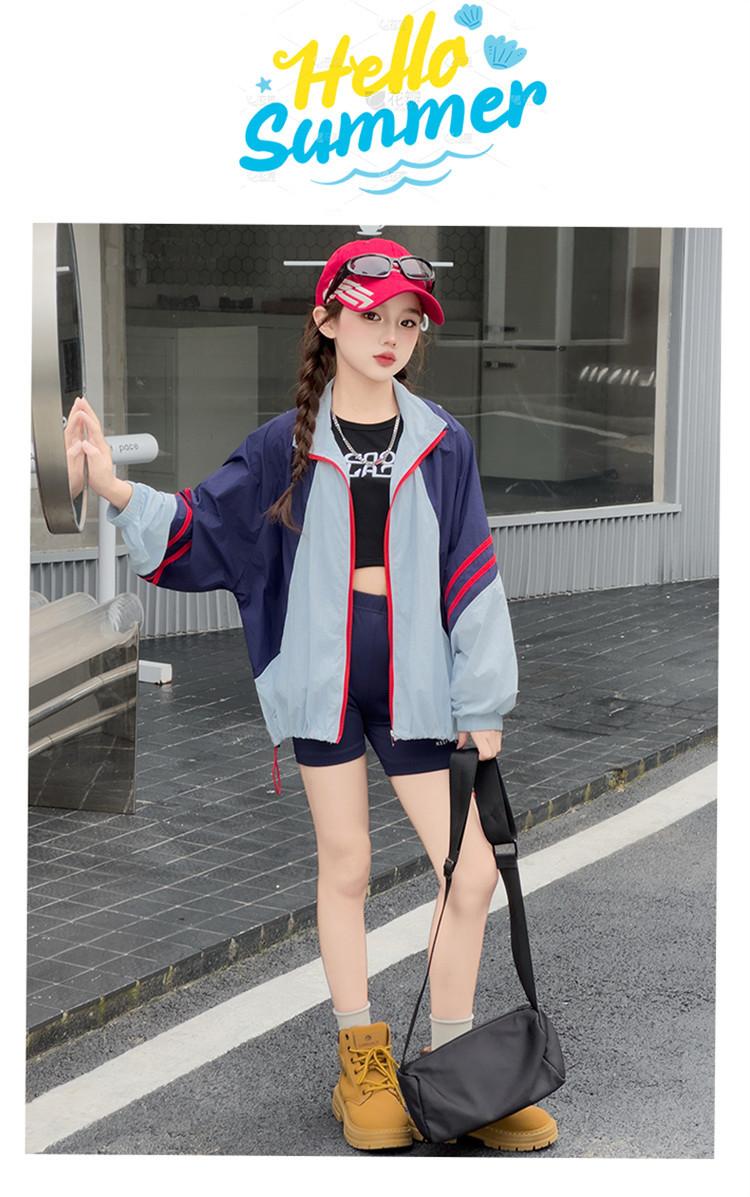 Chaqueta Fina de Verano a la Moda para Niñas, Talla Mediana y Grande para Niñas, Ropa con Protección Solar de Cuello Alto con Bloques de Color