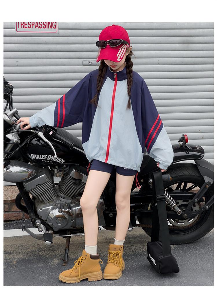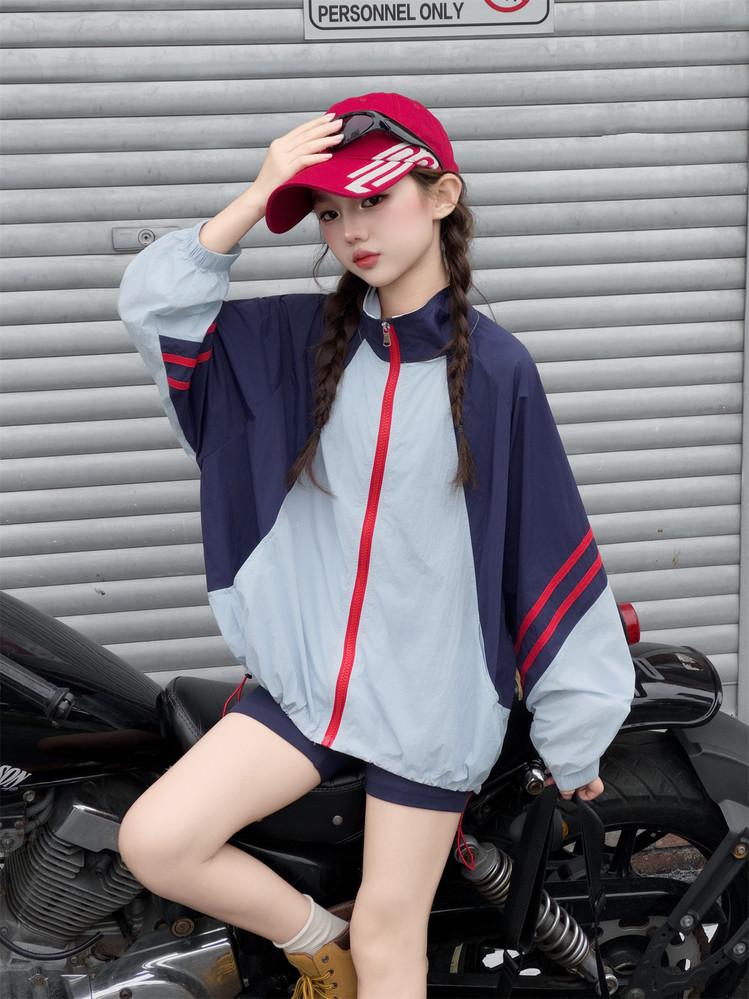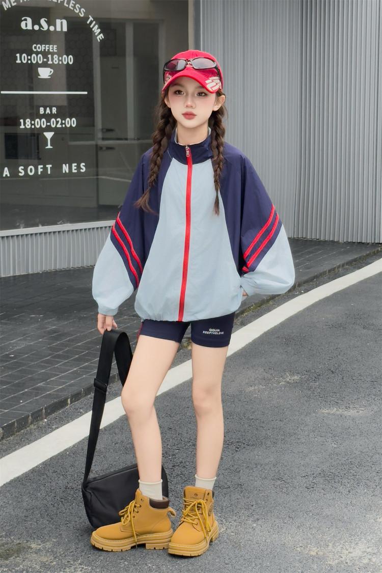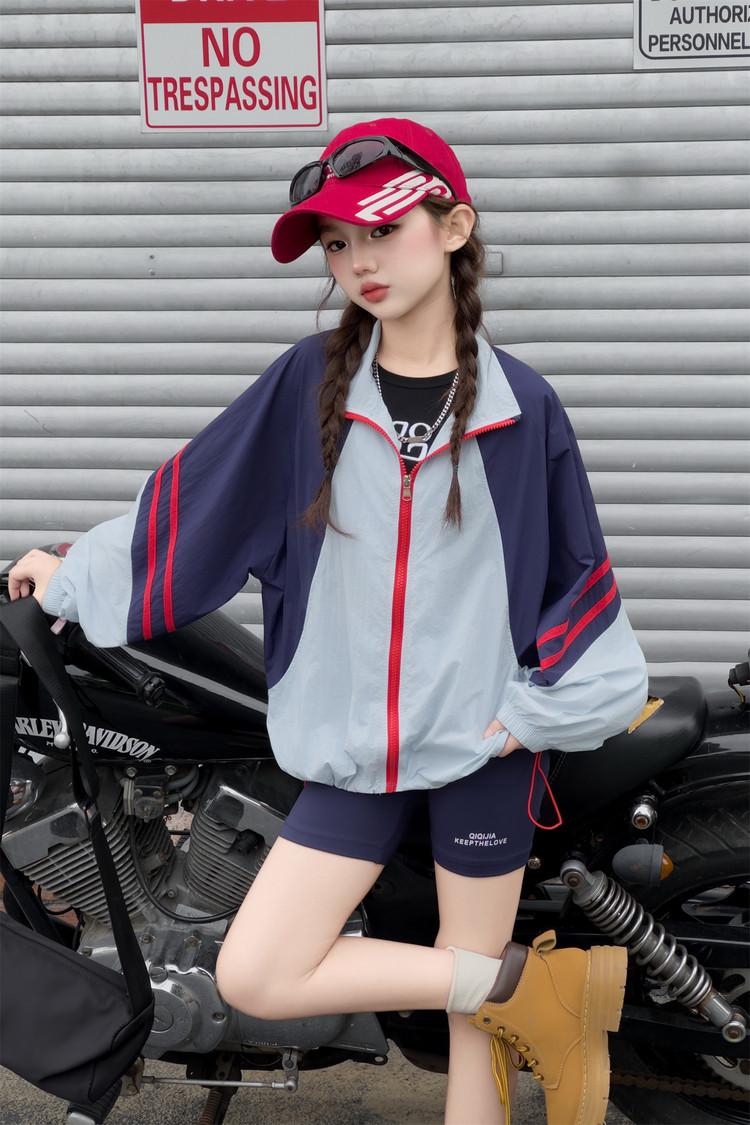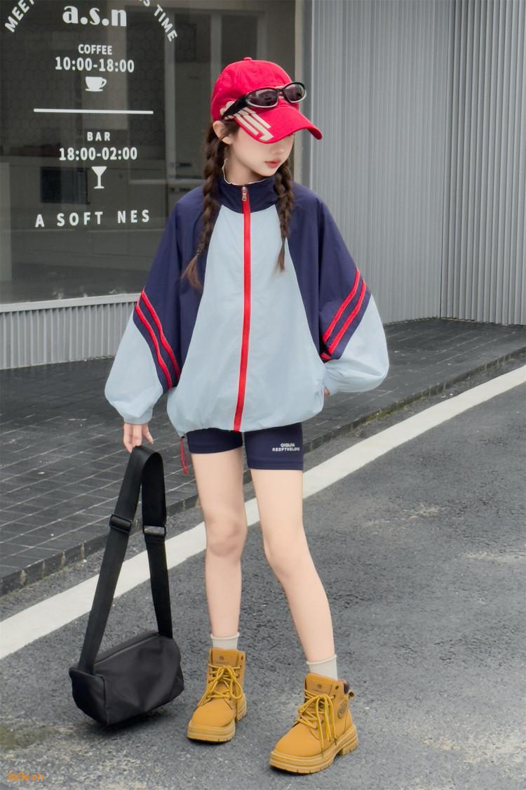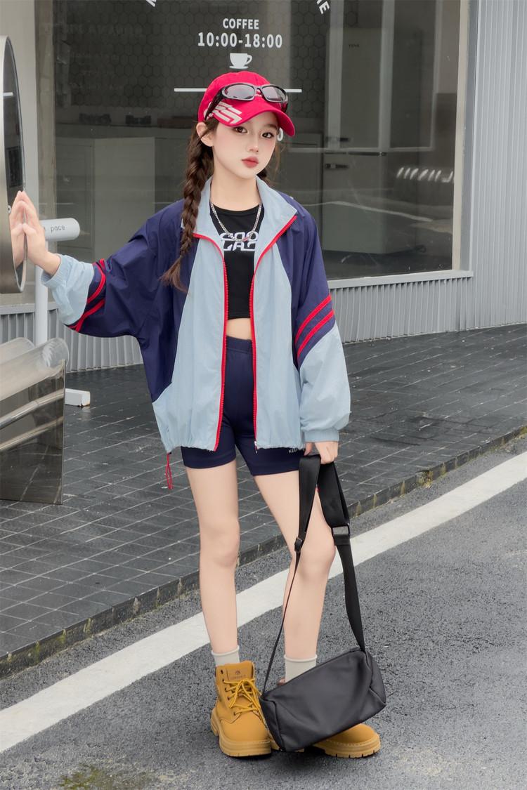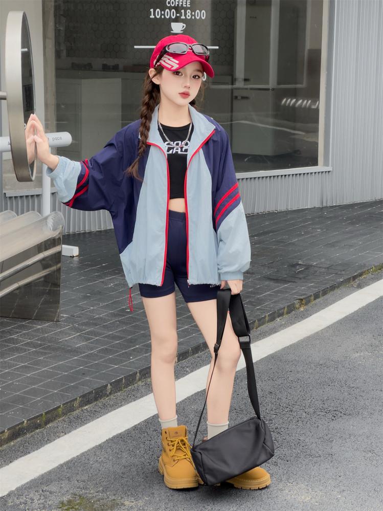 Chaqueta Fina de Verano a la Moda para Niñas, Talla Mediana y Grande para Niñas, Ropa con Protección Solar de Cuello Alto con Bloques de Color