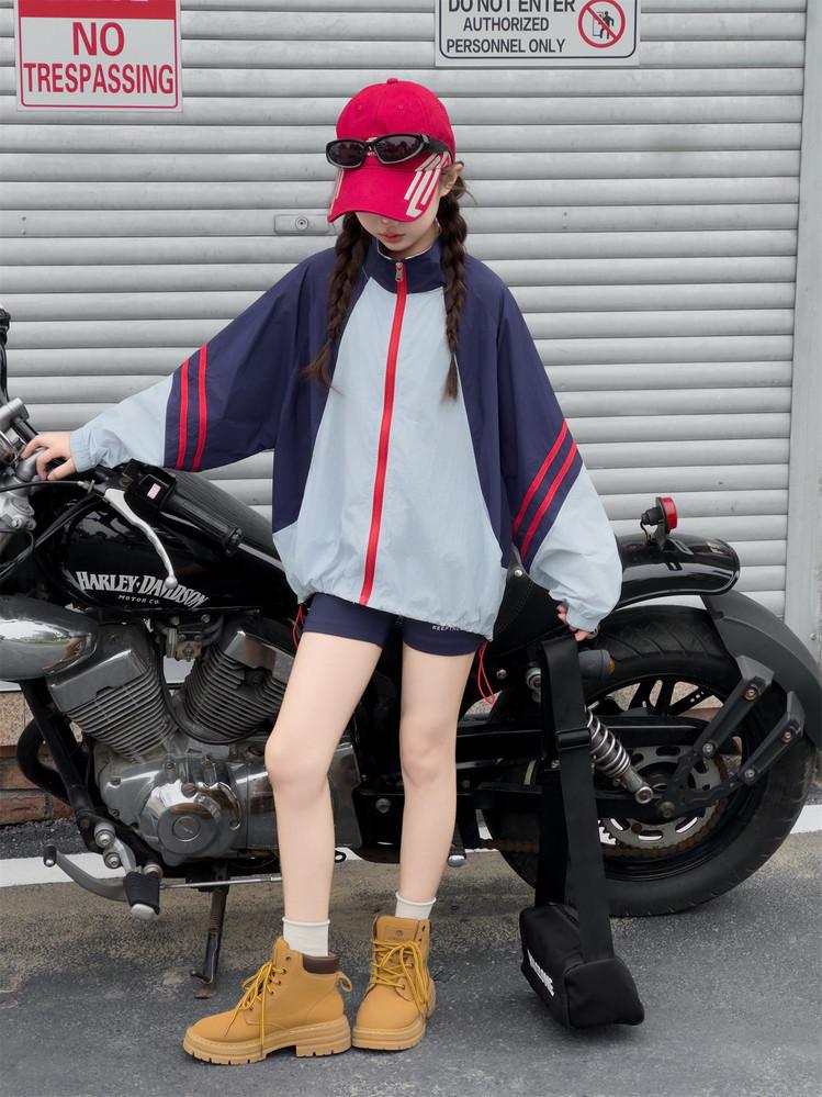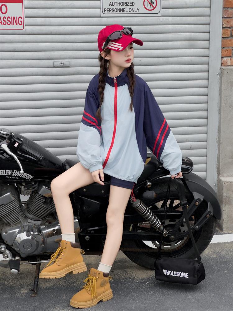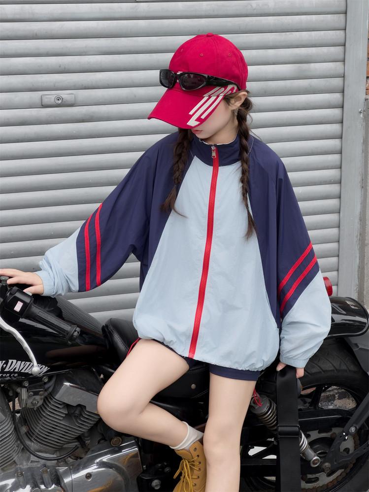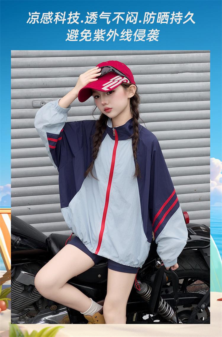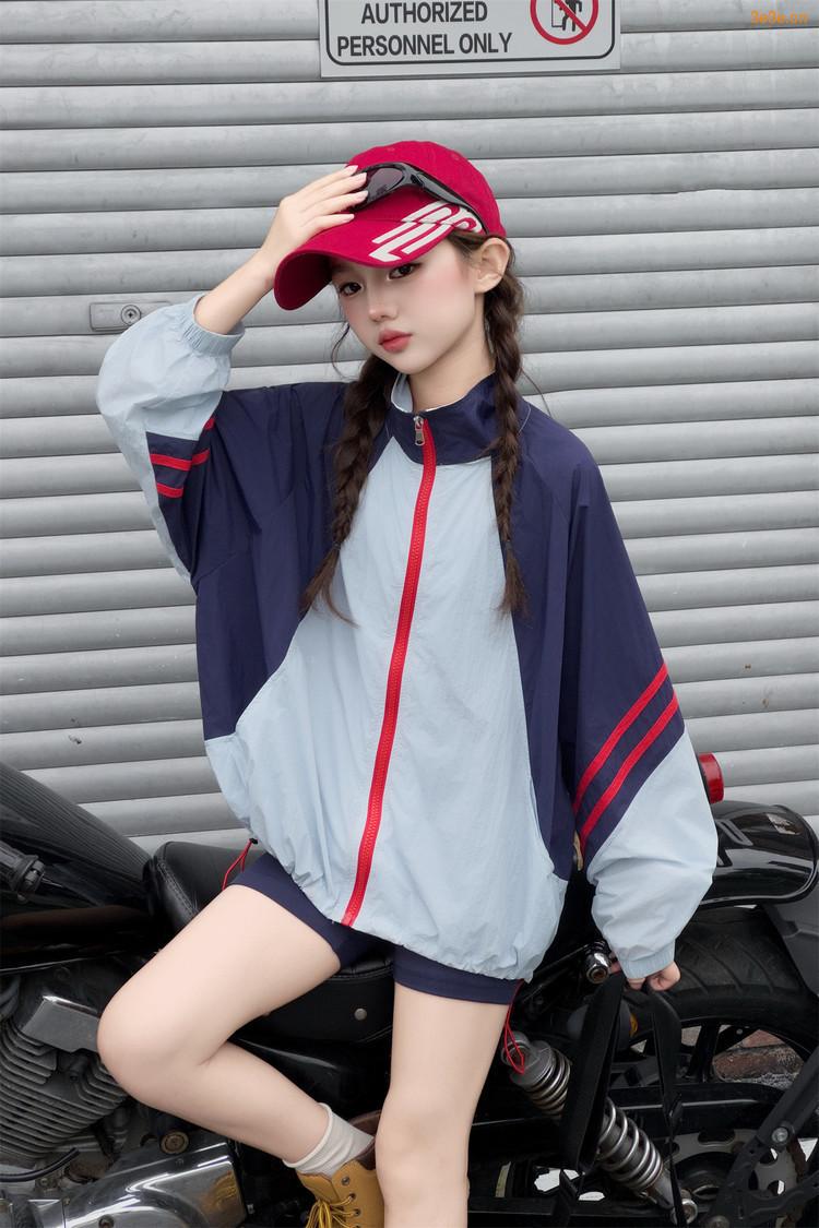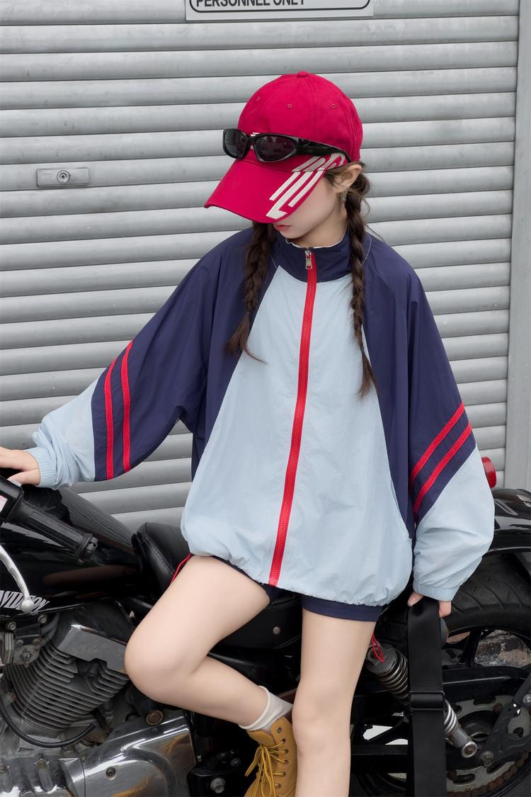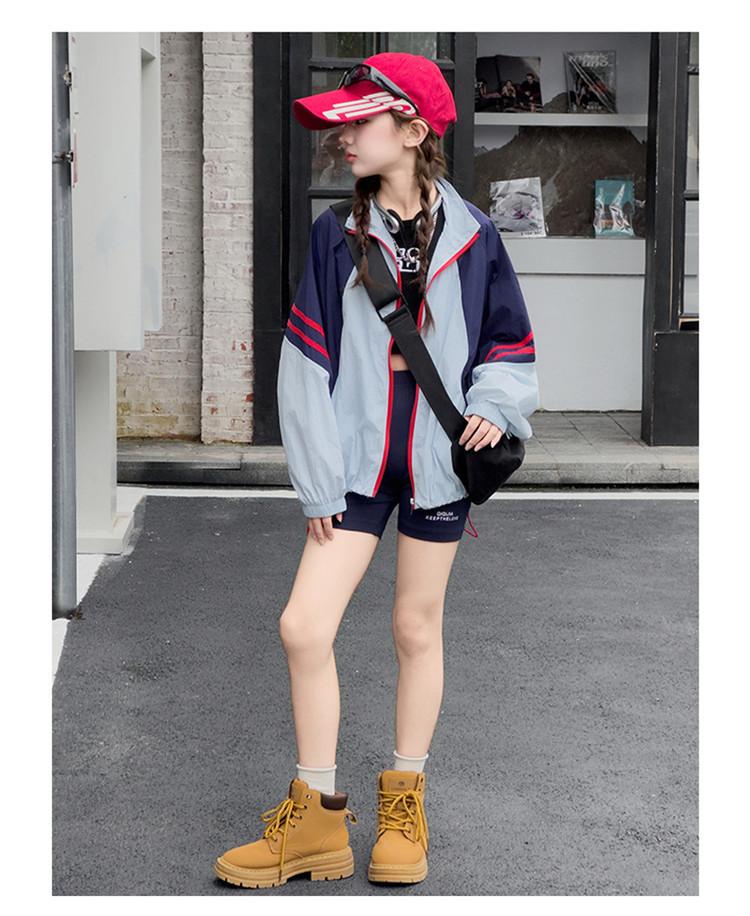 Chaqueta Fina de Verano a la Moda para Niñas, Talla Mediana y Grande para Niñas, Ropa con Protección Solar de Cuello Alto con Bloques de Color