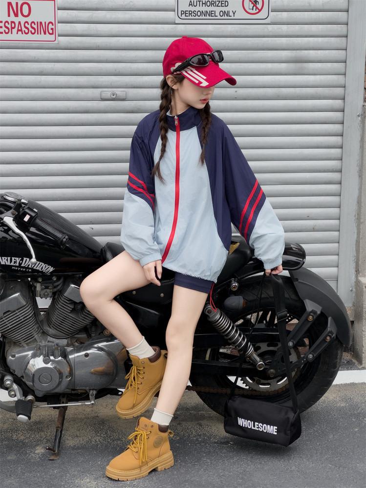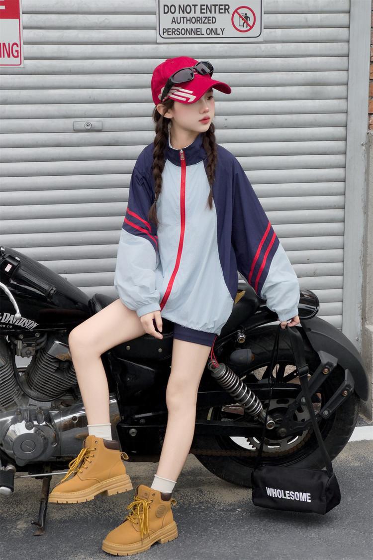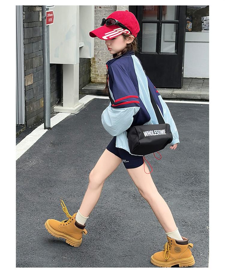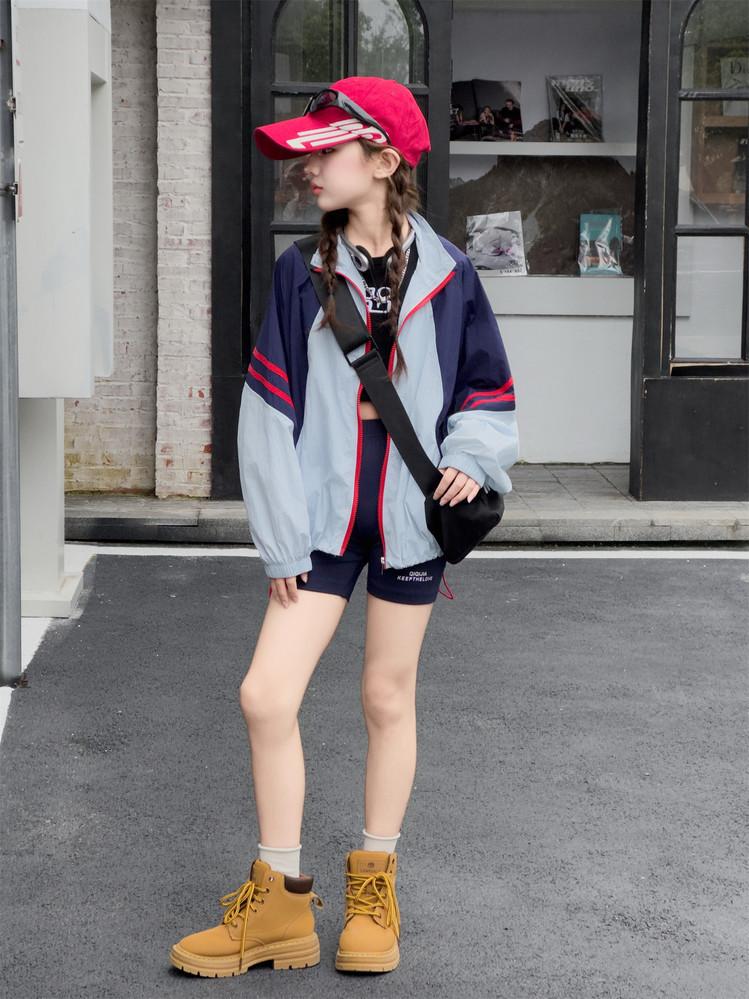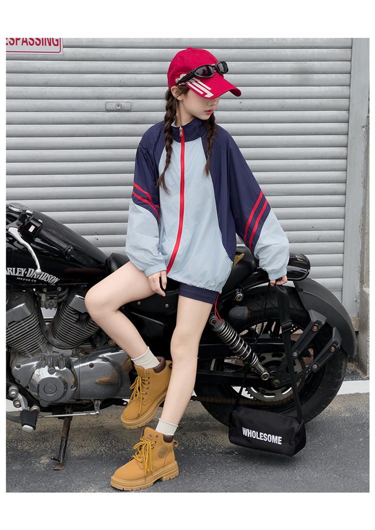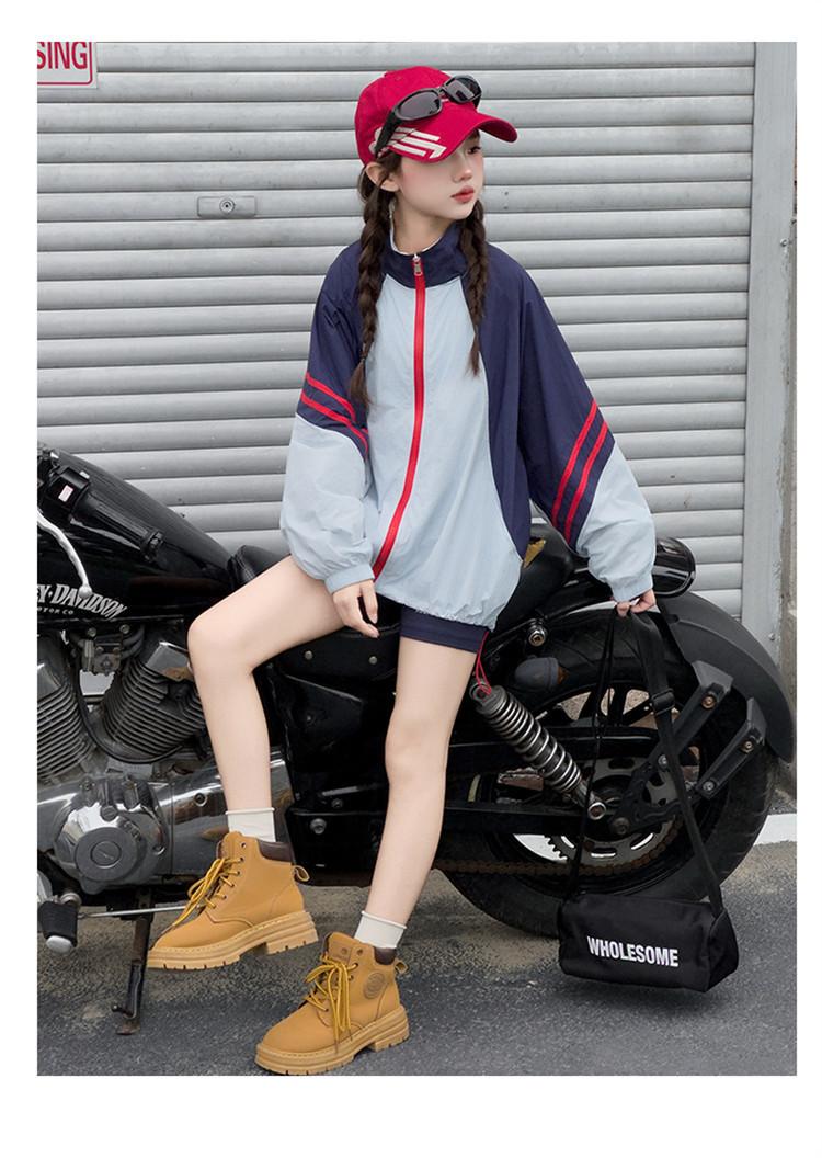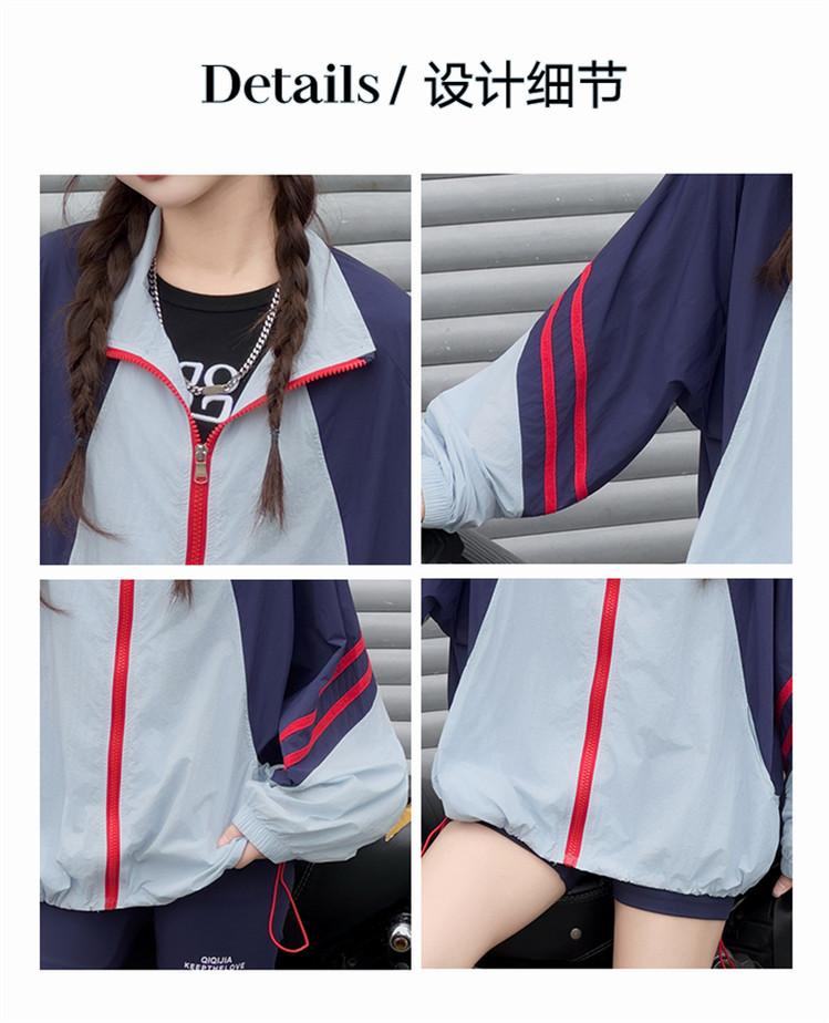 Chaqueta Fina de Verano a la Moda para Niñas, Talla Mediana y Grande para Niñas, Ropa con Protección Solar de Cuello Alto con Bloques de Color
