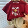 Camiseta de Manga Corta de Algodón Puro para Niños y Niñas, Estilo Nuevo de Verano, Estilo Coreano Holgada y Versátil Top Rojo