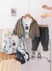 Traje de primavera y otoño para niños de comercio exterior 2024 nuevo y guapo para bebés de 0 a 5 años, traje de suéter de dinosaurio con solapa
