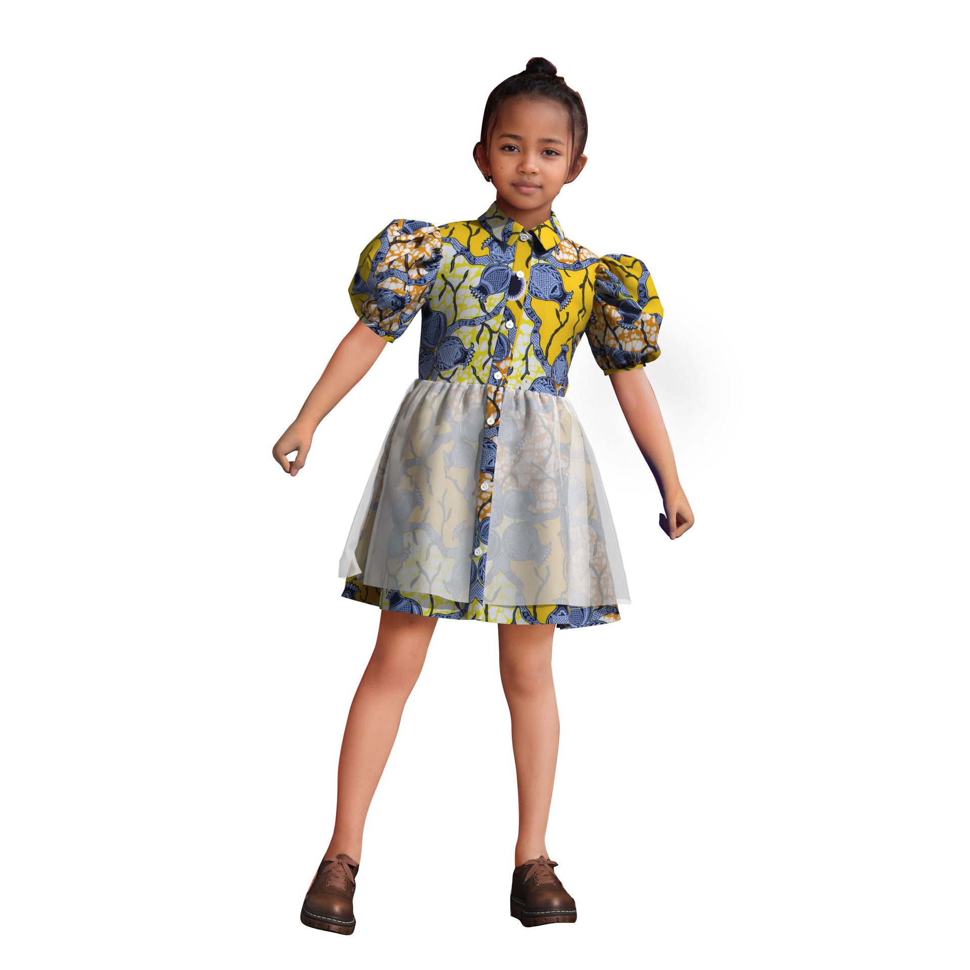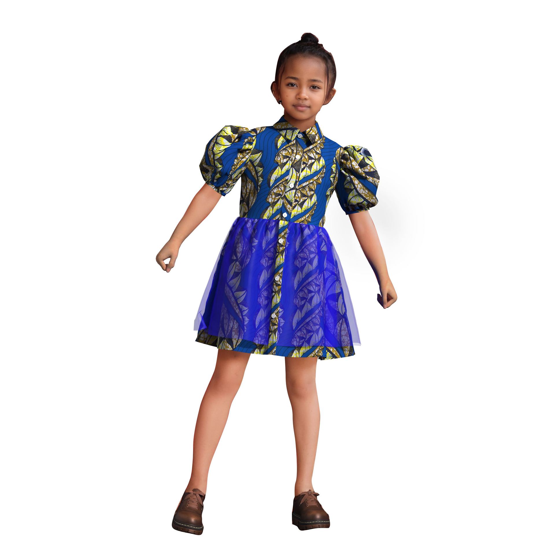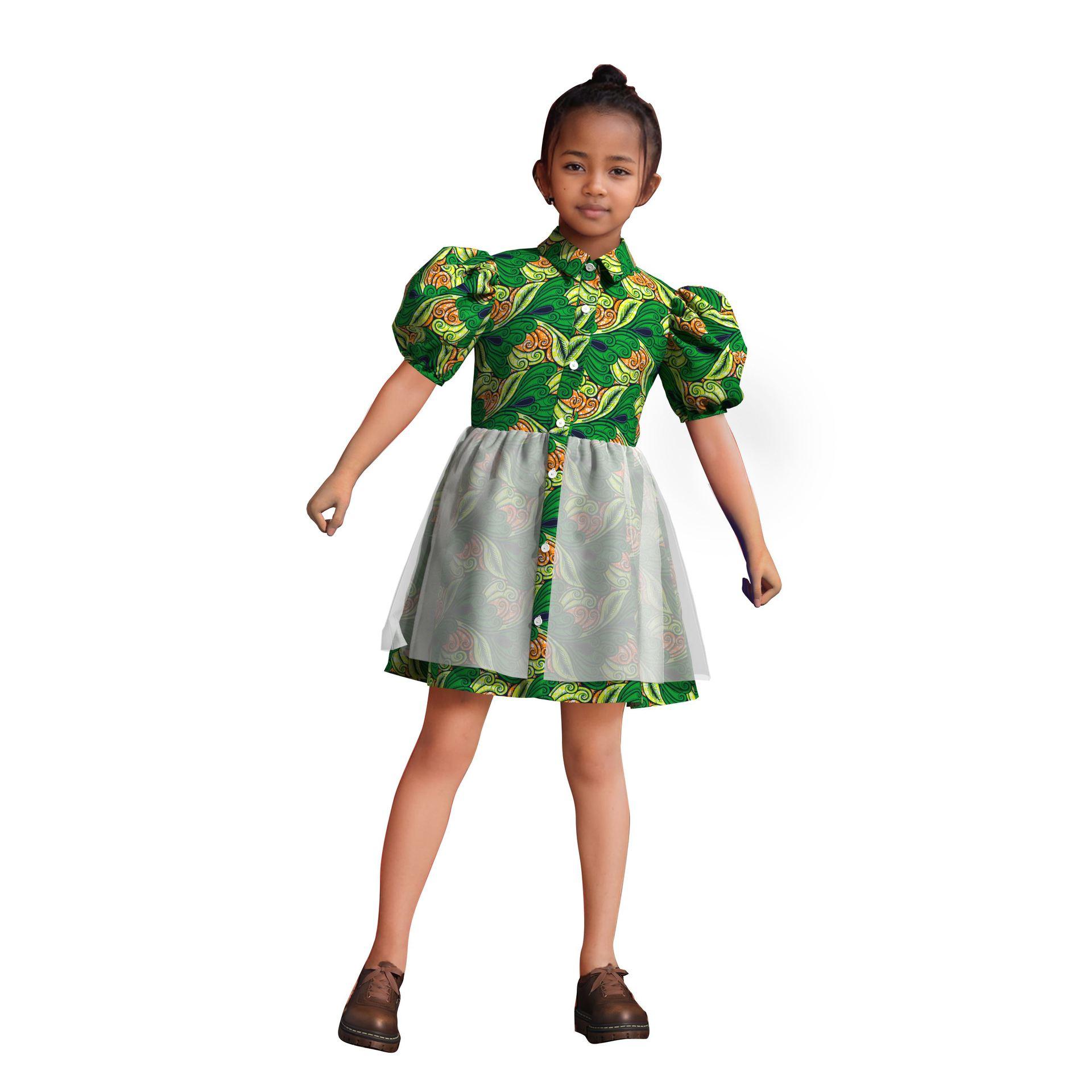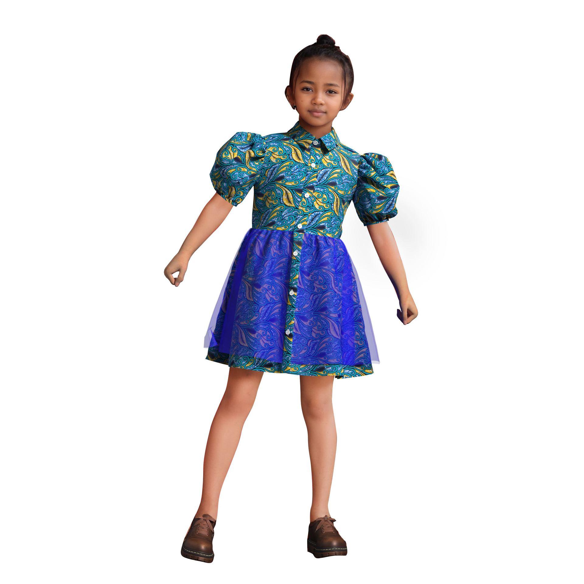 Vestido de Niña de Algodón con Estampado de Cera Africana Falda de Tul Comercio Electrónico Transfronterizo AliExpress Amazon Fuente En Stock
