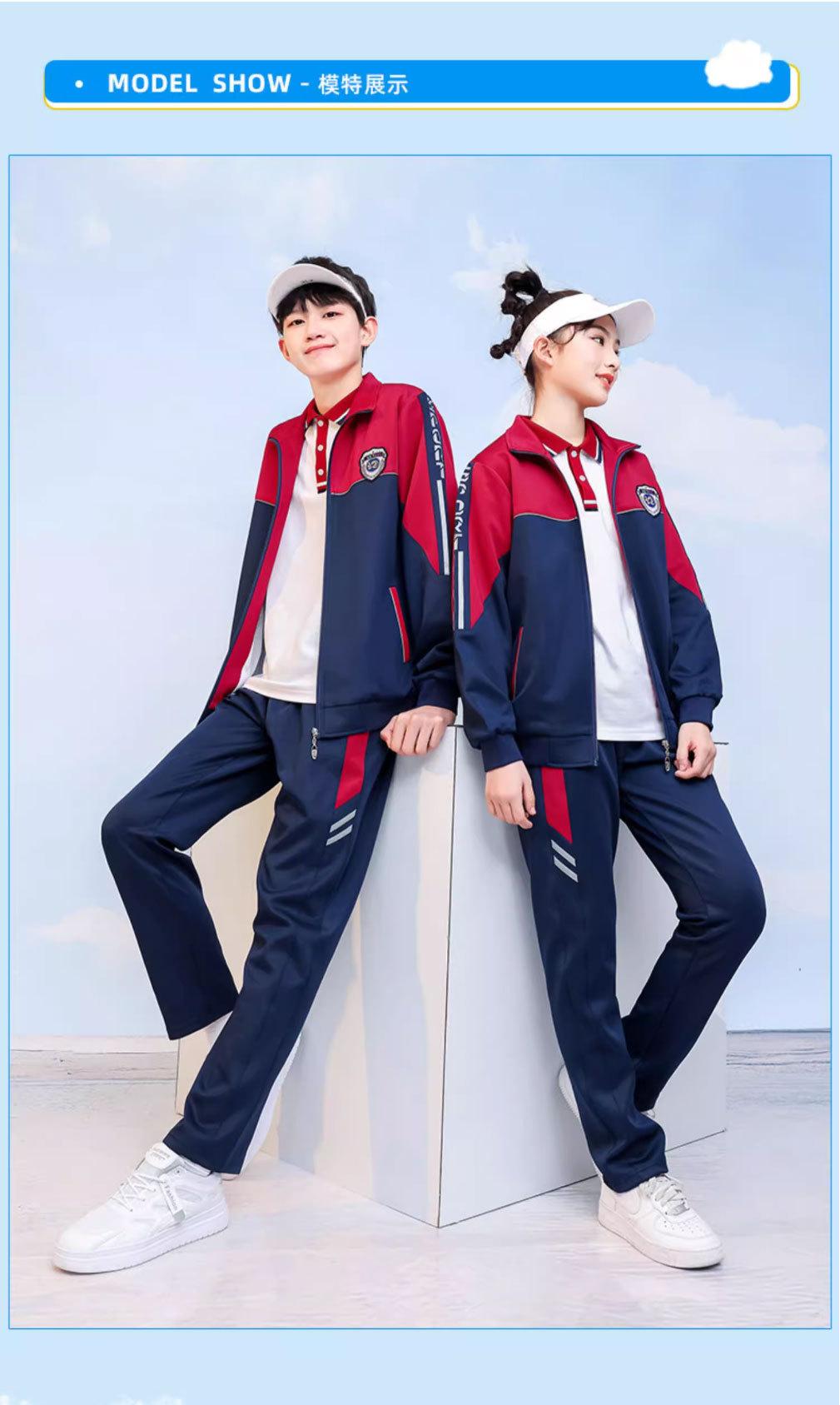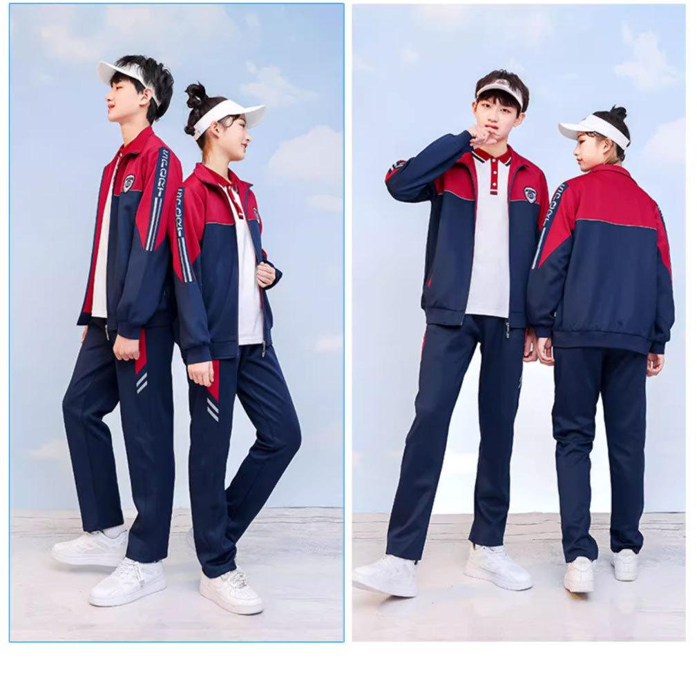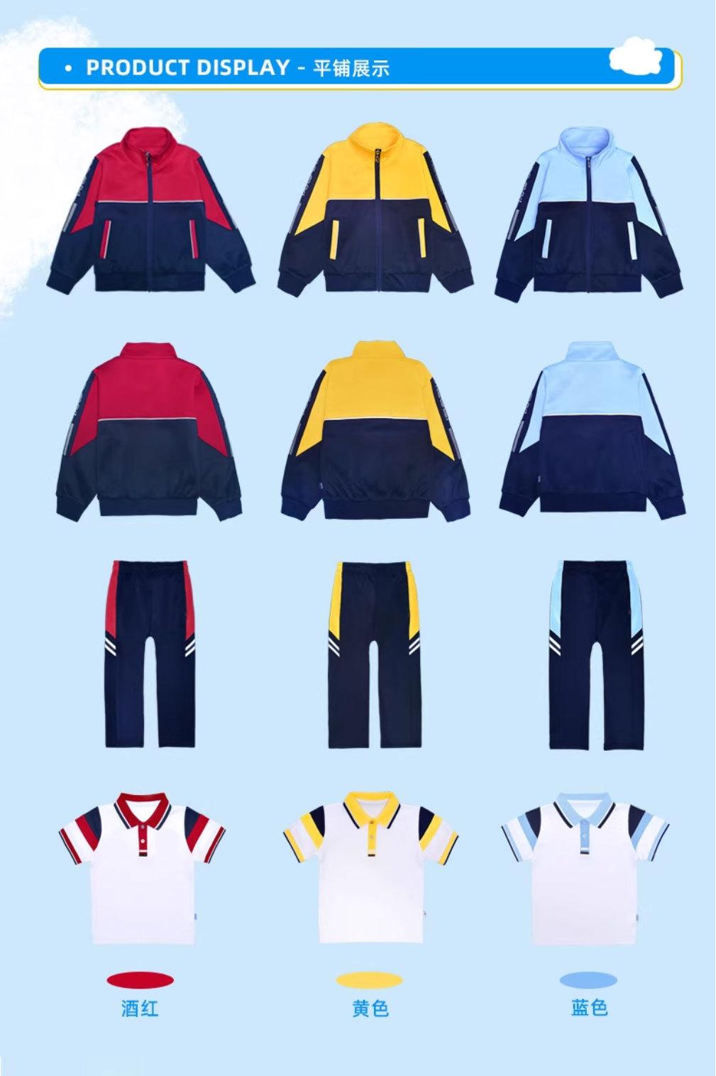 Uniforme escolar de primaria chaqueta de manga larga de primavera y otoño conjunto deportivo de tres piezas para estudiante de secundaria uniforme de clase rojo amarillo azul estilo británico