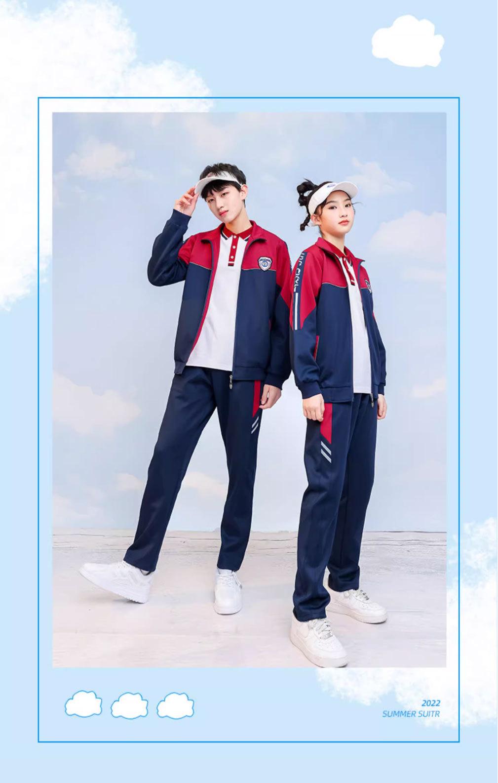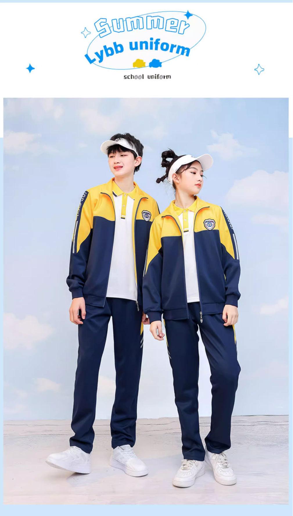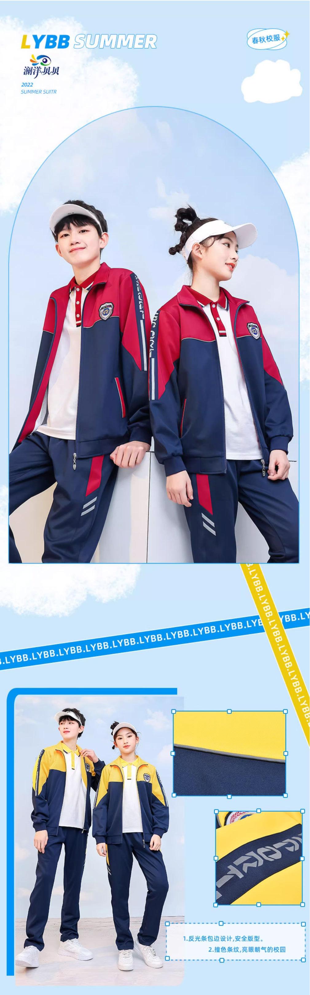 Uniforme escolar de primaria chaqueta de manga larga de primavera y otoño conjunto deportivo de tres piezas para estudiante de secundaria uniforme de clase rojo amarillo azul estilo británico
