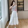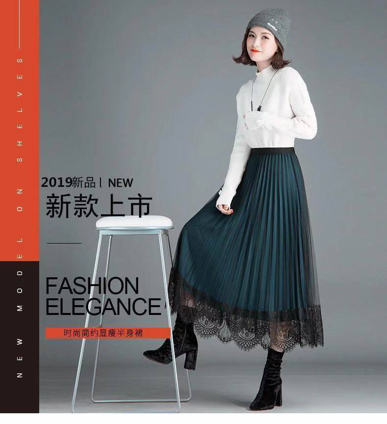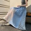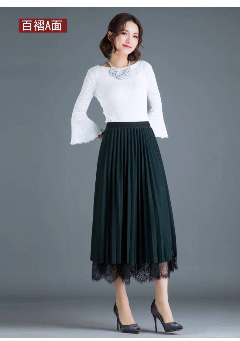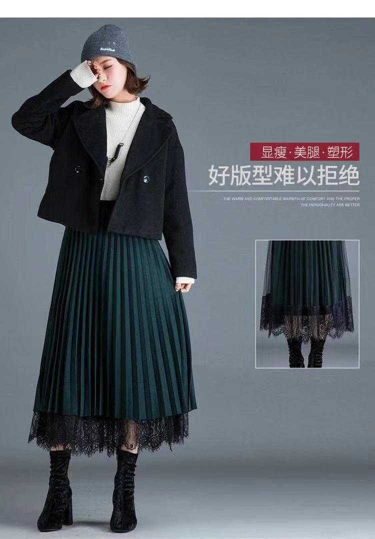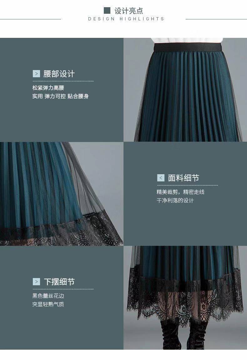 [Reversible] Falda Otoño e Invierno para Mujer Nueva Talla Grande Cintura Alta Encaje Falda Plisada Media Longitud Ajustada Falda de Malla