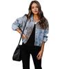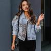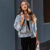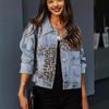 Nuevo Transfronterizo Amazon Chaqueta de Mezclilla para Mujer Manga Larga Estación Independiente Chaqueta Europea y Americana para Mujer Top con Empalme de Estampado de Leopardo
