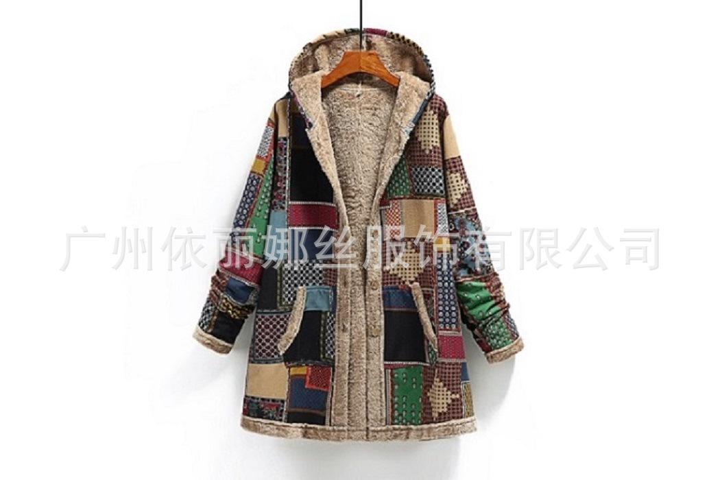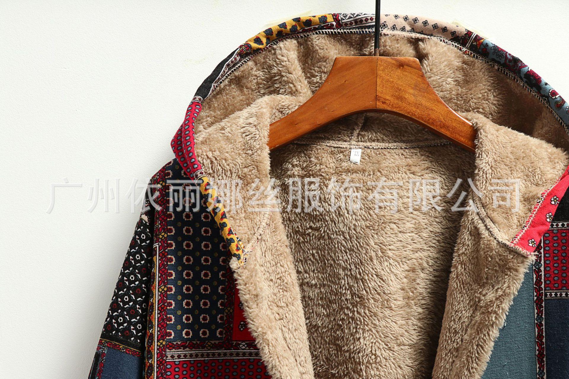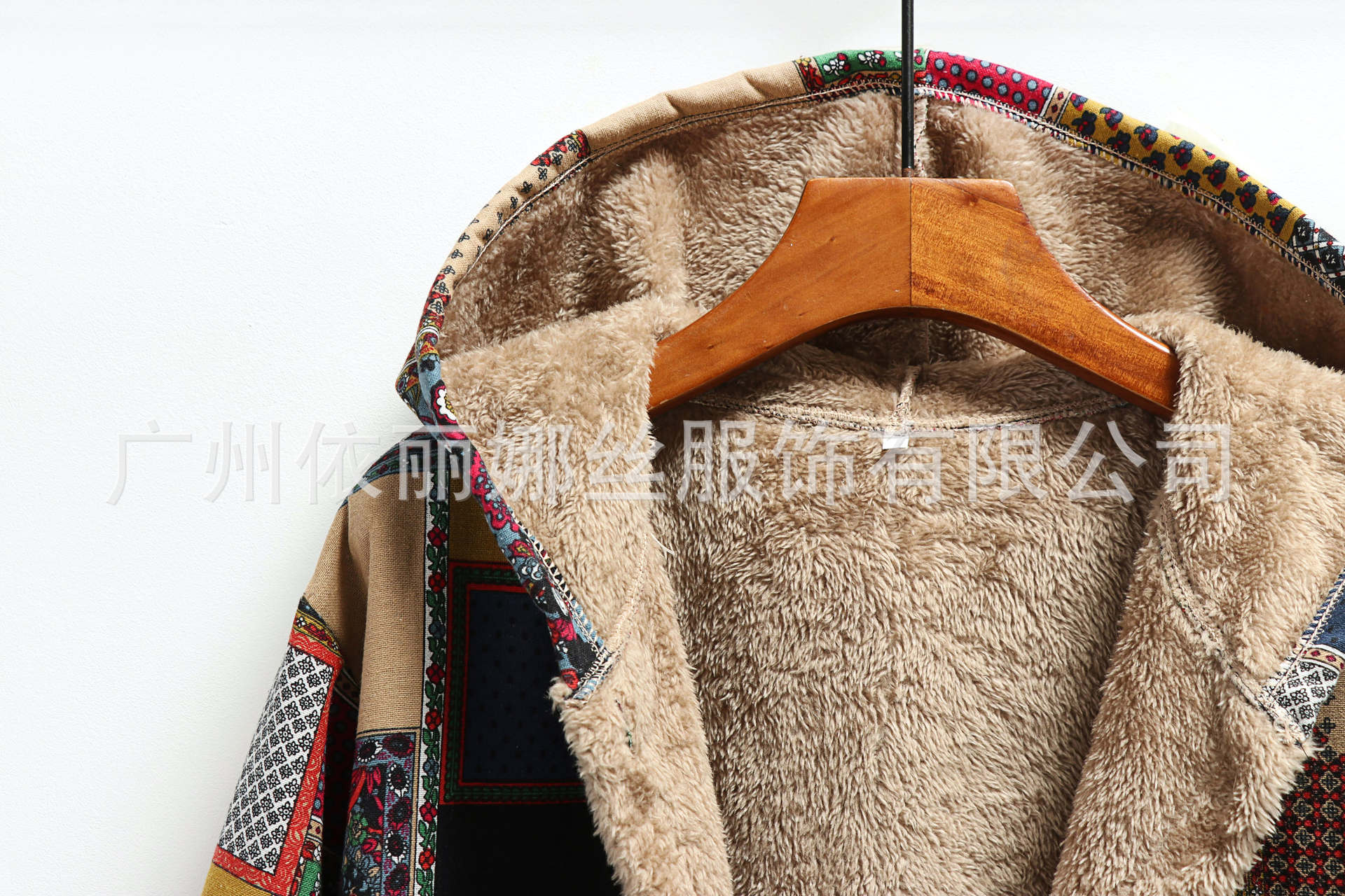 Temporada Amazon WISH nuevo suéter con capucha estampado de algodón y lino para mujer europeo y americano abrigo cálido de felpa