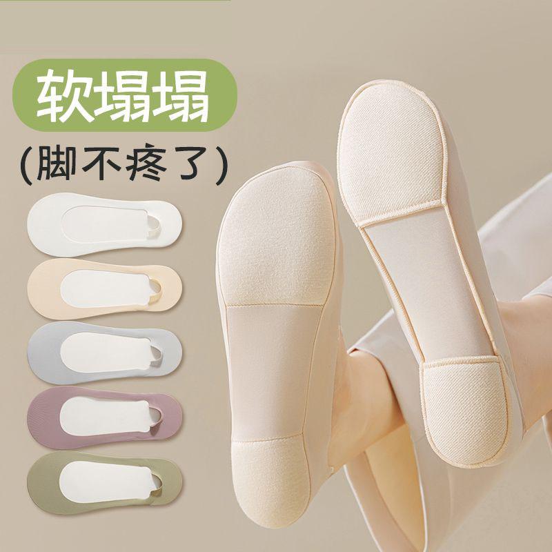 Calcetines de Barco de Seda de Hielo para Mujer, Calcetines Finos de Verano Antideslizantes Invisibles de Corte Bajo para Tacón Alto, Calcetines Invisibles de Algodón Puro con Suela de Esponja para Mujer