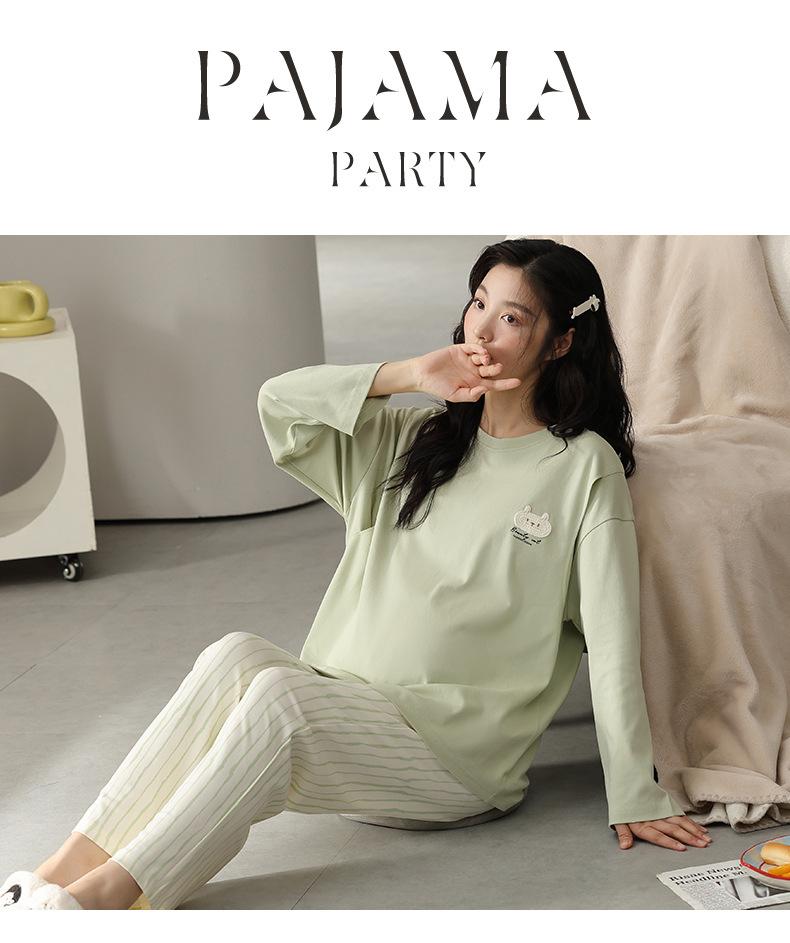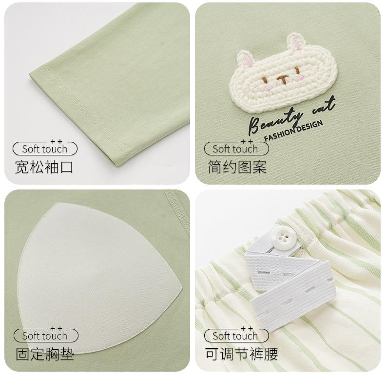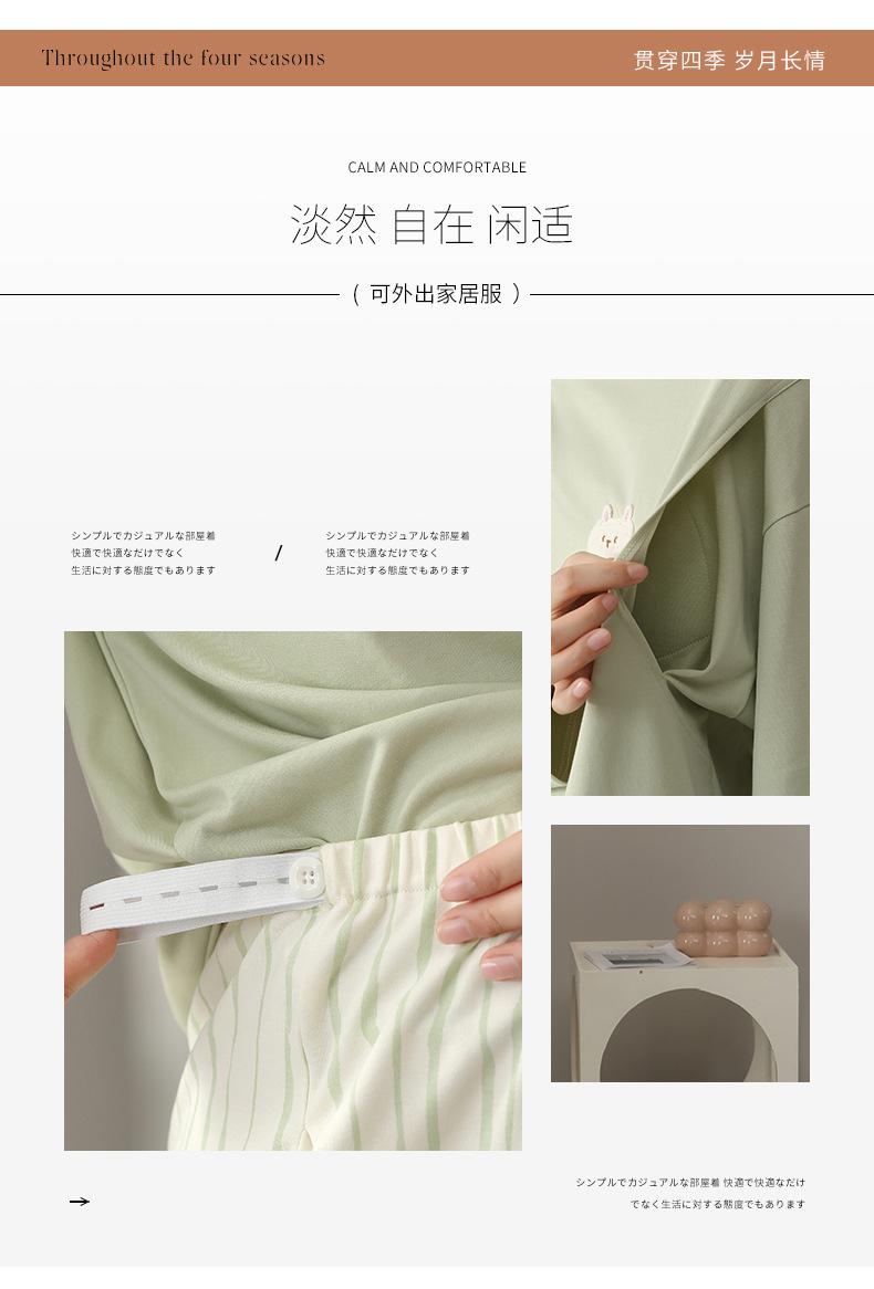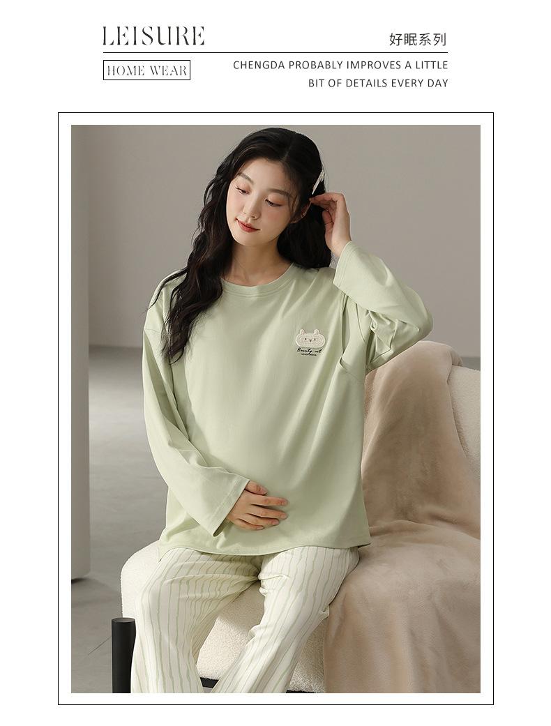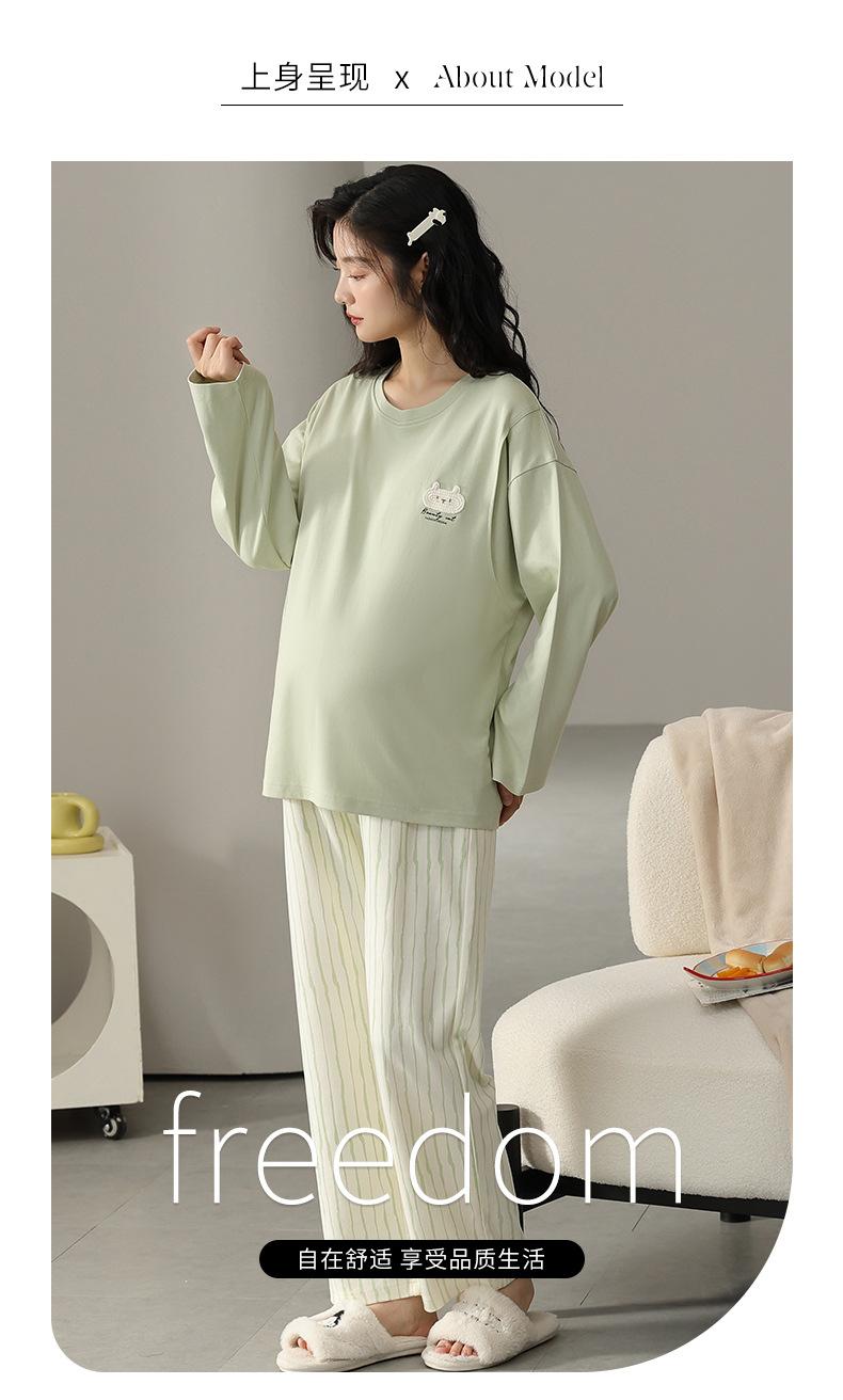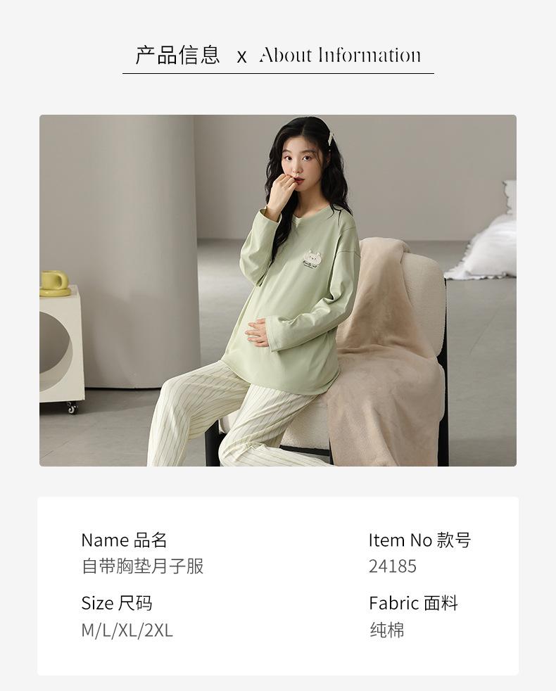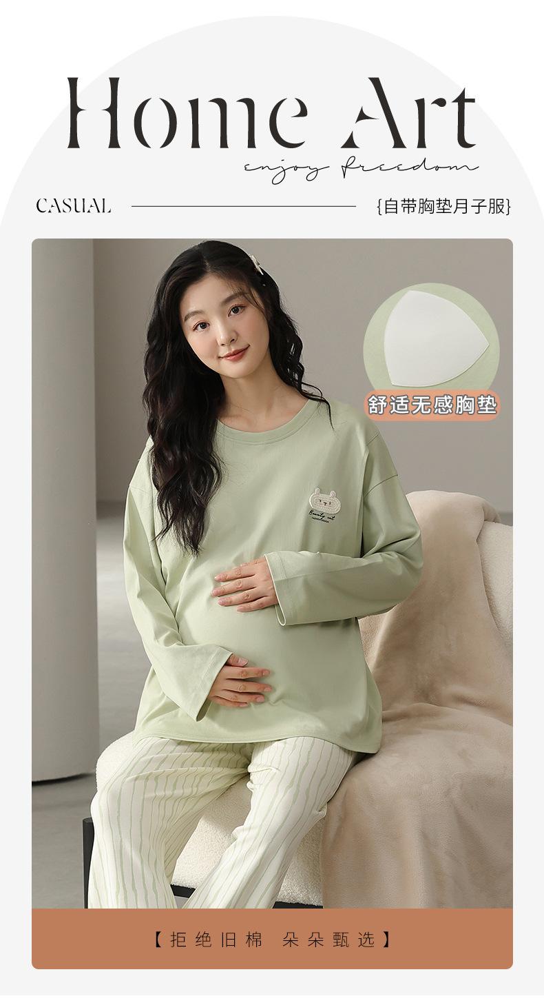 Feliz Luna 2025 Primavera y Otoño Nuevo Estilo con Almohadillas en el Busto Algodón Puro Cuello Redondo Ropa de Maternidad Mujeres Embarazadas Dulce y Encantador Set para Lactancia Absorbente de Sudor