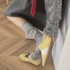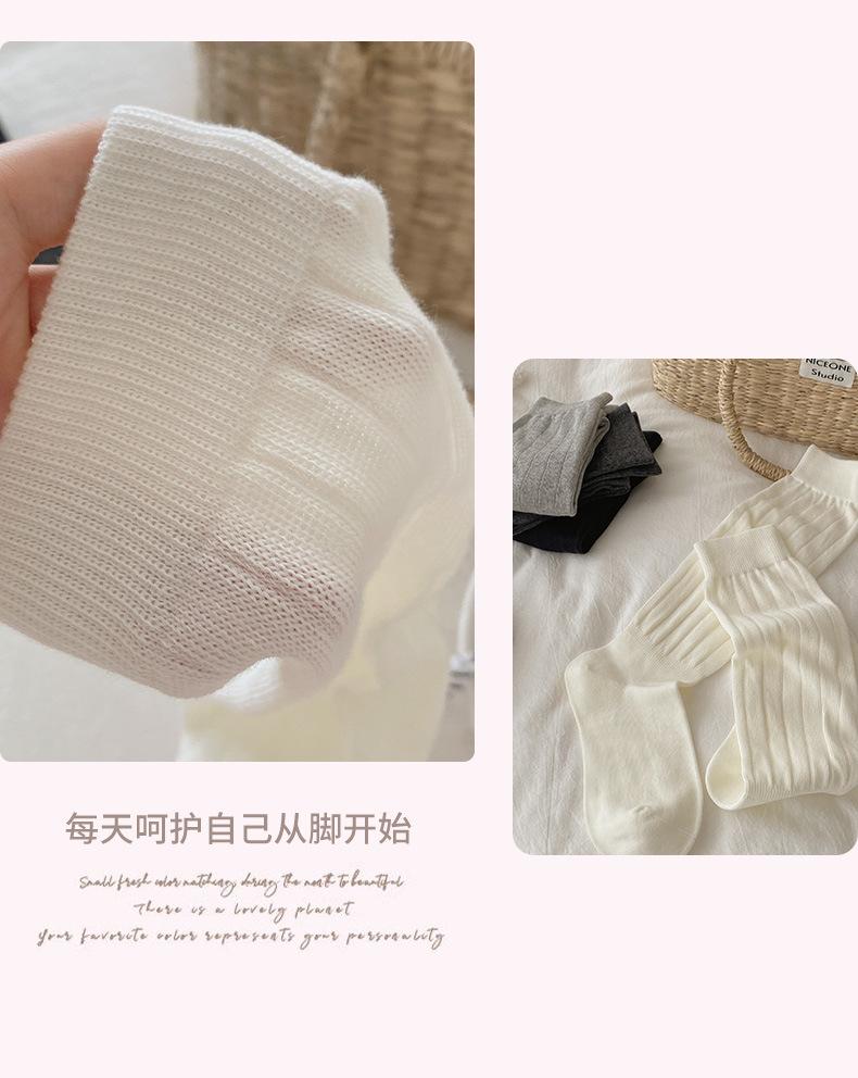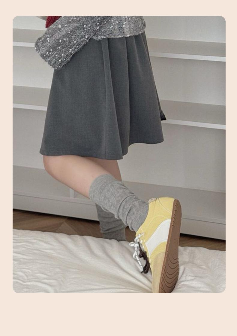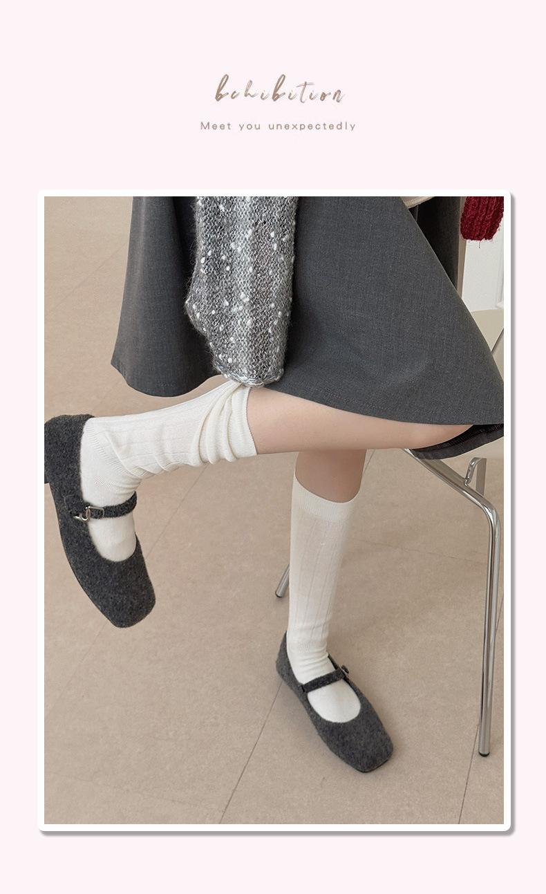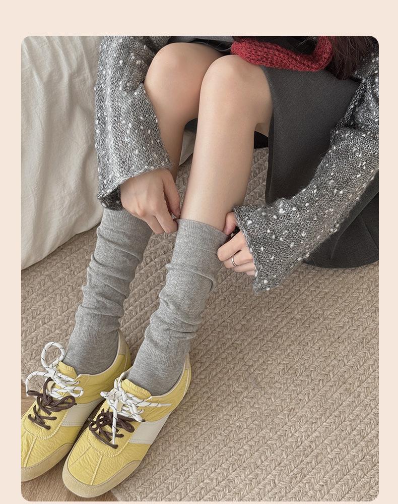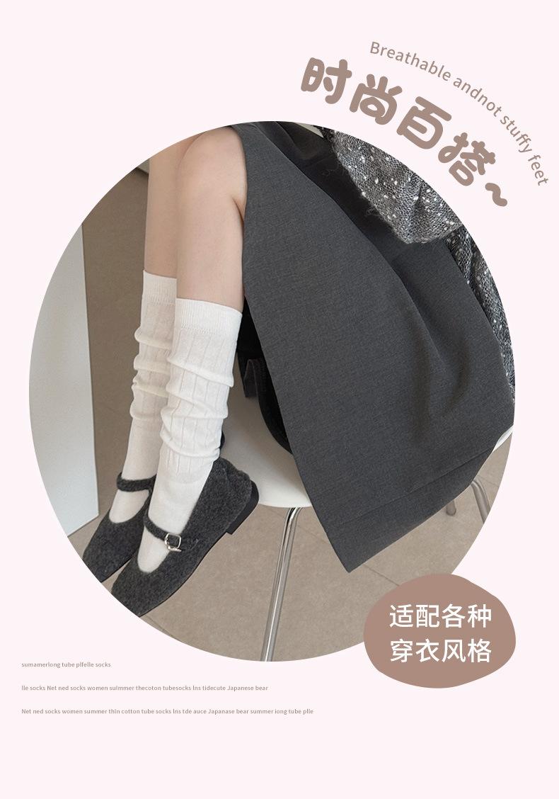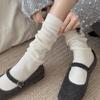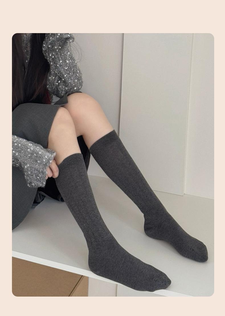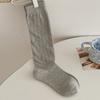 Calcetines de media para mujer Otoño Nuevo Simple Raya Vertical Calcetines Holgados miu Style Calcetines con Volantes Calcetines Coreanos Grises por Encima de la Rodilla