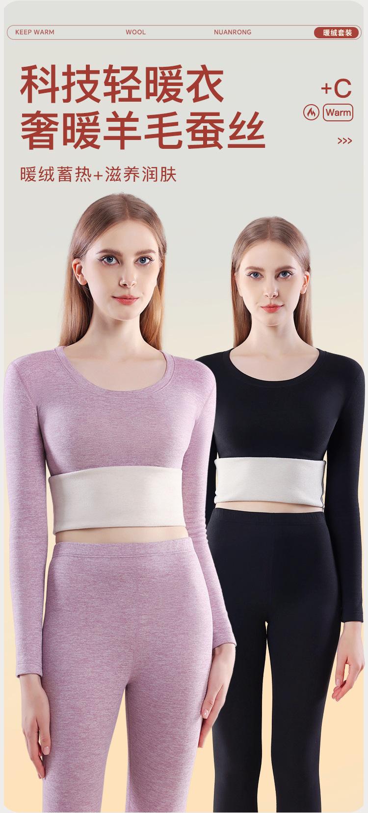 Otoño e Invierno Lana Seda Ropa y Pantalones de Otoño Traje de Ropa Interior Térmica con Calefacción para Mujer Suéter de Algodón Aterciopelado Capa Base Camiseta con forro polar