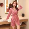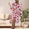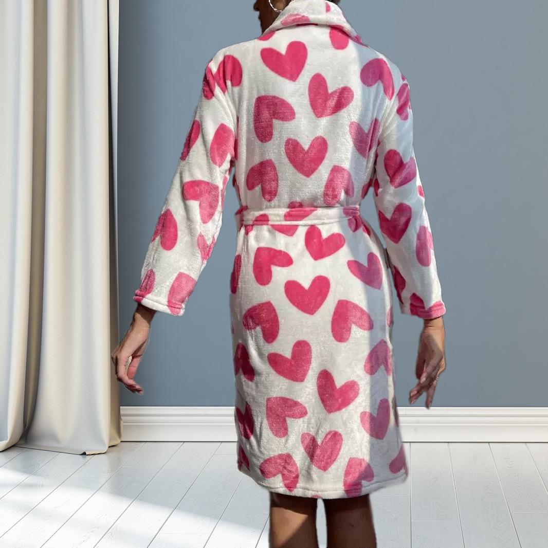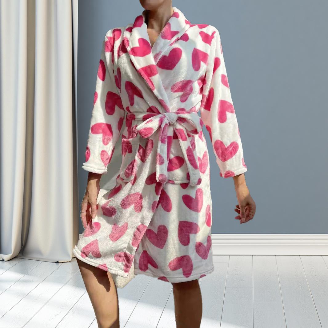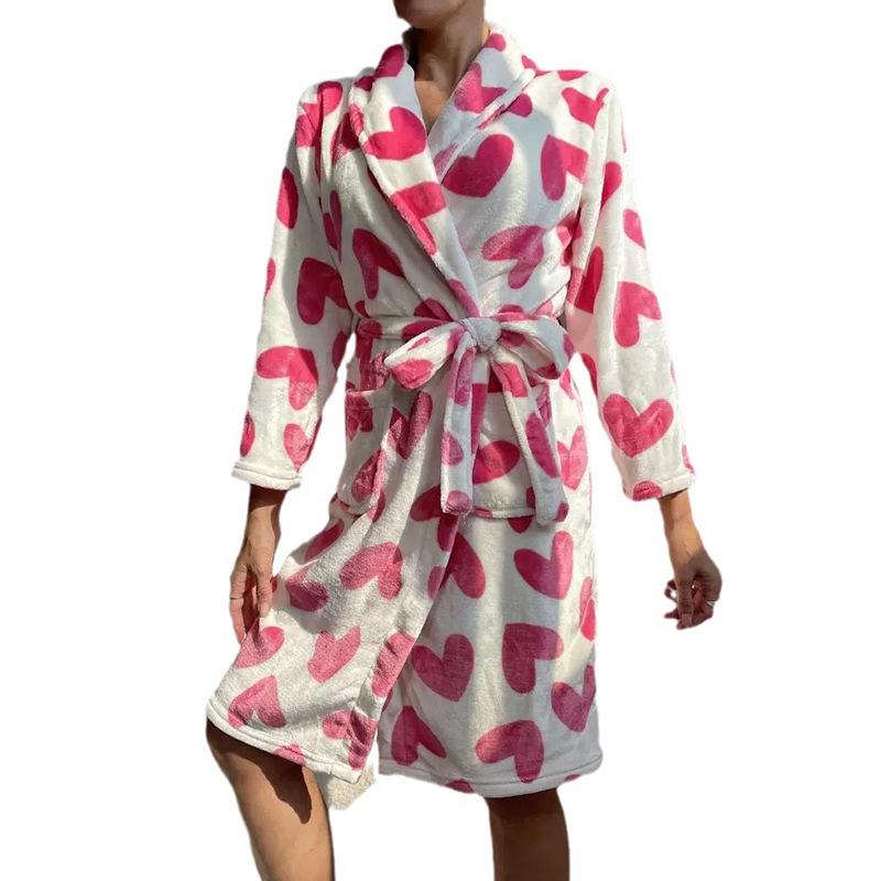 2025 otoño e invierno nuevo camisón grueso largo con cordones bata rosa estampado de amor camisón de invierno para mujer transfronterizo