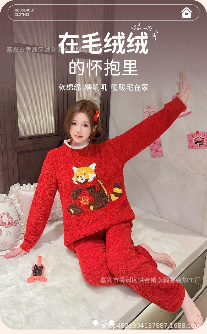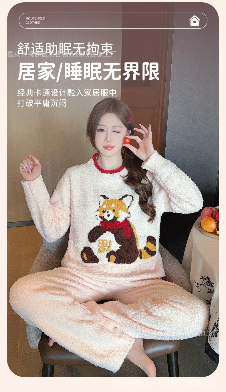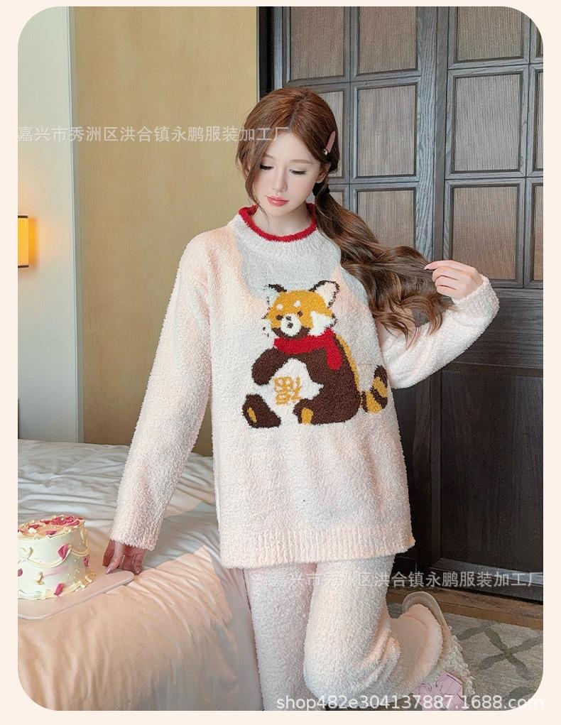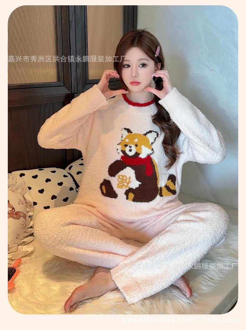 Pijama de mapache pequeño lindo de terciopelo para mujer para otoño e invierno, pijama cálido, suave y grueso, ropa para el hogar moderna y atmosférica