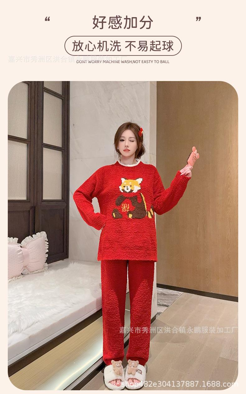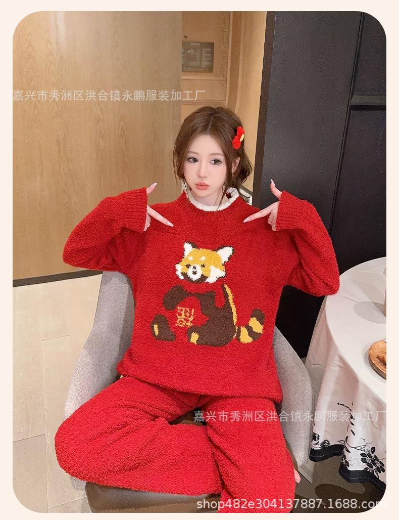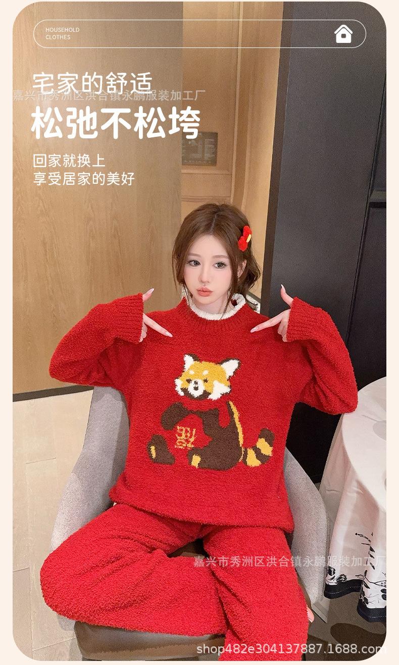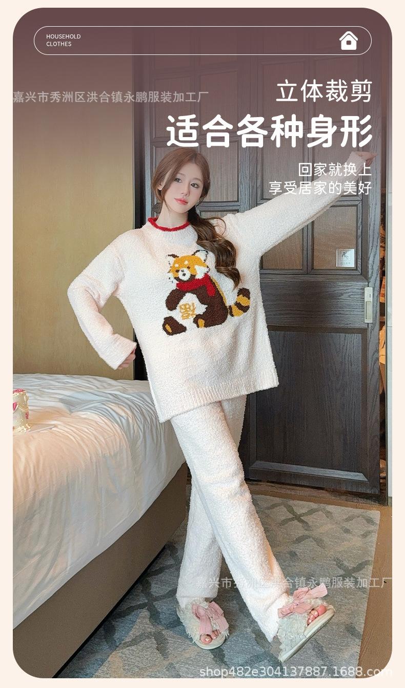 Pijama de mapache pequeño lindo de terciopelo para mujer para otoño e invierno, pijama cálido, suave y grueso, ropa para el hogar moderna y atmosférica
