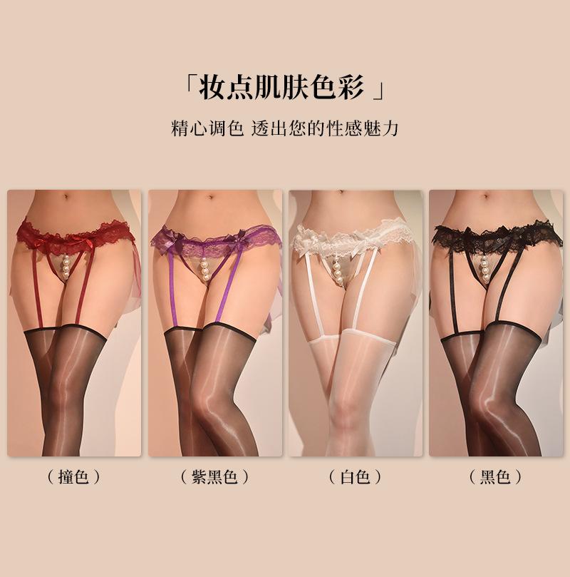 Falda de Malla Sexy Medias Aurora con Tirantes y Masaje de Perlas Liberación Rápida Ultradelgada Sedosa Brillo Aceitoso Lencería Medias Negras para Mujer