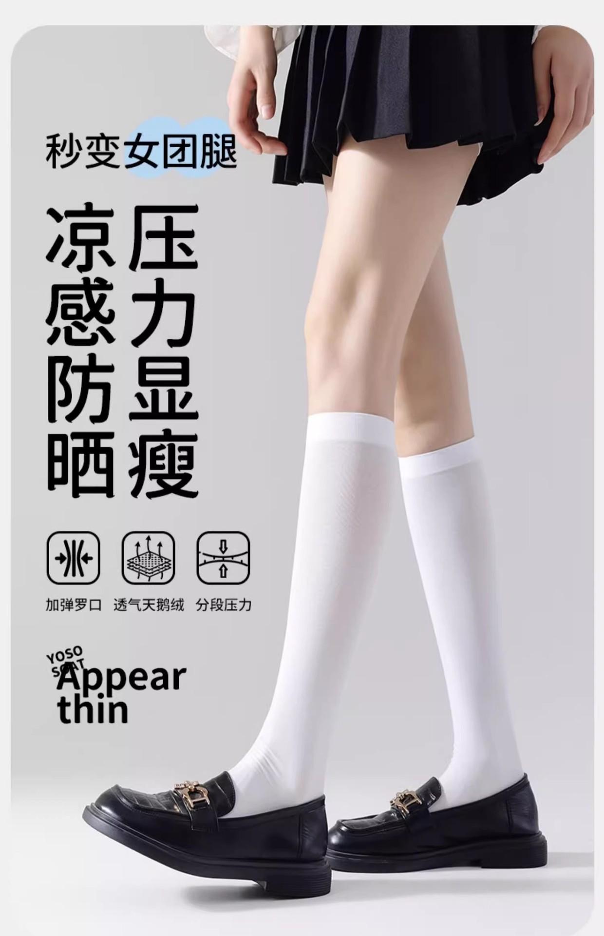 Calcetines blancos de pantorrilla para mujer verano delgados bloqueador solar calcetines de hielo calcetines negros de terciopelo seda de hielo hasta la rodilla calcetines de compresión hasta la rodilla