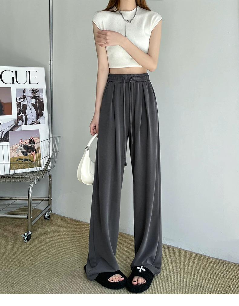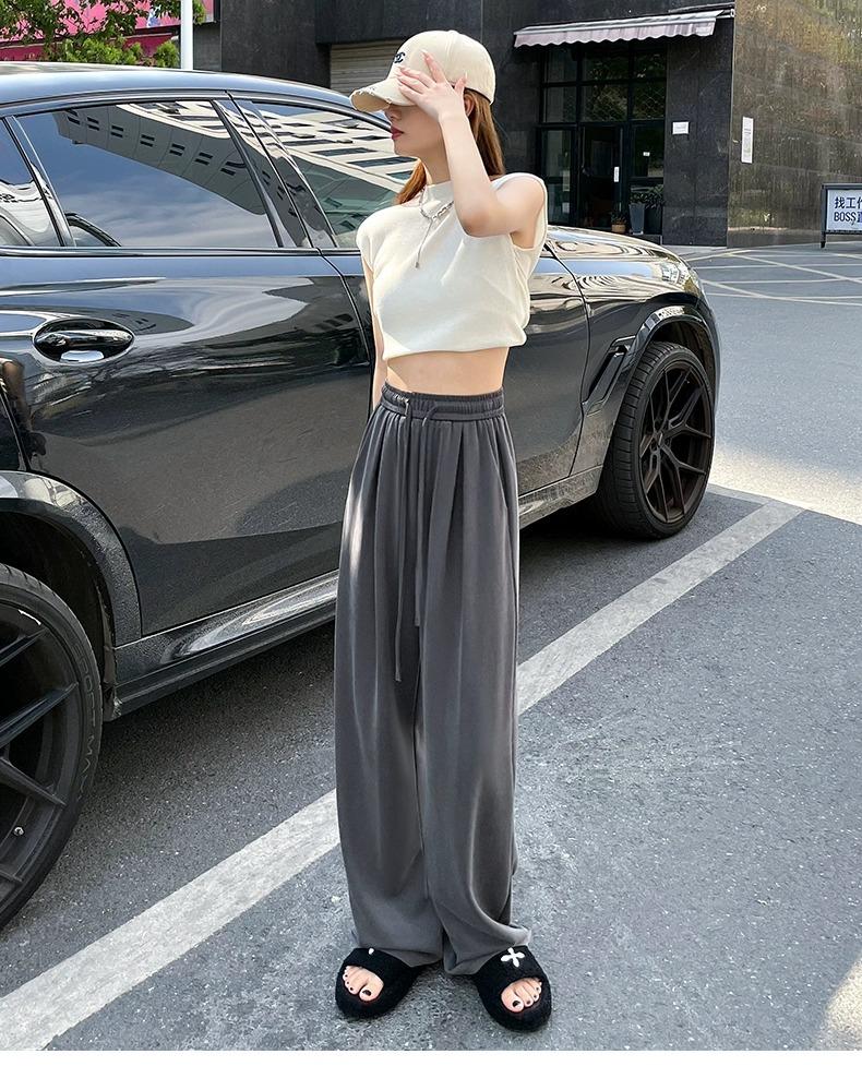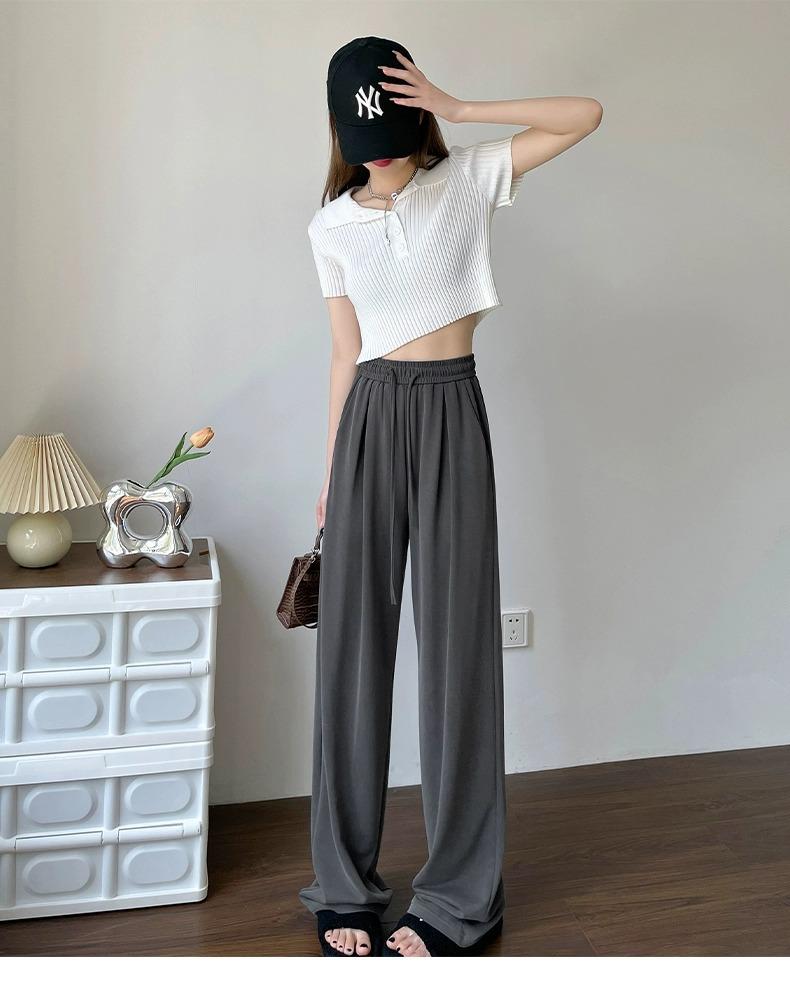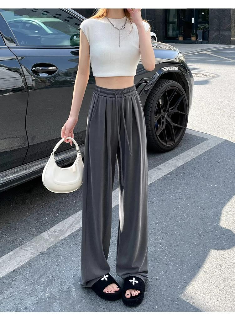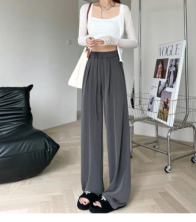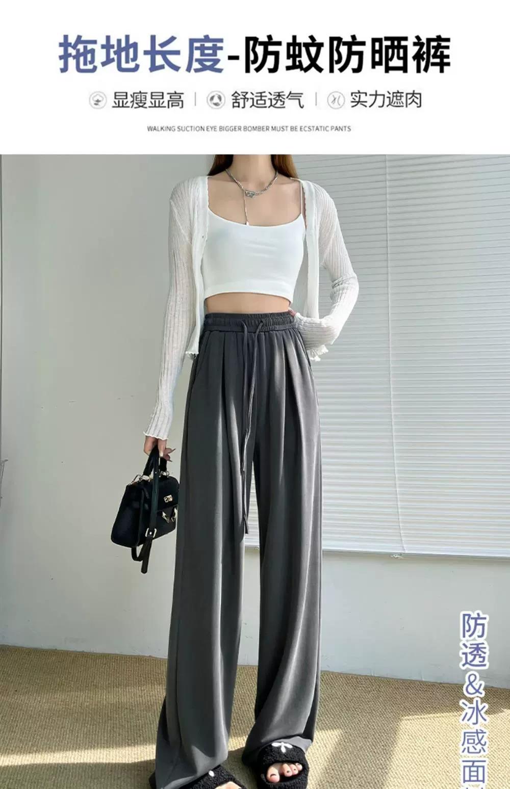 Pantalones de Verano para Mujer de Seda Helada Gris de Pierna Ancha Petite Holgados Fluidos Casuales Frescos Pierna Recta Largos hasta el Piso Protección Solar Pantalones Largos