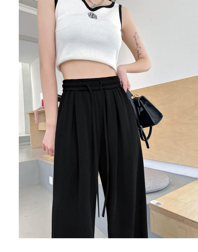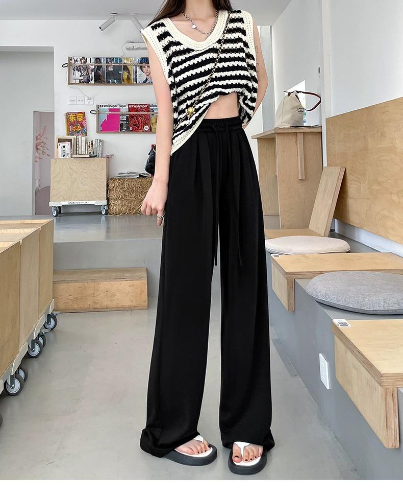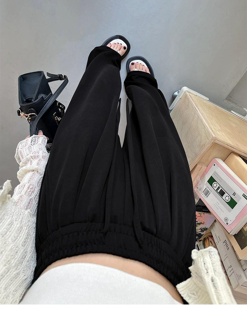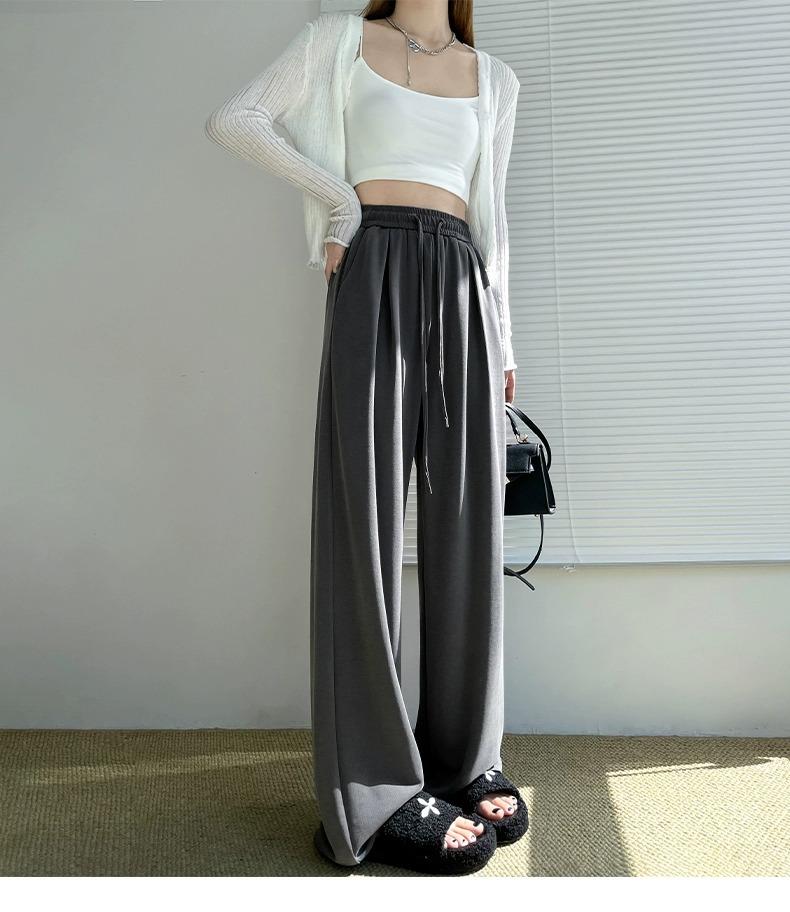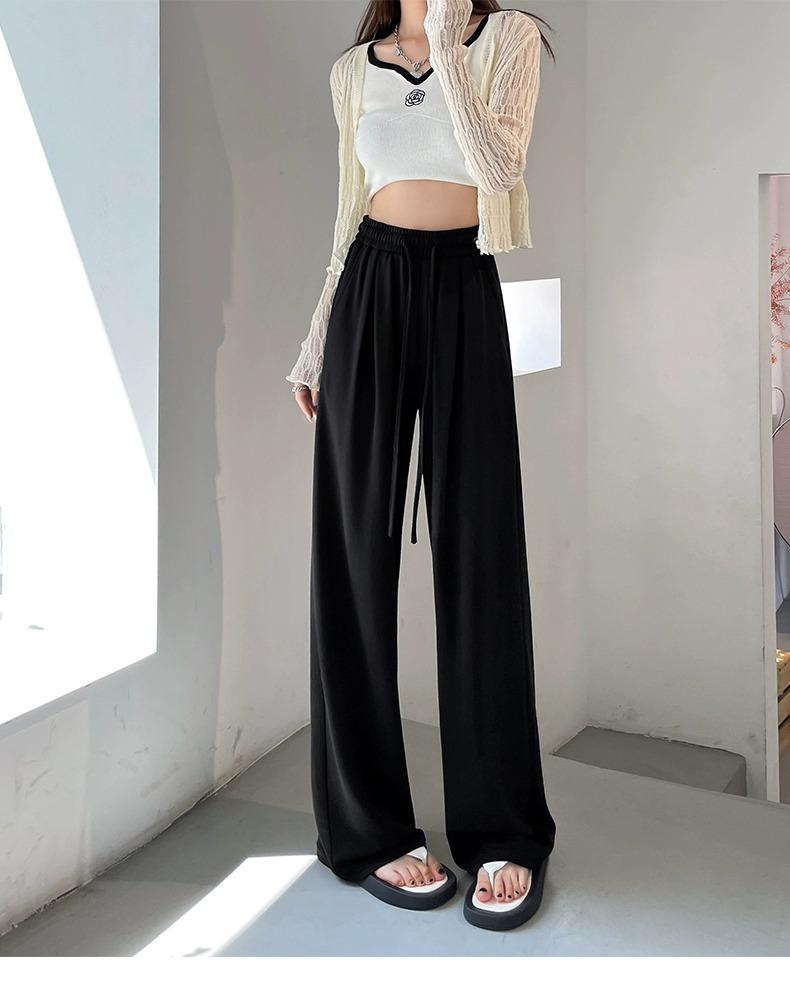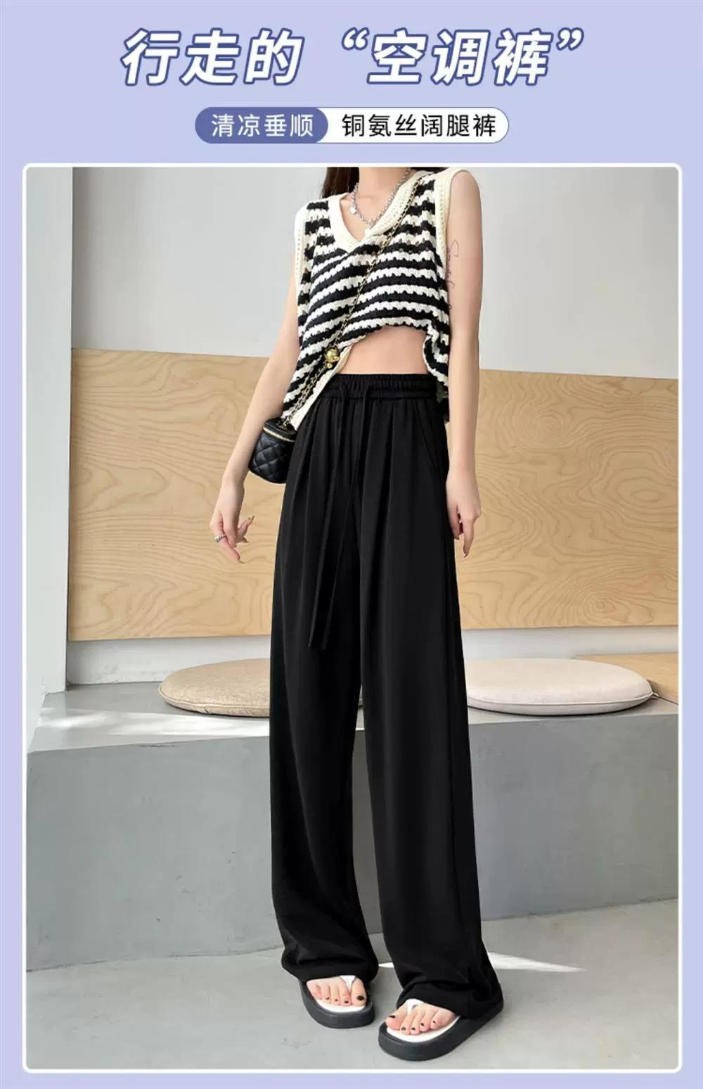 Pantalones de Verano para Mujer de Seda Helada Gris de Pierna Ancha Petite Holgados Fluidos Casuales Frescos Pierna Recta Largos hasta el Piso Protección Solar Pantalones Largos
