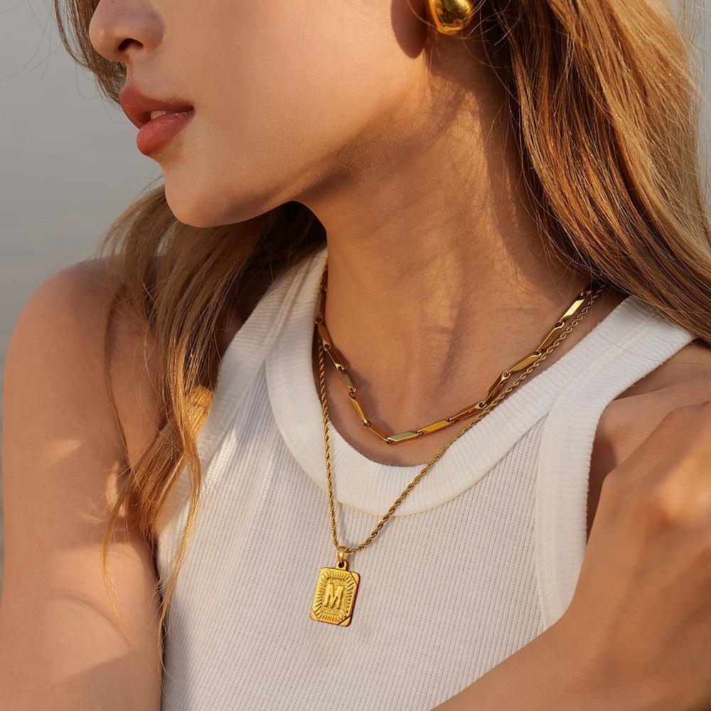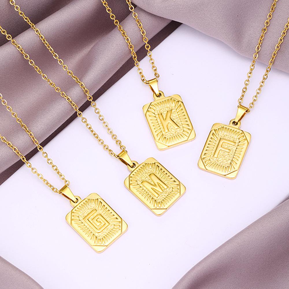 Collar de cadena de clavícula de letras de aleación de zinc cuadrado de oro de 18 quilates de venta caliente transfronteriza para mujer al por mayor