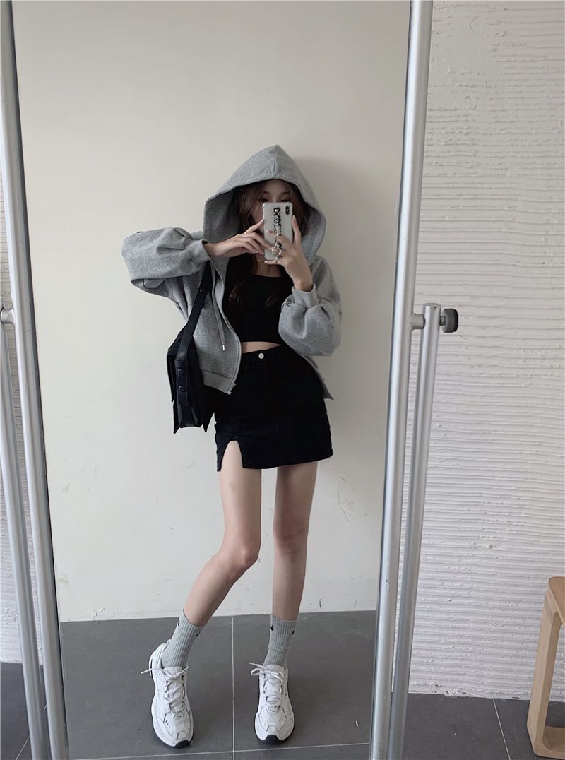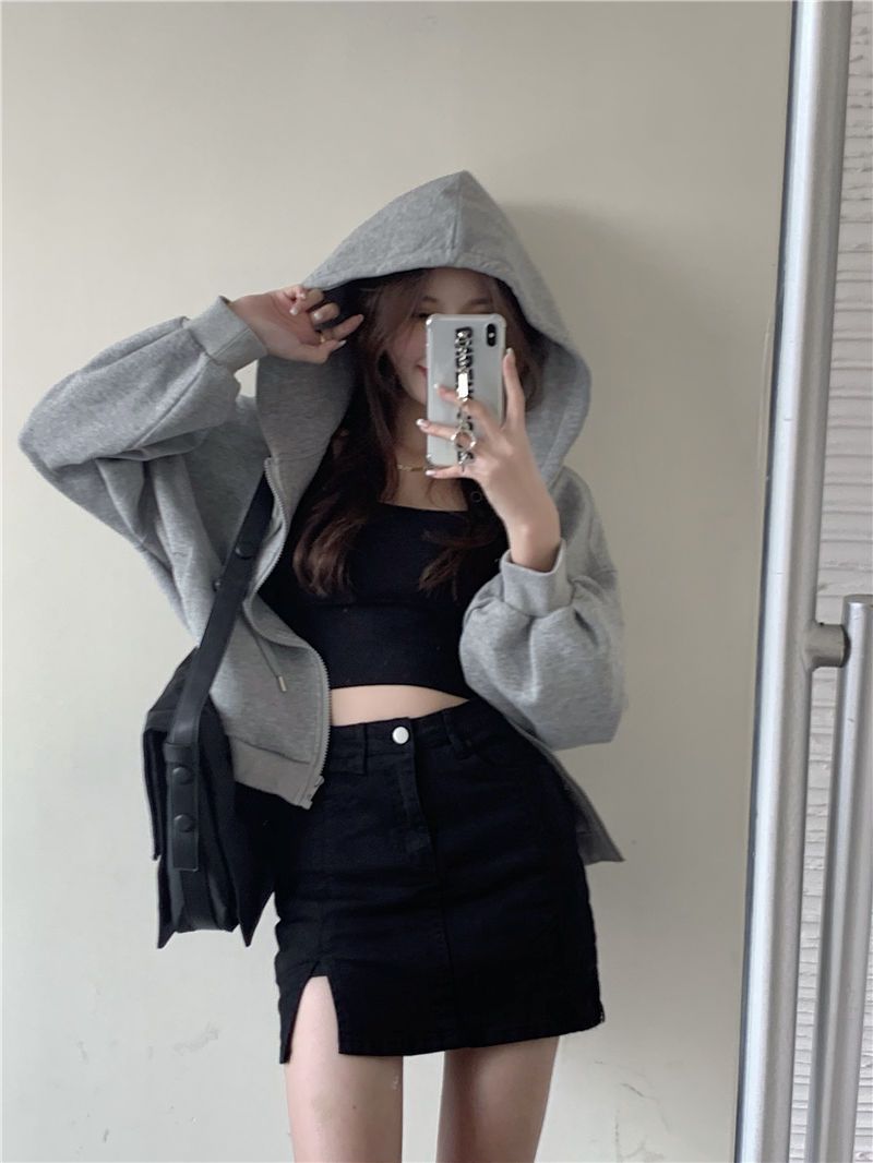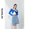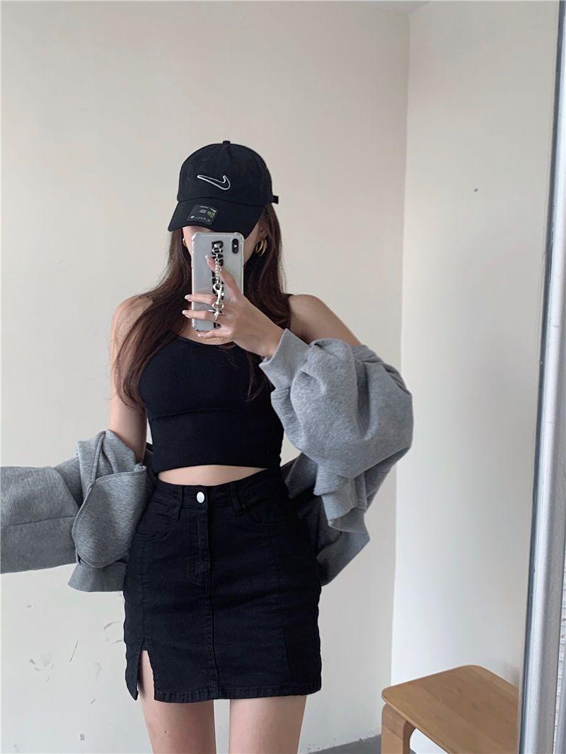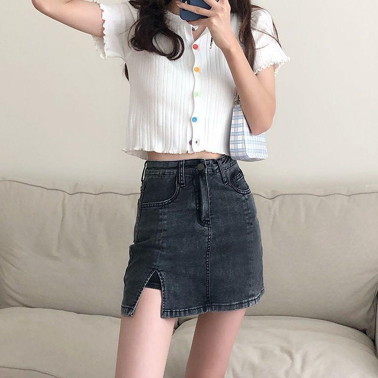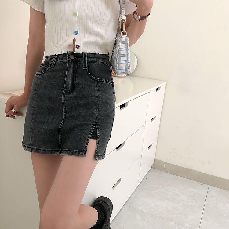 Falda de mezclilla negra de cintura alta para mujer Verano 2025 Nueva Falda con abertura Spice Girl de cadera Falda delgada línea A